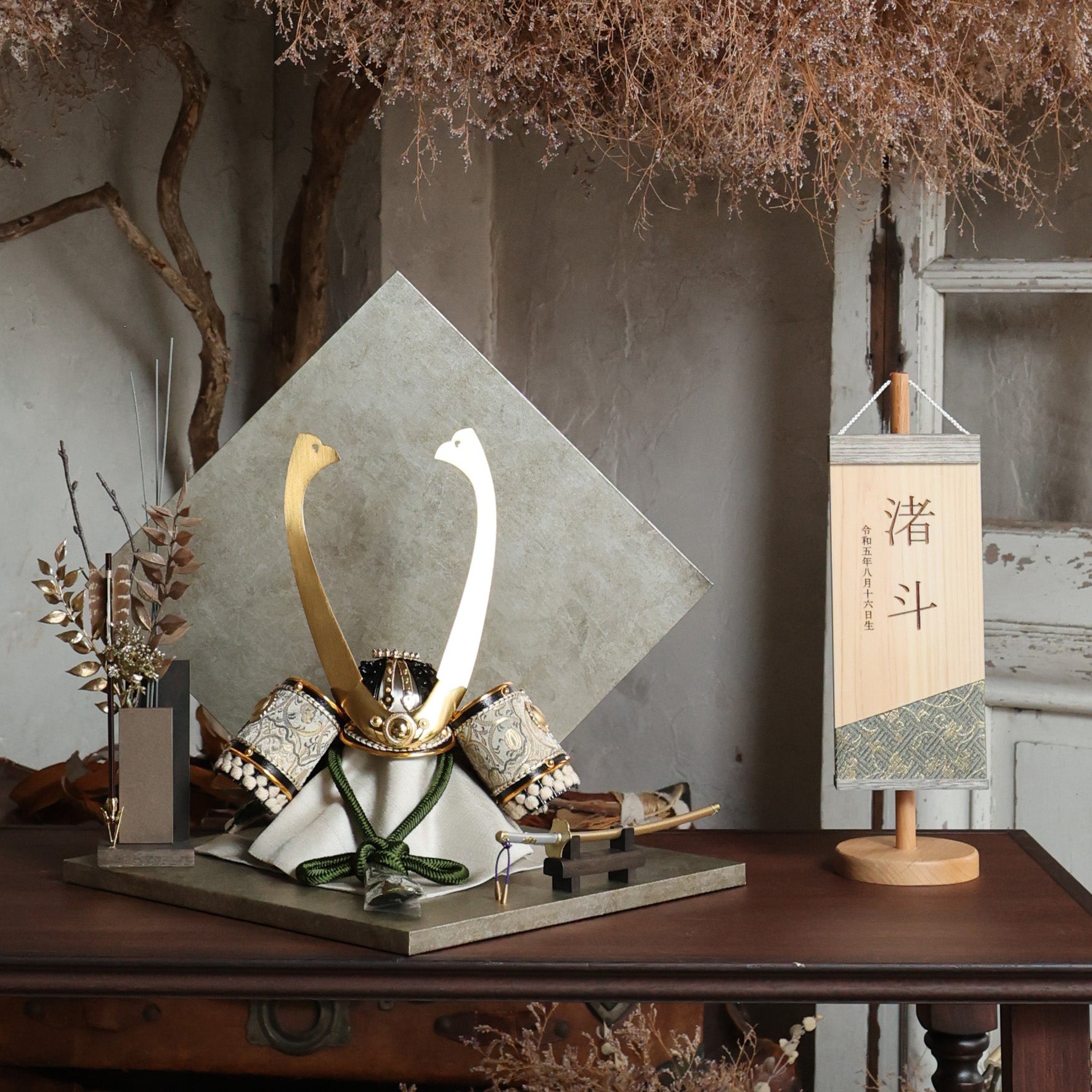 力強さと洗練を兼ね備えた、飾るだけで空間が締まる鍬形です。