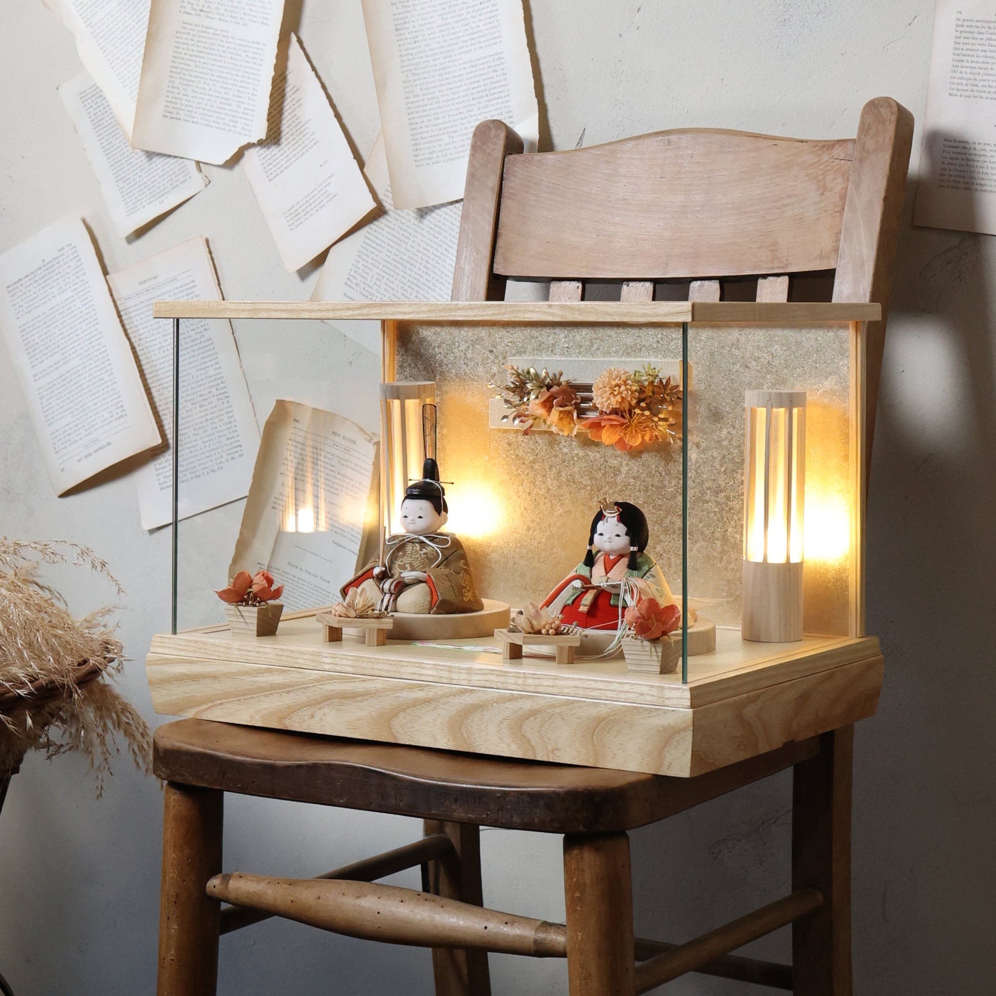 通常2mm厚が一般的な中、当店ではより高品質なAGC製3mmガラスを採用しています。厚みが増すことで強度と安全性が高まり、透明度の高いクリアな美しさを保ちます。大切な雛人形を守りながら、高級感のある見栄えを実現しています。
