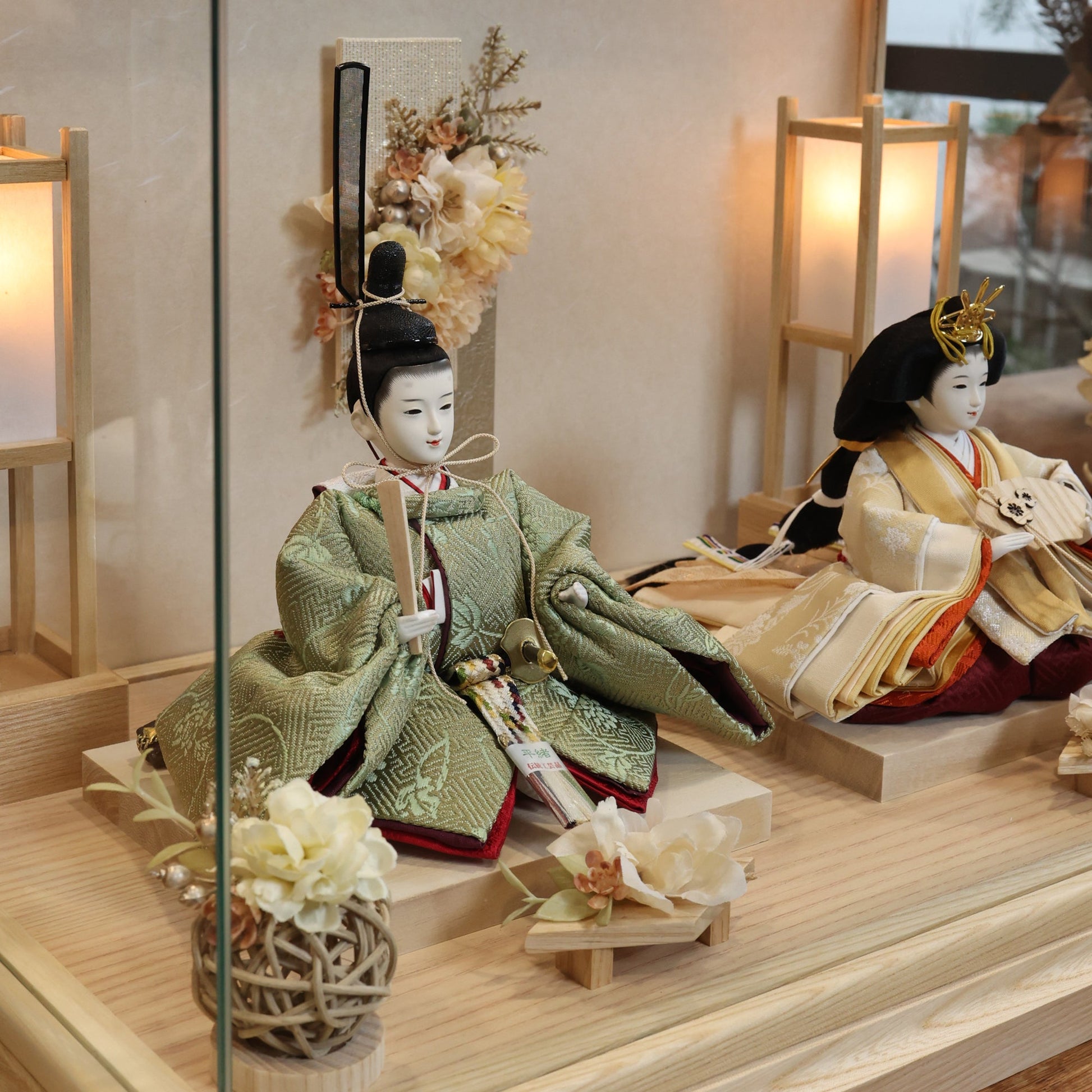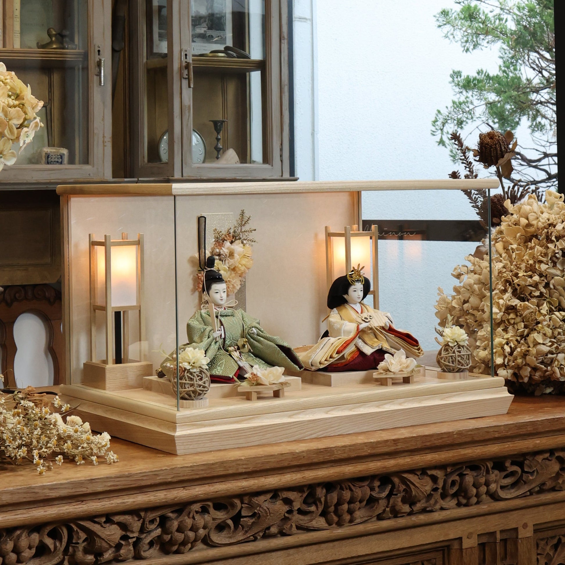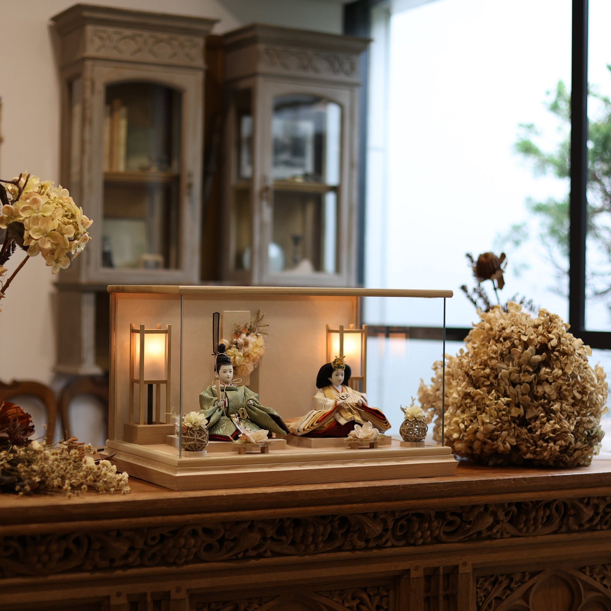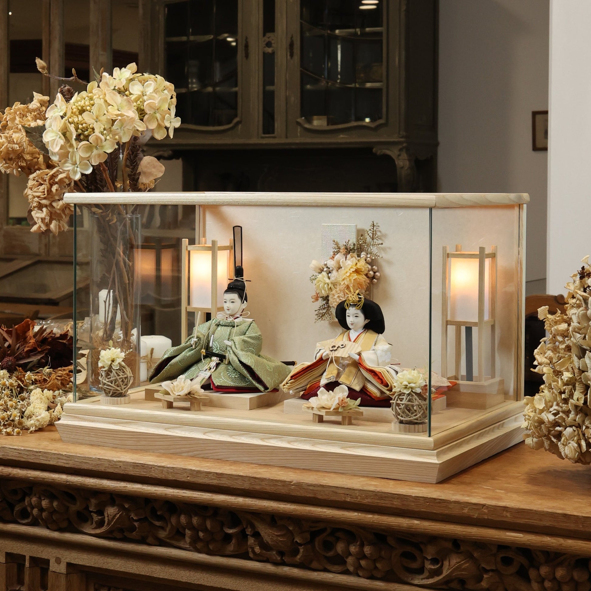 通常2mm厚が一般的な中、当店ではより高品質なAGC製3mmガラスを採用しています。厚みが増すことで強度と安全性が高まり、透明度の高いクリアな美しさを保ちます。大切な雛人形を守りながら、高級感のある見栄えを実現しています。