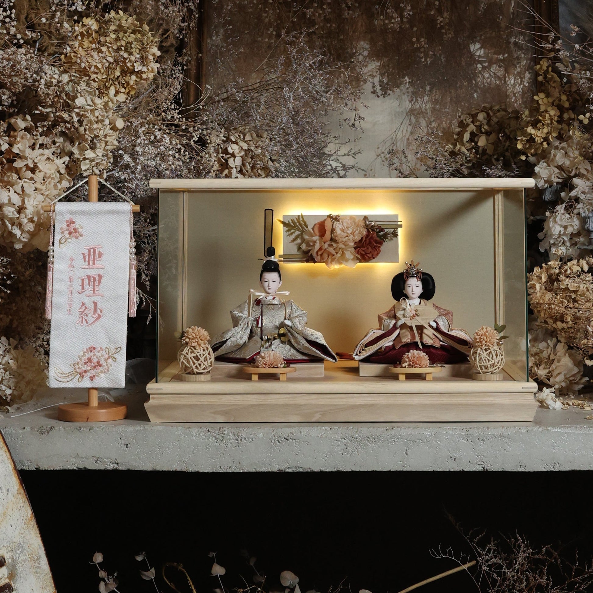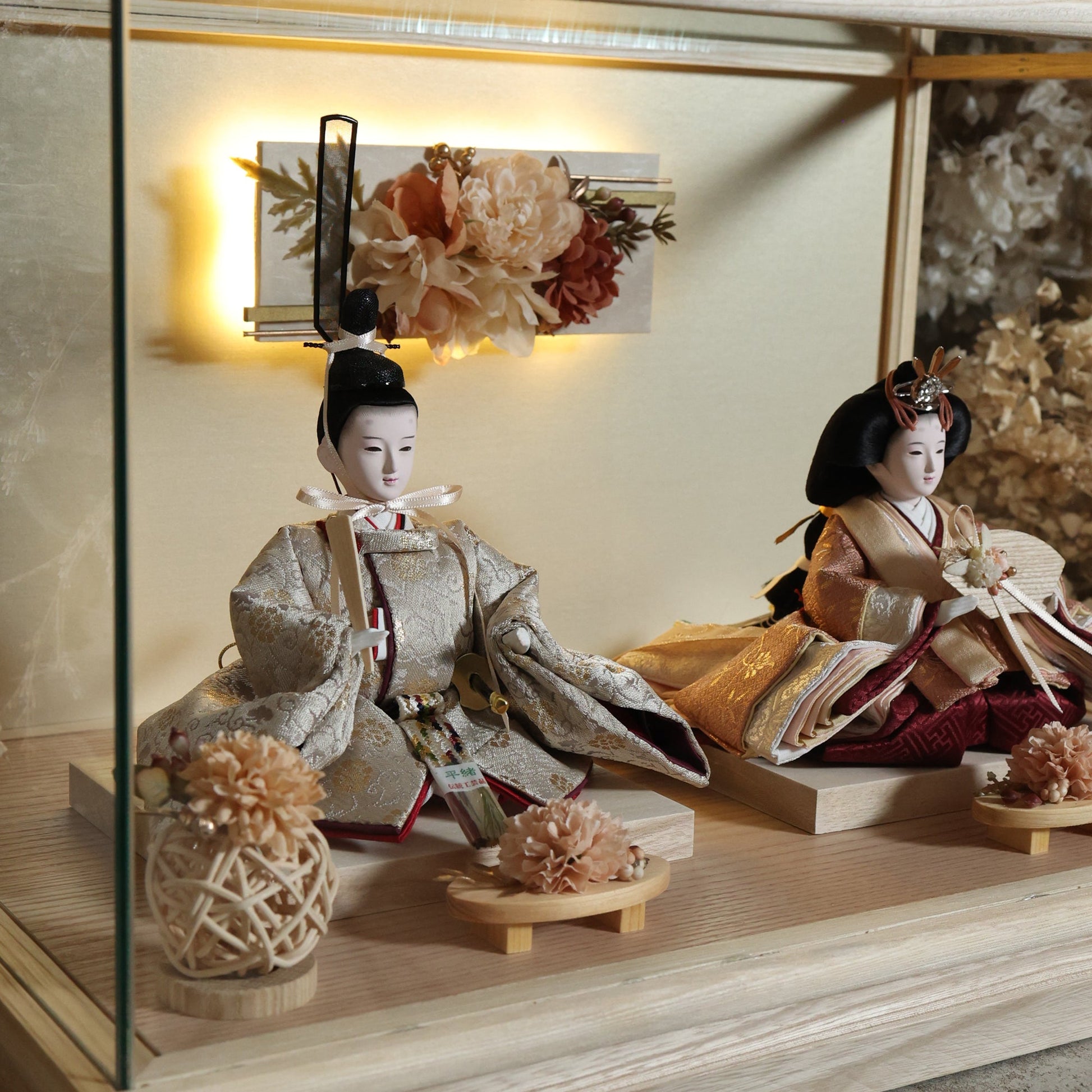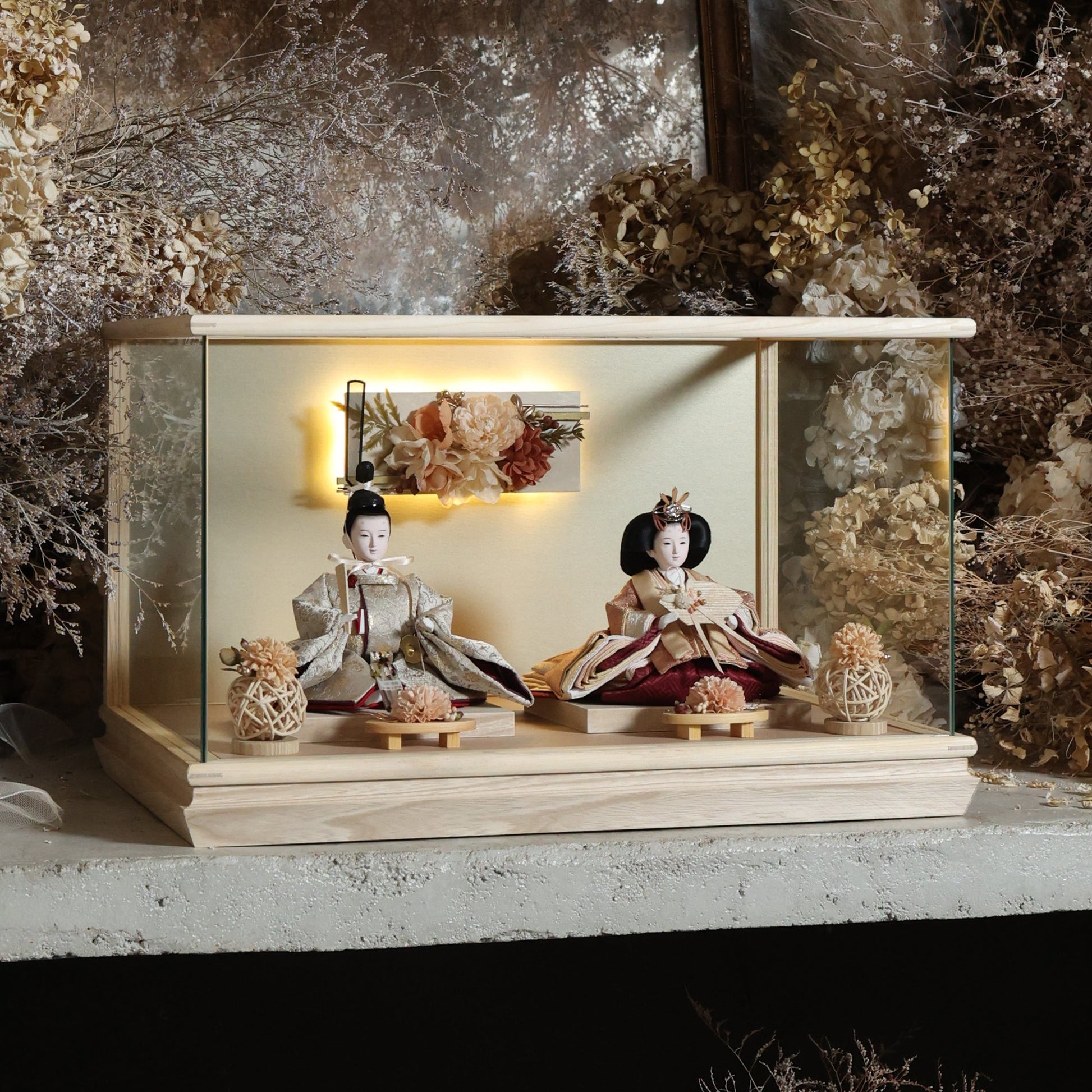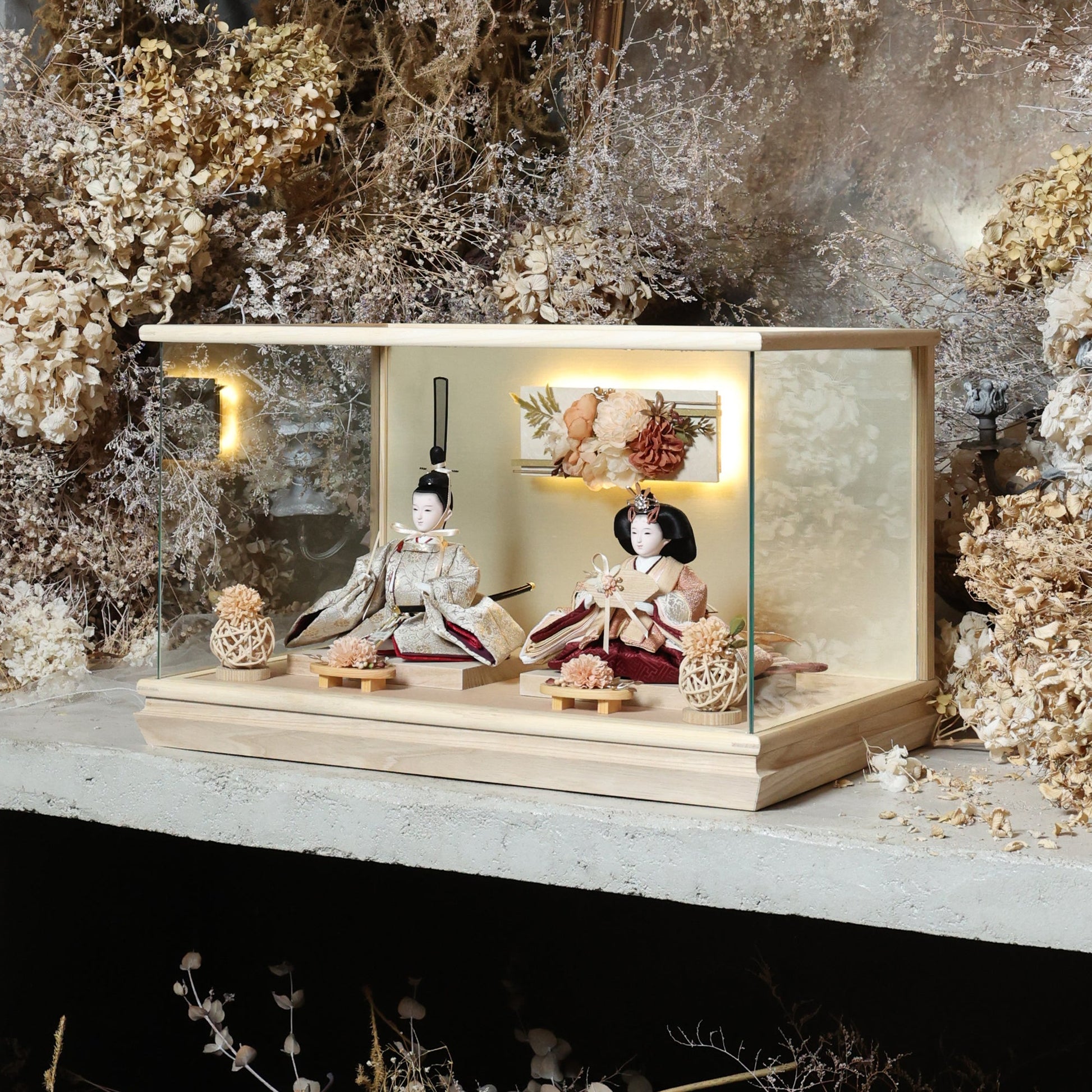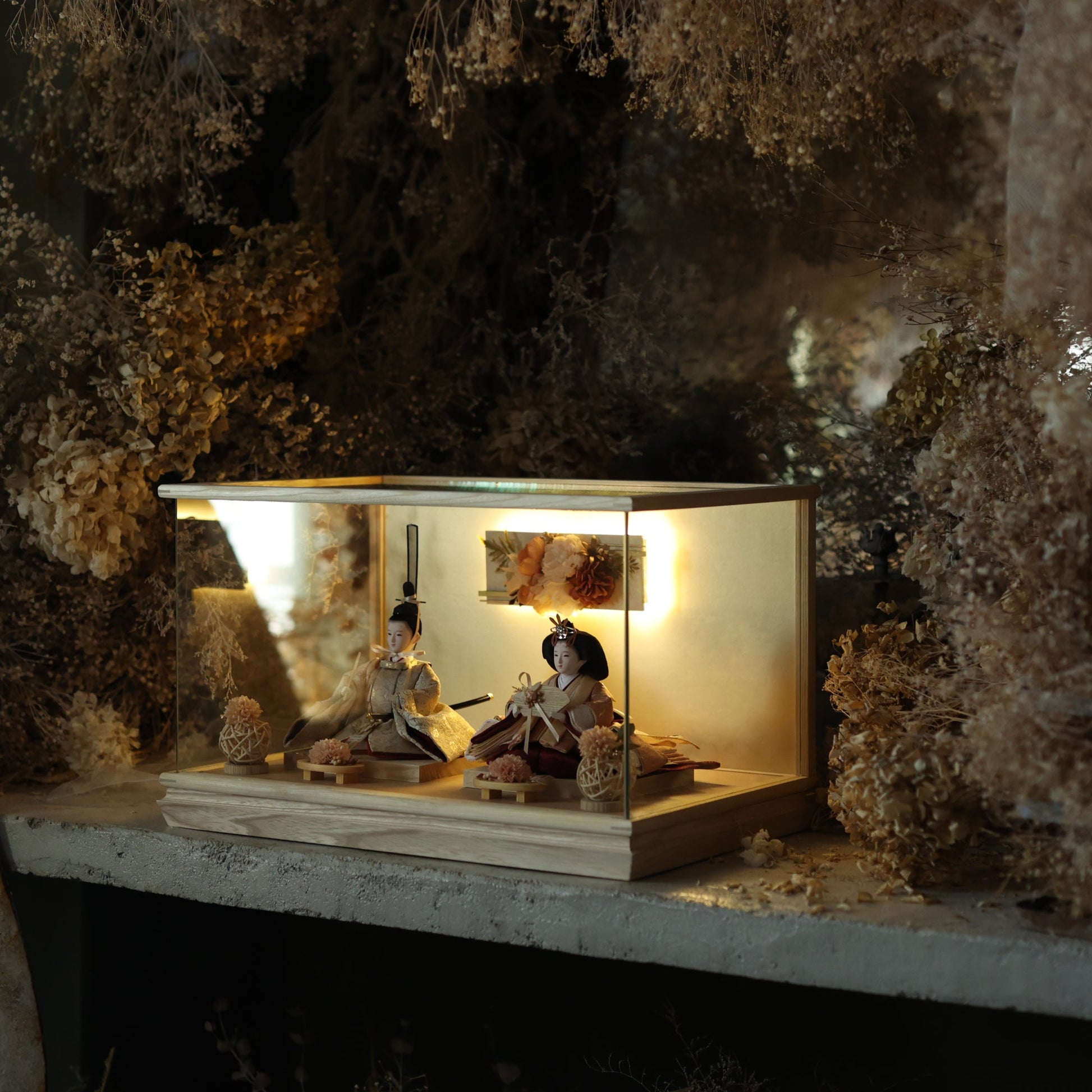 通常2mm厚が一般的な中、当店ではより高品質なAGC製3mmガラスを採用しています。厚みが増すことで強度と安全性が高まり、透明度の高いクリアな美しさを保ちます。大切な雛人形を守りながら、高級感のある見栄えを実現しています。