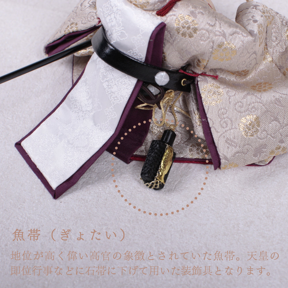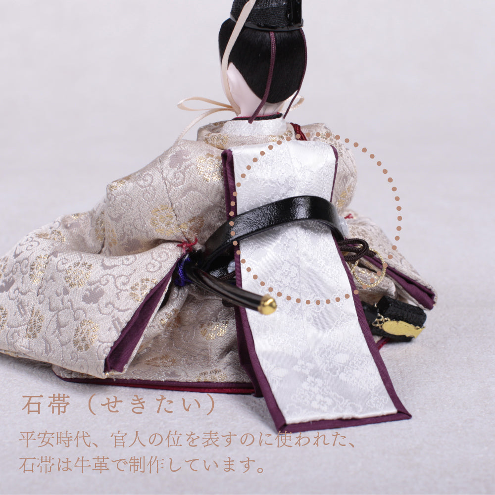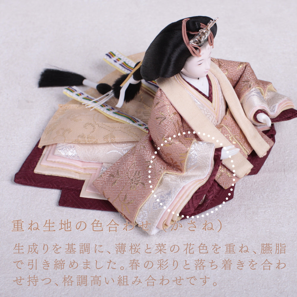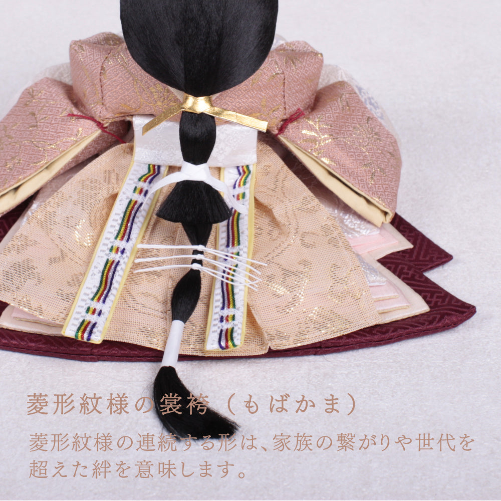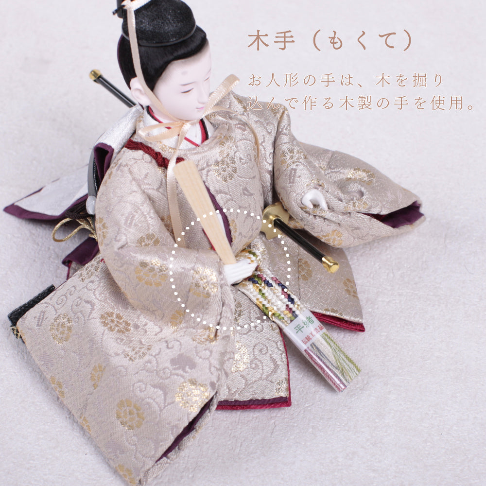 国産の栓(せん)は、美しい木目と温もりある質感が魅力の天然木です。耐久性に優れ、経年とともに味わいを深めます。台座や屏風などに使用することで、自然素材ならではの落ち着いた風合いと上質感を演出し、雛人形全体をより品格ある印象に仕上げます。