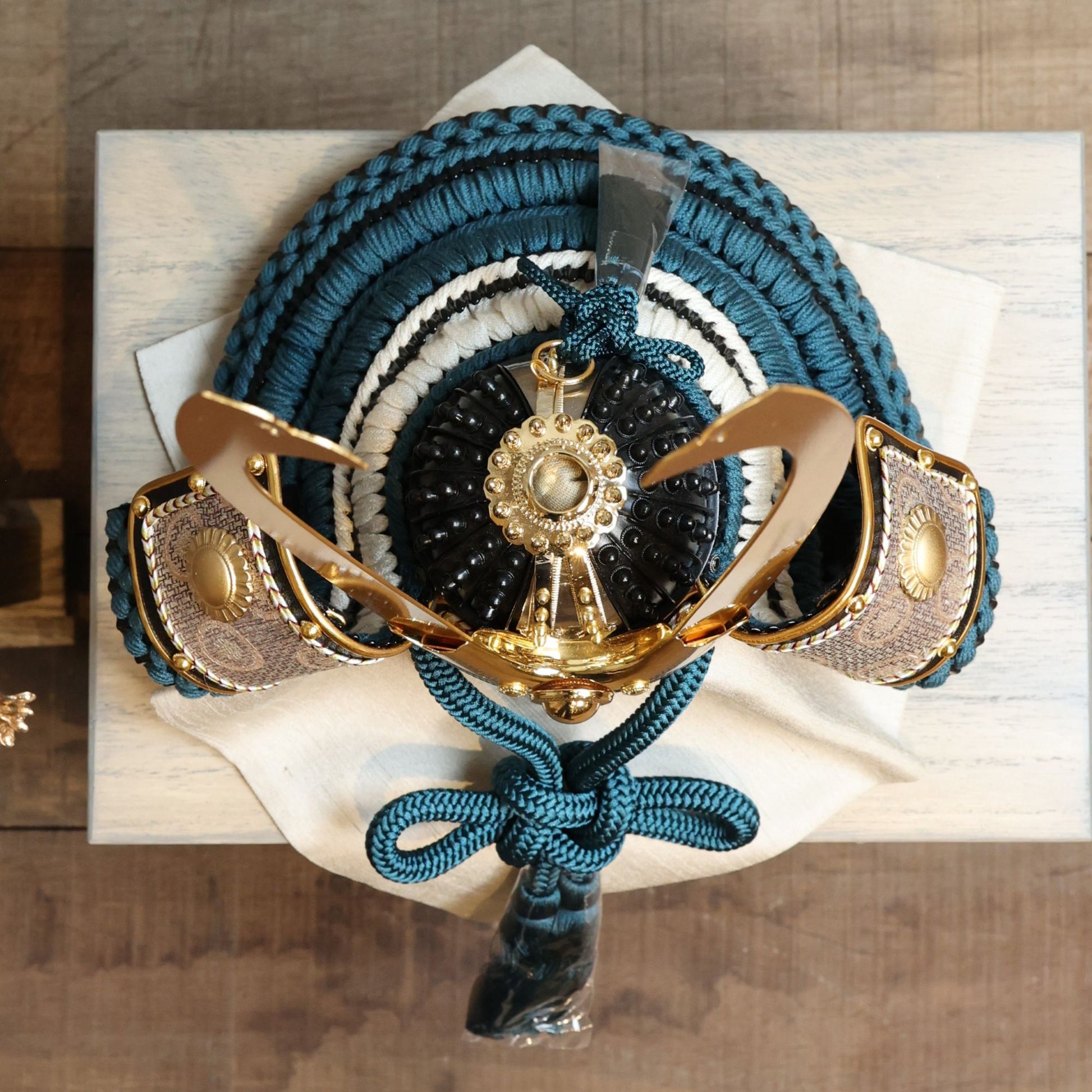 力強さと清らかさを両立した配色は、鍬形の金の輝きも美しく引き立てます。