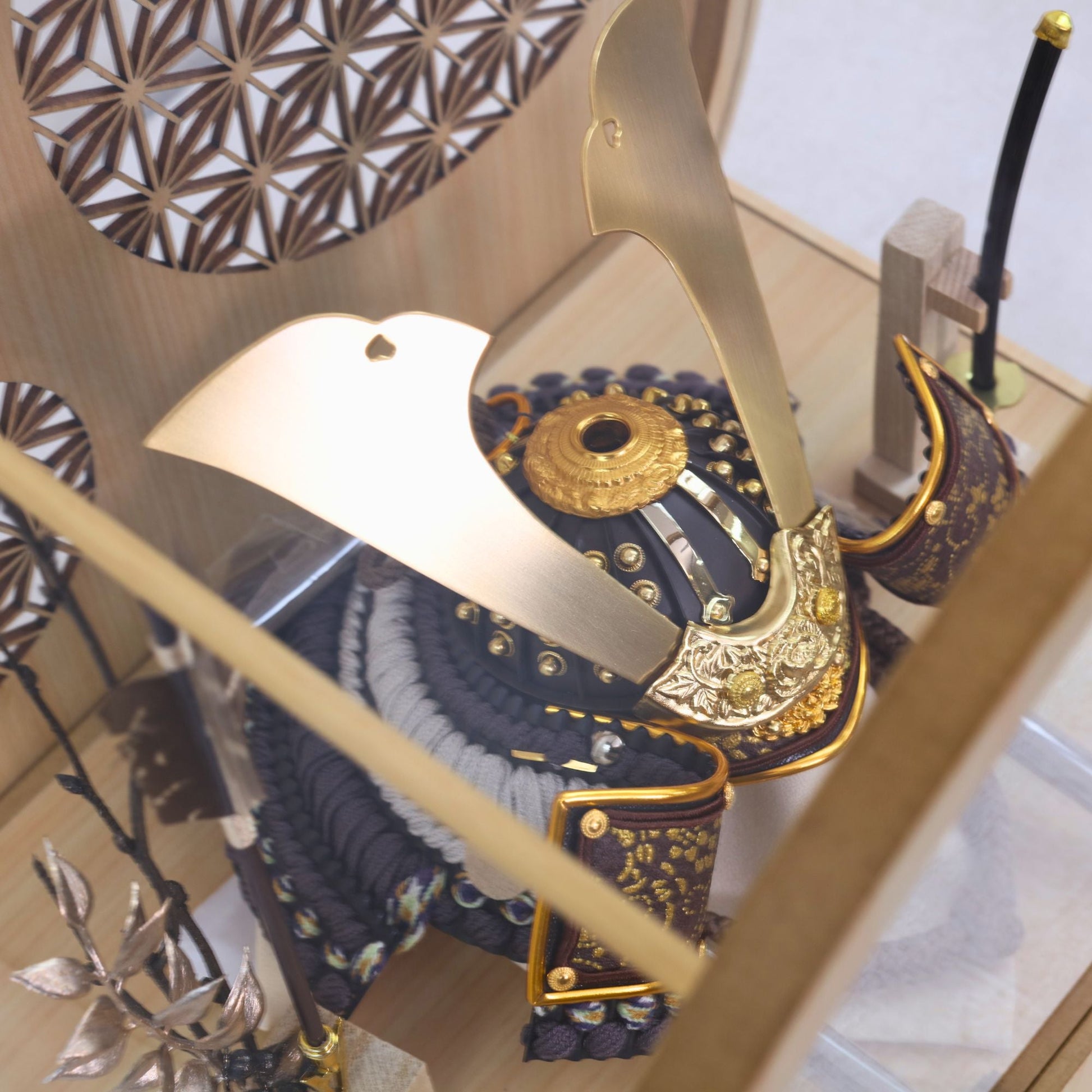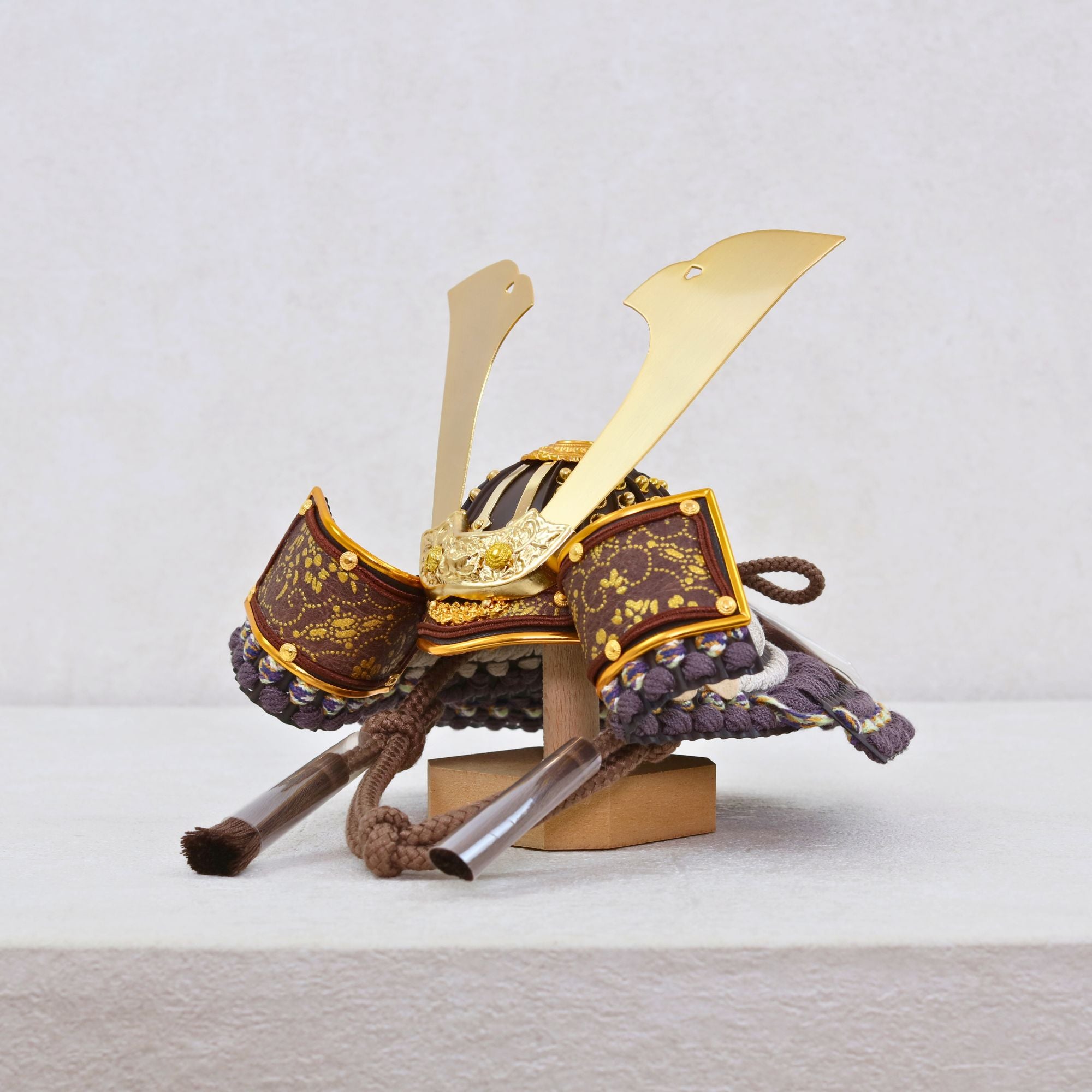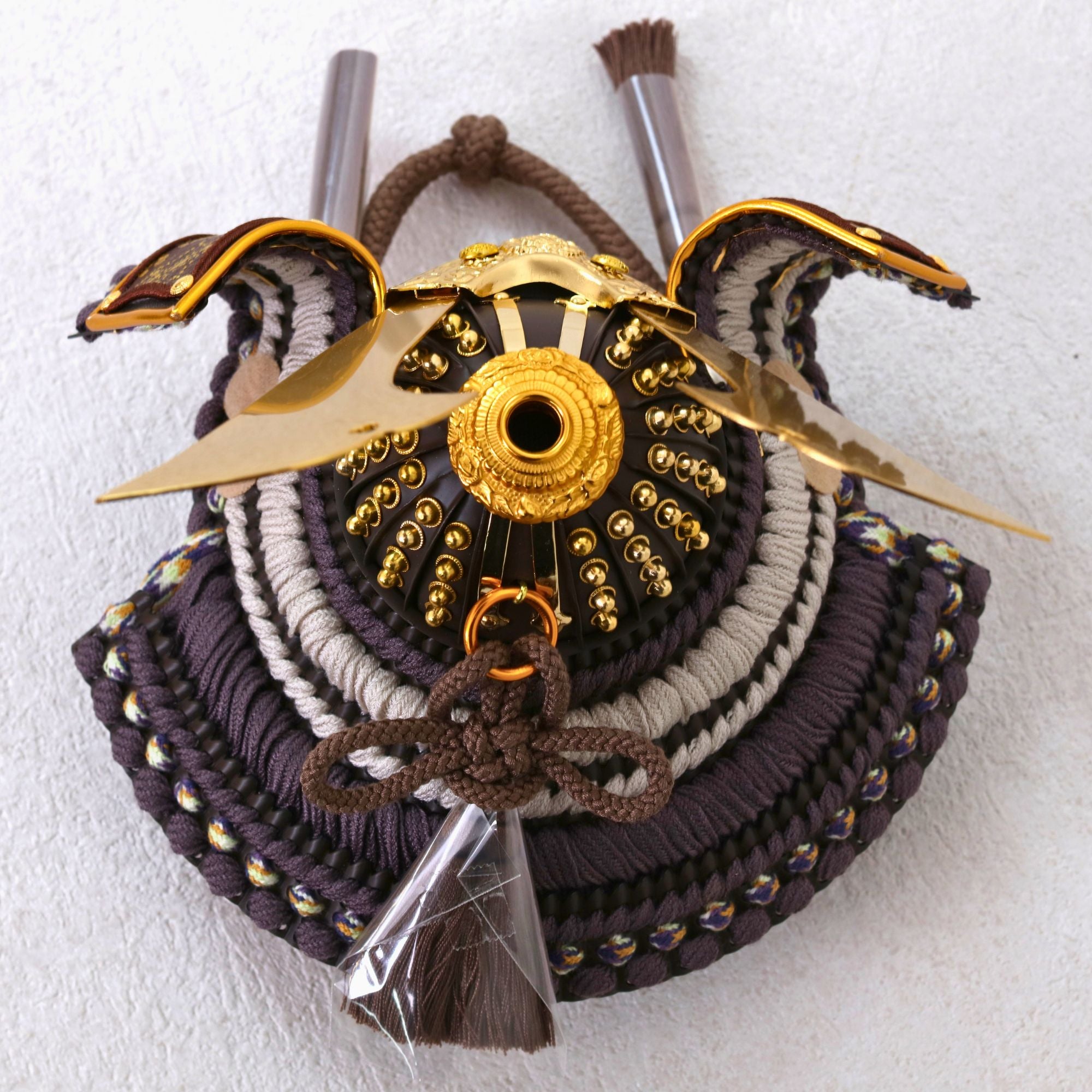 抑えの効いた金色の鍬形は、過度な装飾を避けた端正な形状で、兜全体を引き締めています。