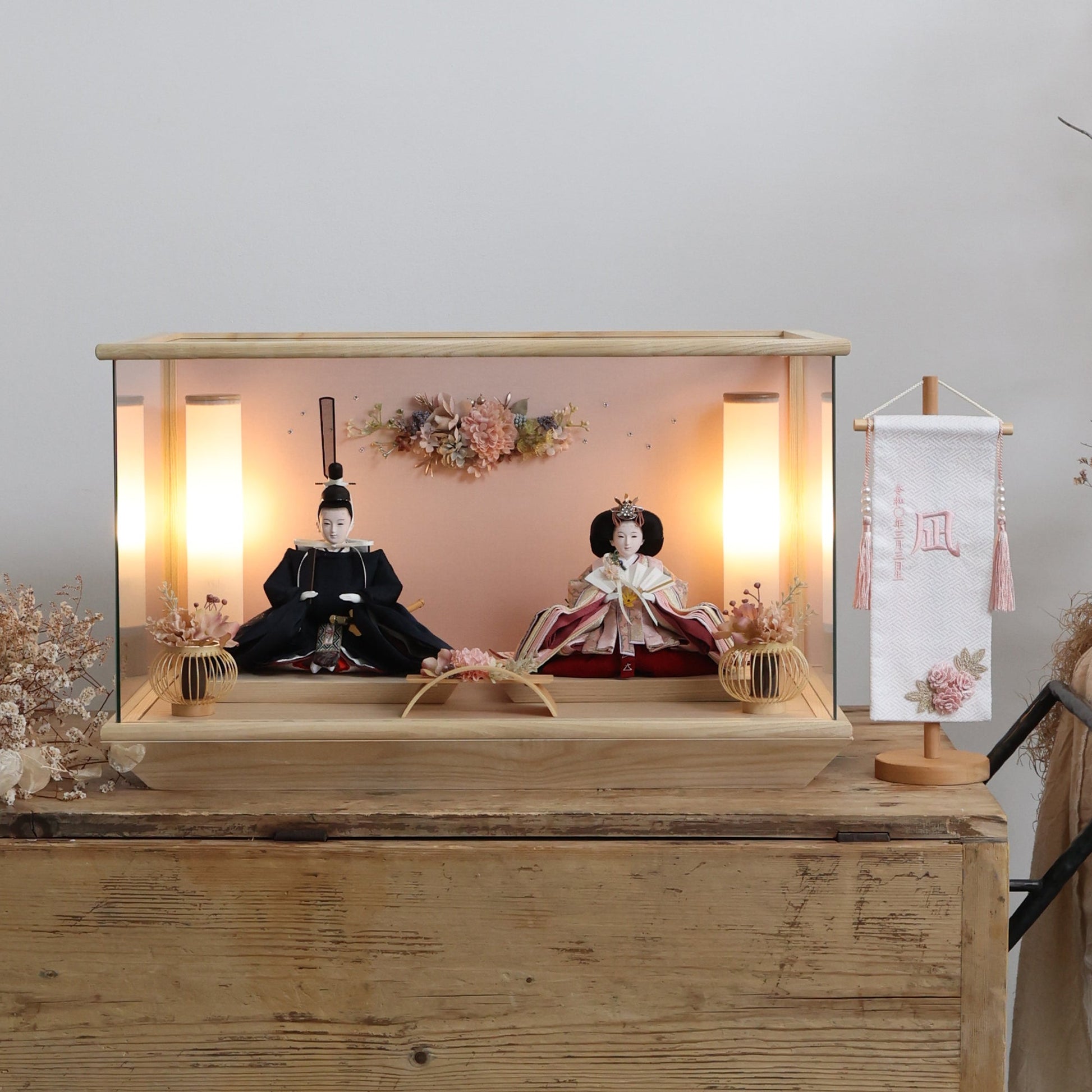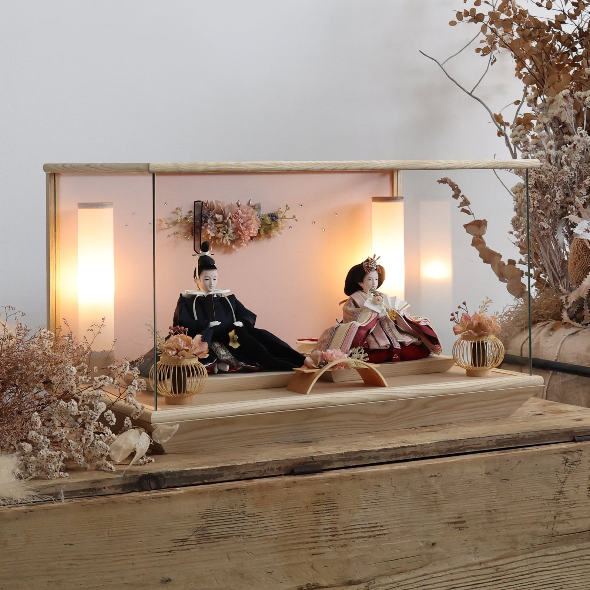 通常2mm厚が一般的な中、当店ではより高品質なAGC製3mmガラスを採用しています。厚みが増すことで強度と安全性が高まり、透明度の高いクリアな美しさを保ちます。大切な雛人形を守りながら、高級感のある見栄えを実現しています。