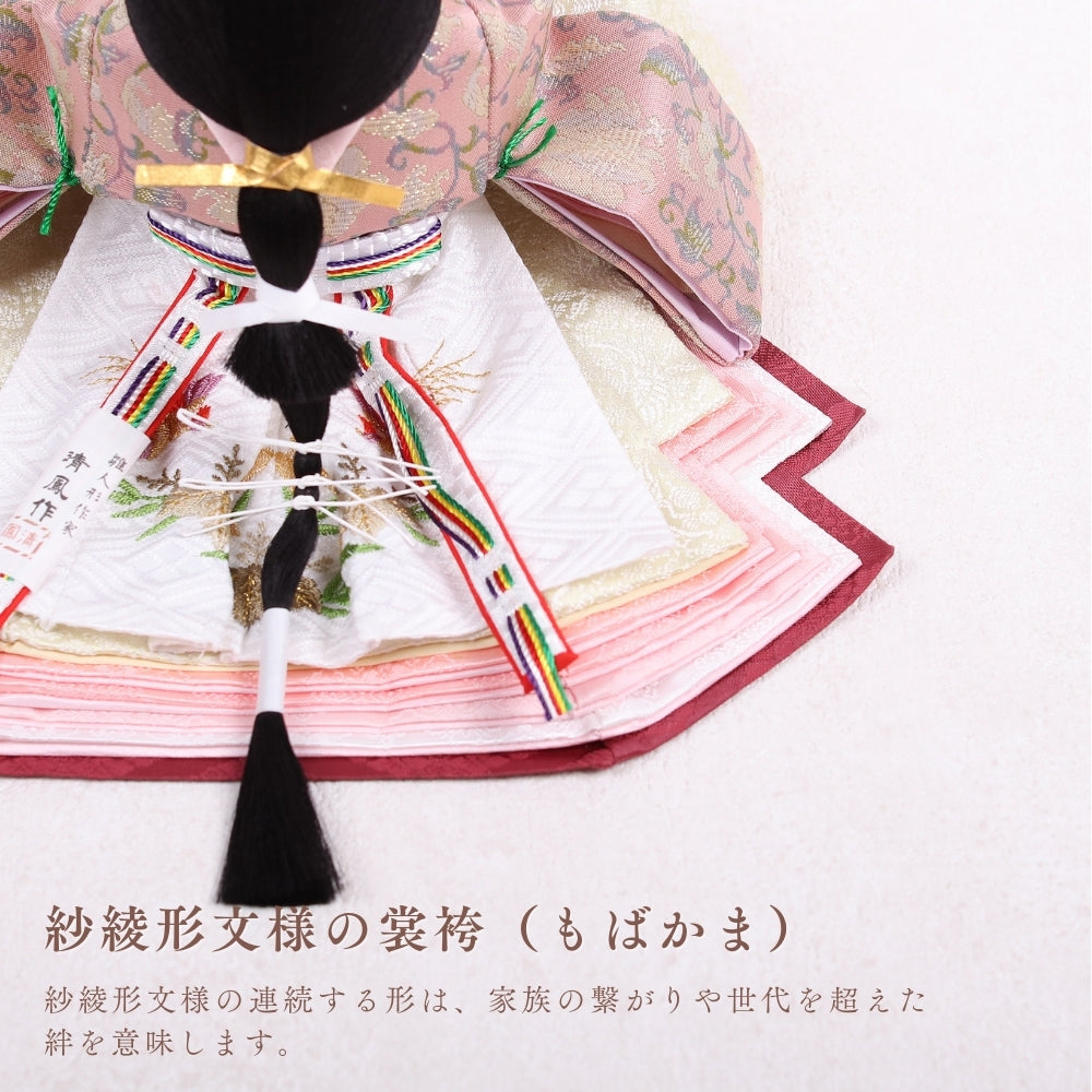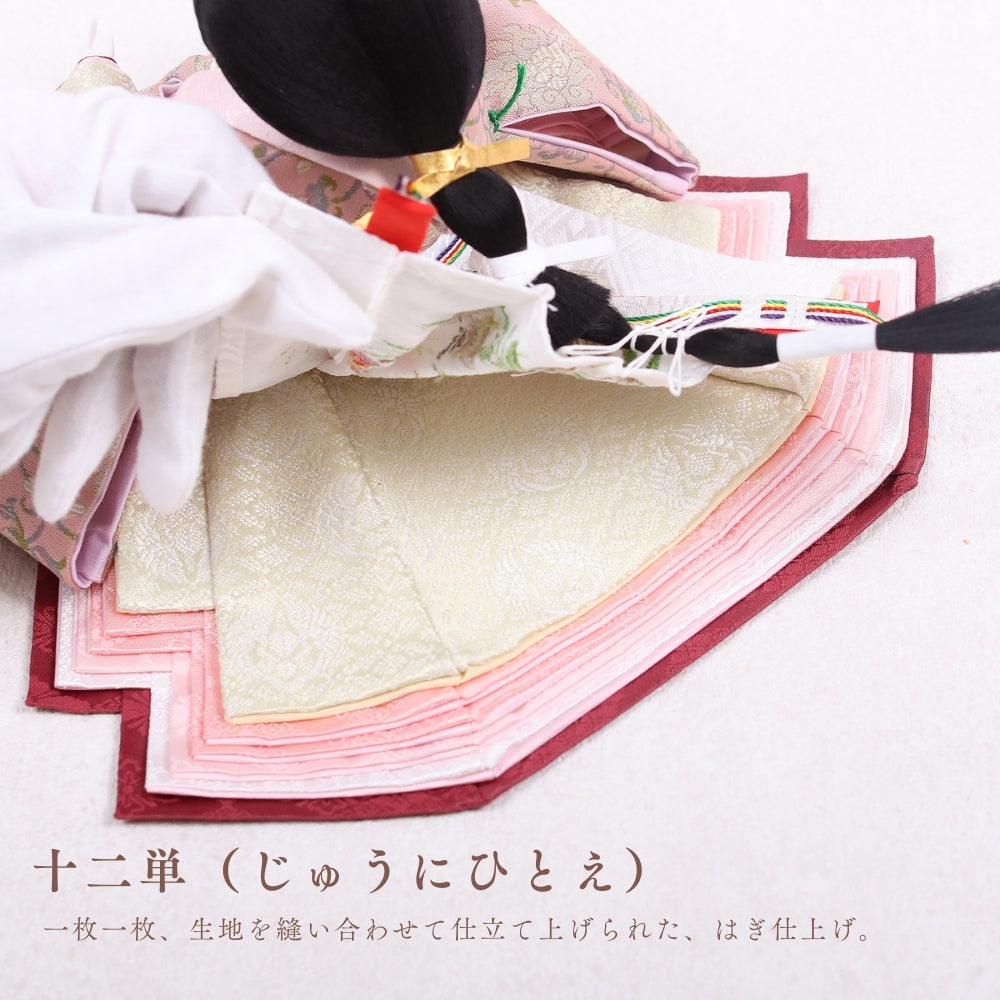正絹は、100%絹から作られた生地で、「本絹」とも呼ばれます。蚕の繭を原料にし、複雑な工程を経て製造されます。絹糸を織って生地に仕上げることで、独特の光沢と滑らかな質感が生まれ、高級感のあるお人形が完成します。正絹は伝統的な工芸品に広く用いられ、その美しさが際立っています。