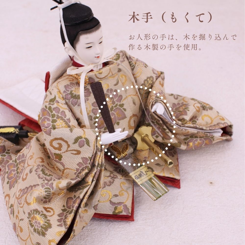 国産の栓(せん)は、美しい木目と温もりある質感が魅力の天然木です。耐久性に優れ、経年とともに味わいを深めます。台座や屏風などに使用することで、自然素材ならではの落ち着いた風合いと上質感を演出し、雛人形全体をより品格ある印象に仕上げます。