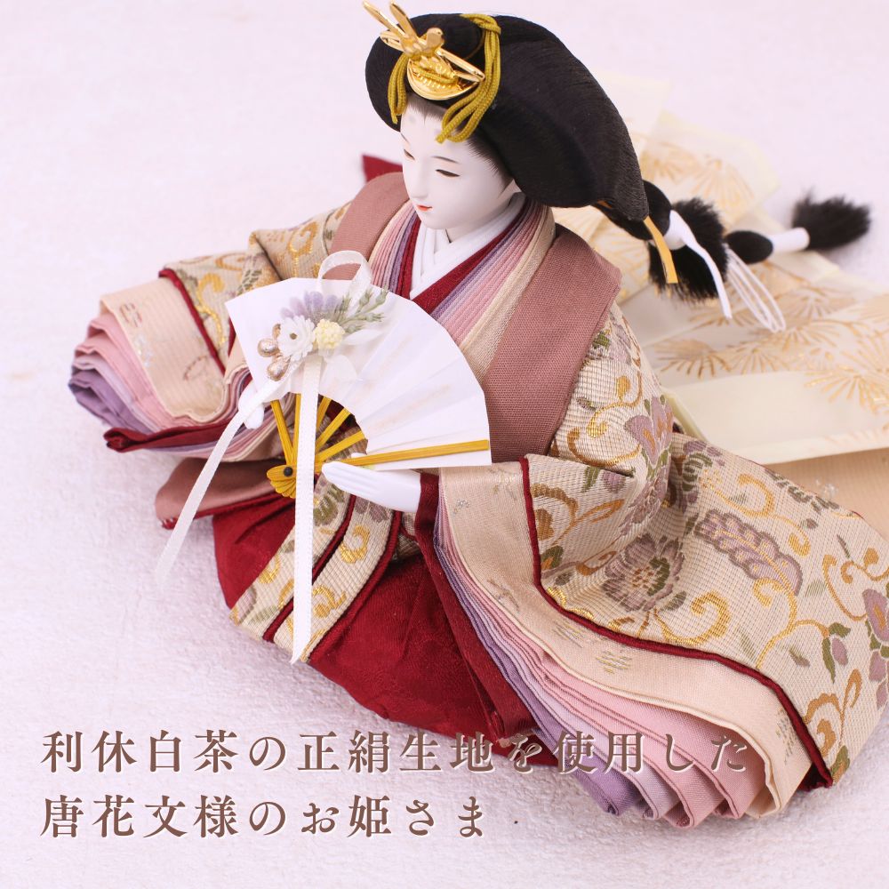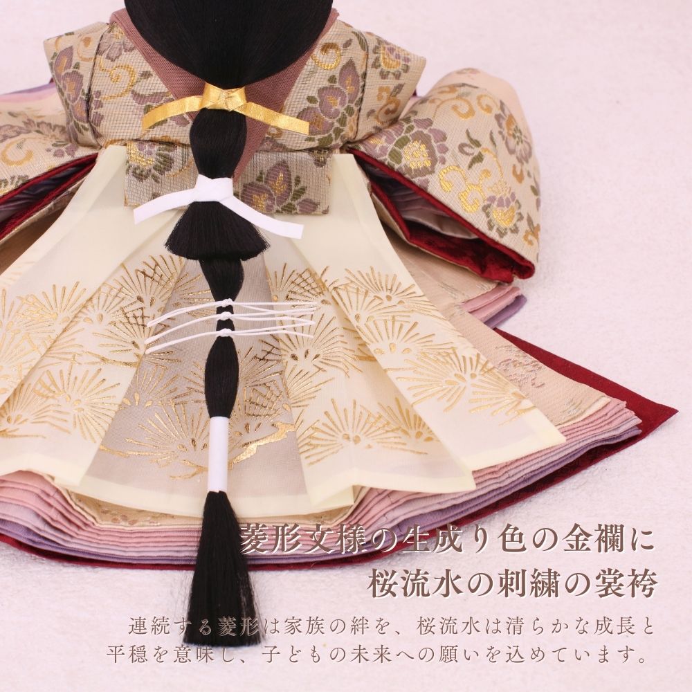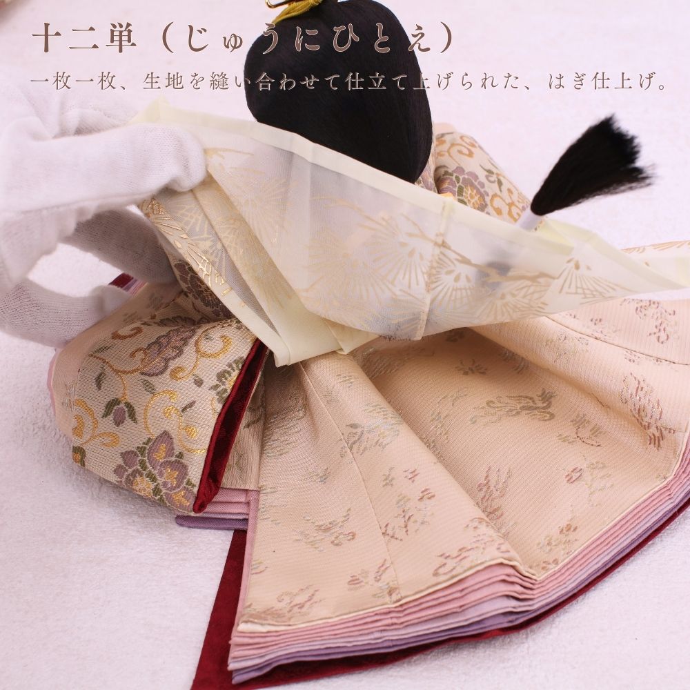 正絹は、100%絹から作られた生地で、「本絹」とも呼ばれます。蚕の繭を原料にし、複雑な工程を経て製造されます。絹糸を織って生地に仕上げることで、独特の光沢と滑らかな質感が生まれ、高級感のあるお人形が完成します。正絹は伝統的な工芸品に広く用いられ、その美しさが際立っています。