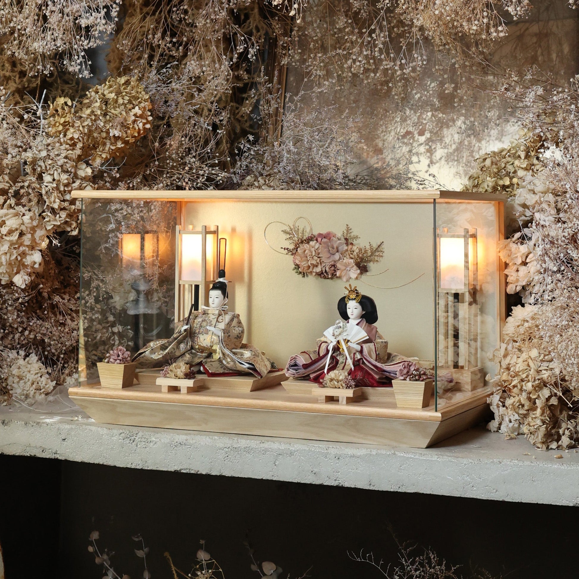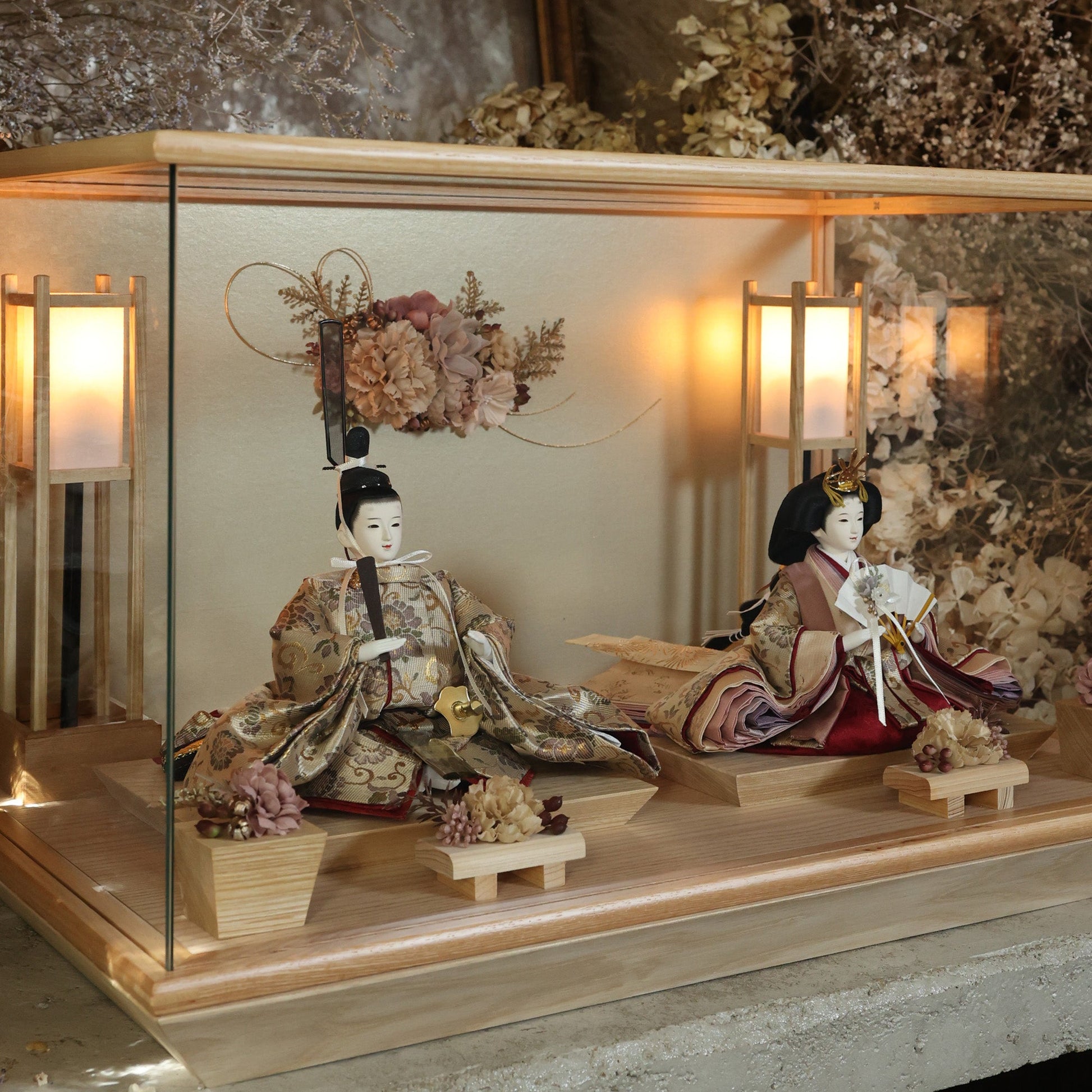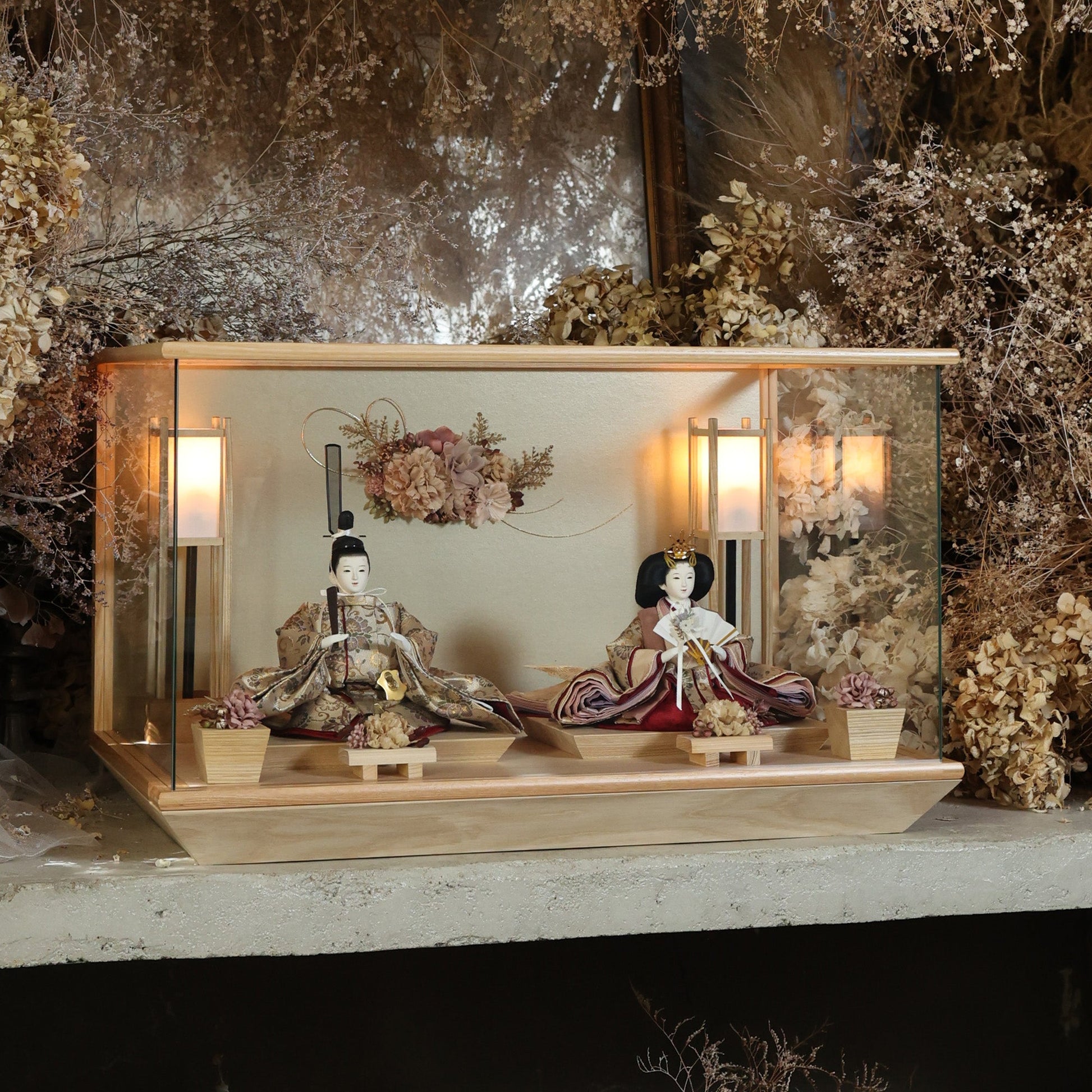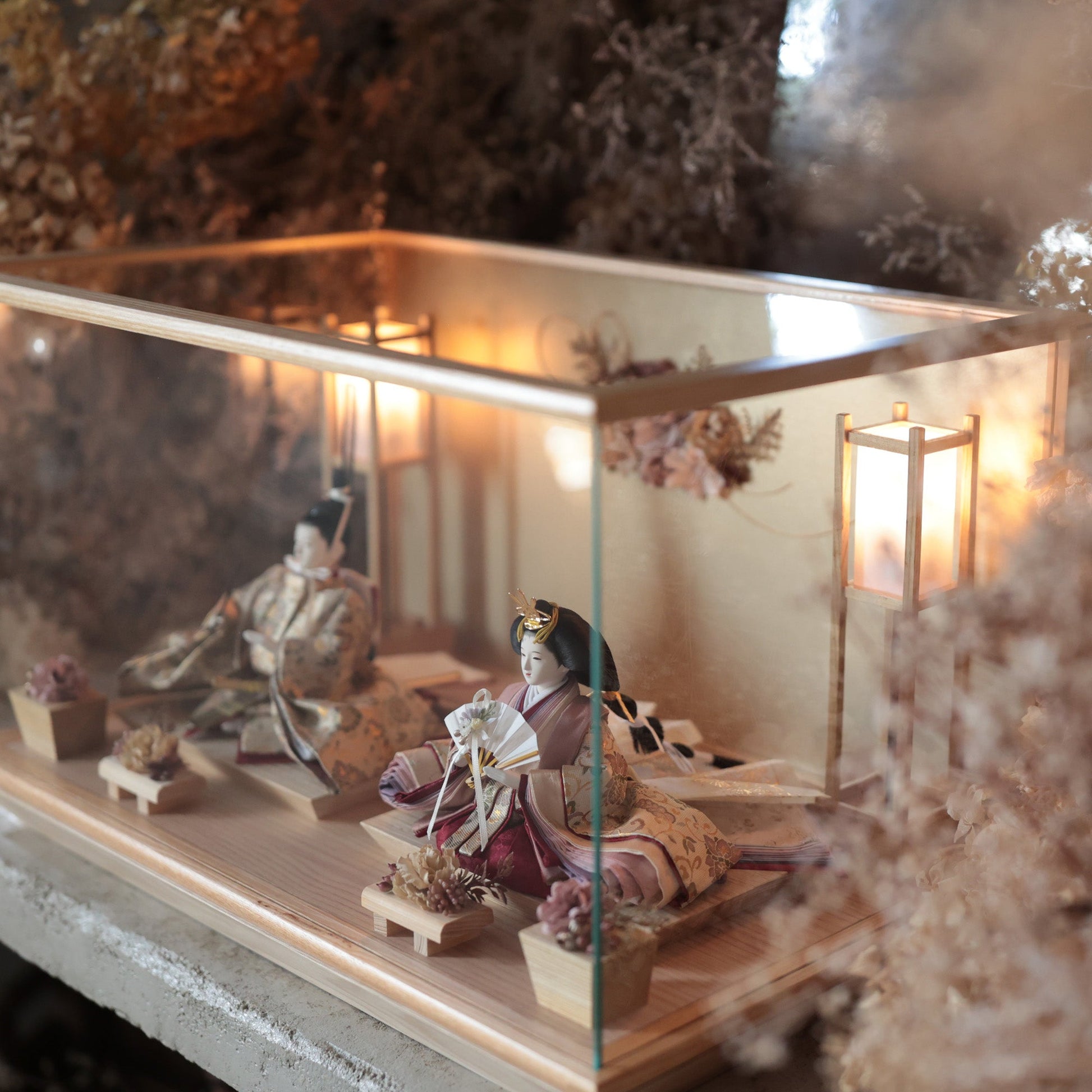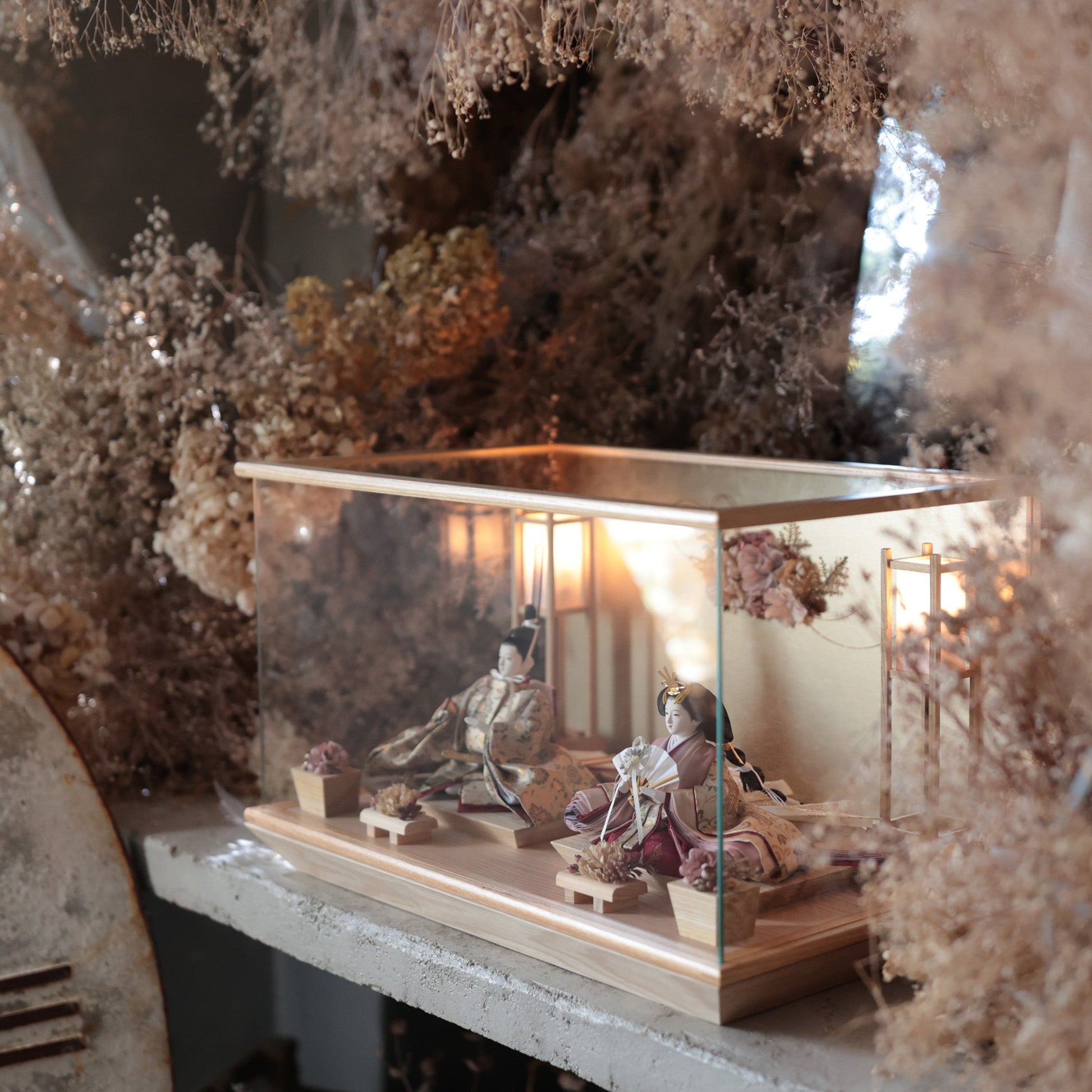 通常2mm厚が一般的な中、当店ではより高品質なAGC製3mmガラスを採用しています。厚みが増すことで強度と安全性が高まり、透明度の高いクリアな美しさを保ちます。大切な雛人形を守りながら、高級感のある見栄えを実現しています。