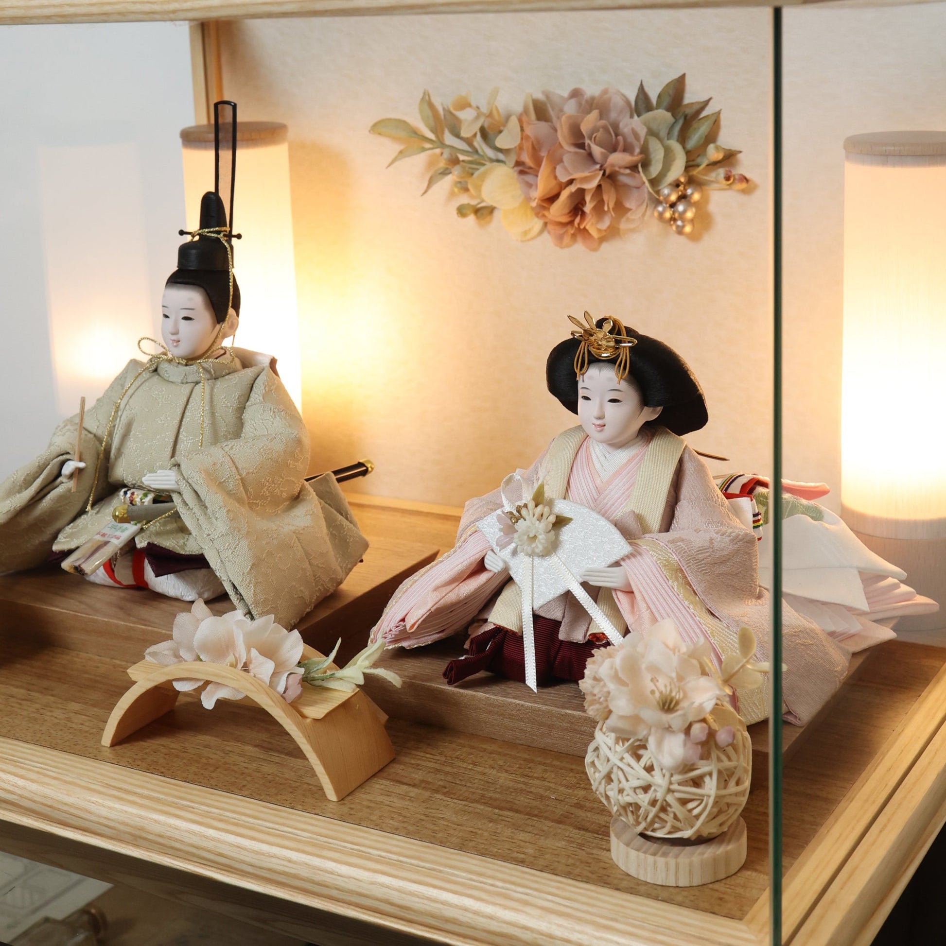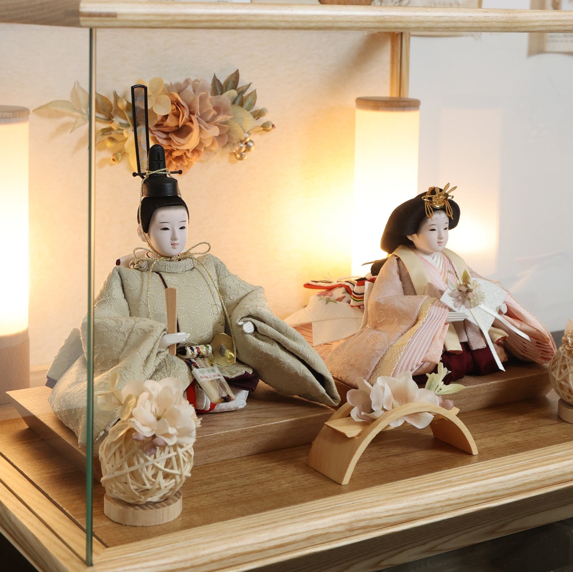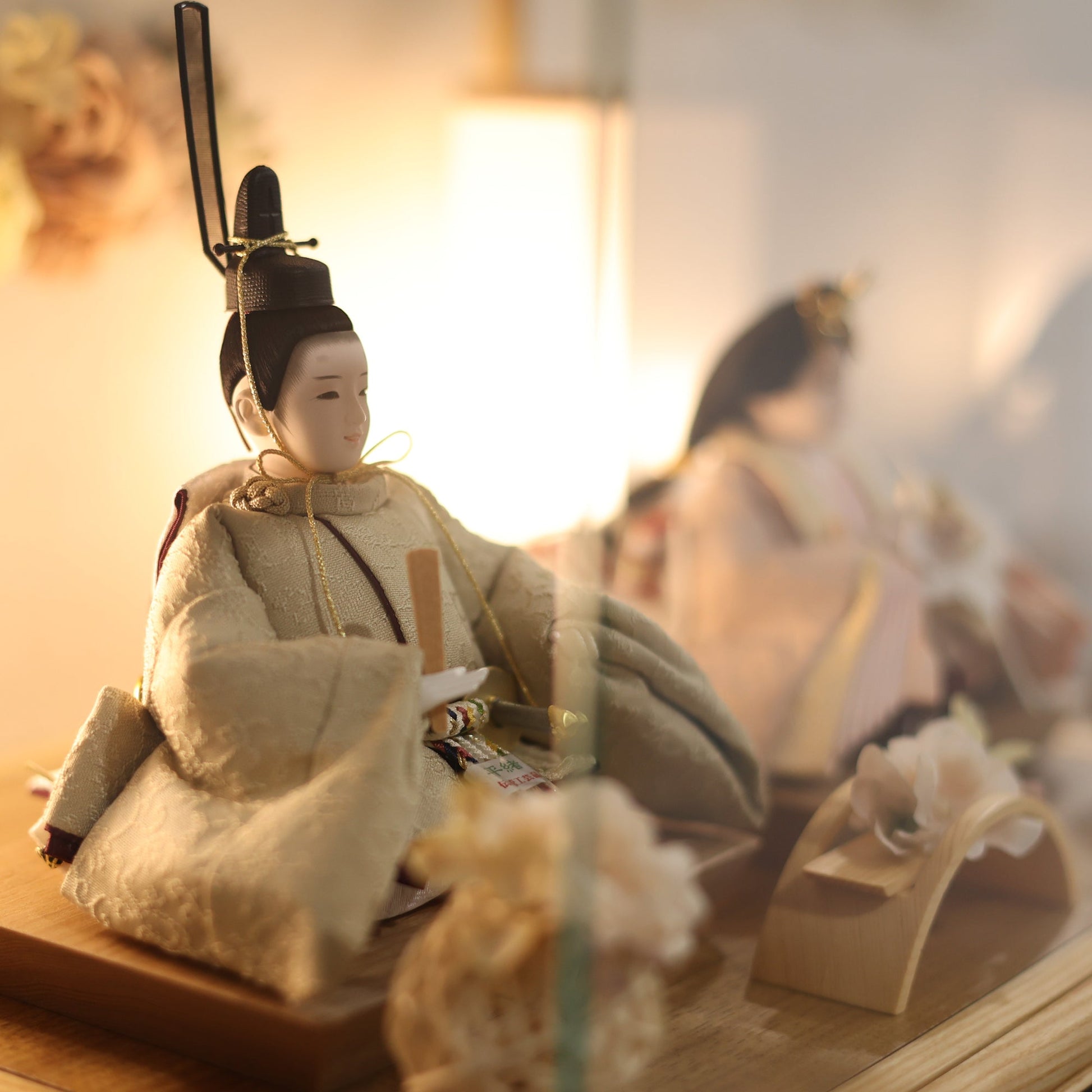 通常2mm厚が一般的な中、当店ではより高品質なAGC製3mmガラスを採用しています。厚みが増すことで強度と安全性が高まり、透明度の高いクリアな美しさを保ちます。大切な雛人形を守りながら、高級感のある見栄えを実現しています。