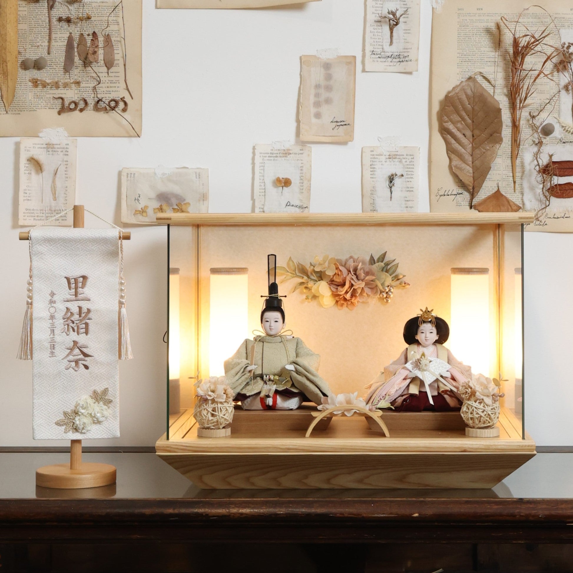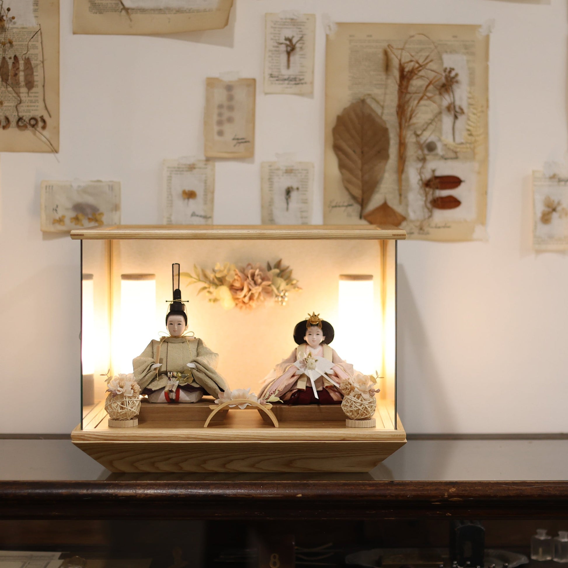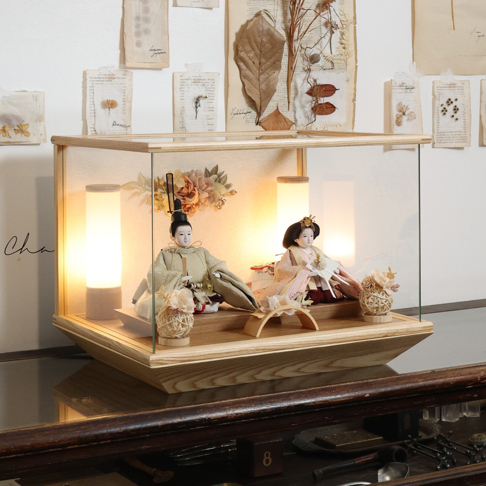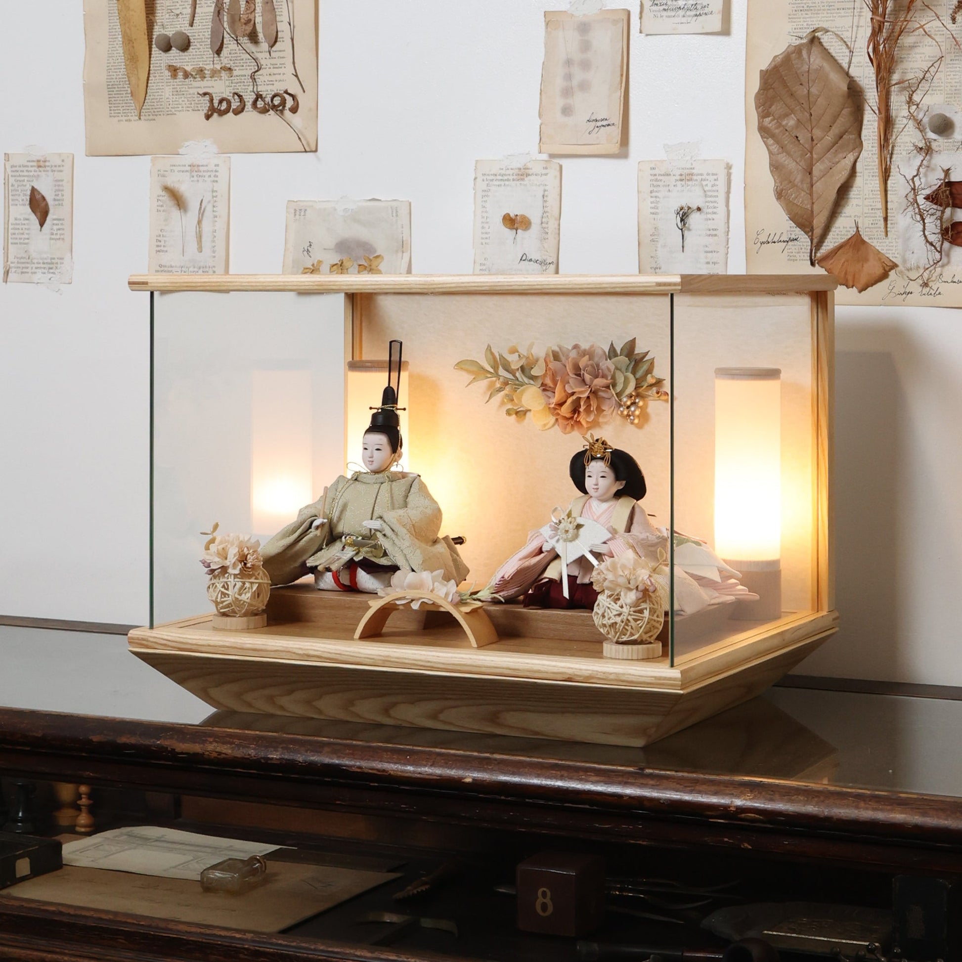 通常2mm厚が一般的な中、当店ではより高品質なAGC製3mmガラスを採用しています。厚みが増すことで強度と安全性が高まり、透明度の高いクリアな美しさを保ちます。大切な雛人形を守りながら、高級感のある見栄えを実現しています。