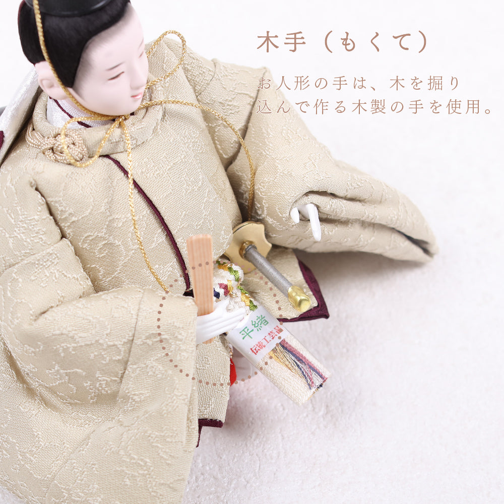 国産の栓(せん)は、美しい木目と温もりある質感が魅力の天然木です。耐久性に優れ、経年とともに味わいを深めます。台座や屏風などに使用することで、自然素材ならではの落ち着いた風合いと上質感を演出し、雛人形全体をより品格ある印象に仕上げます。