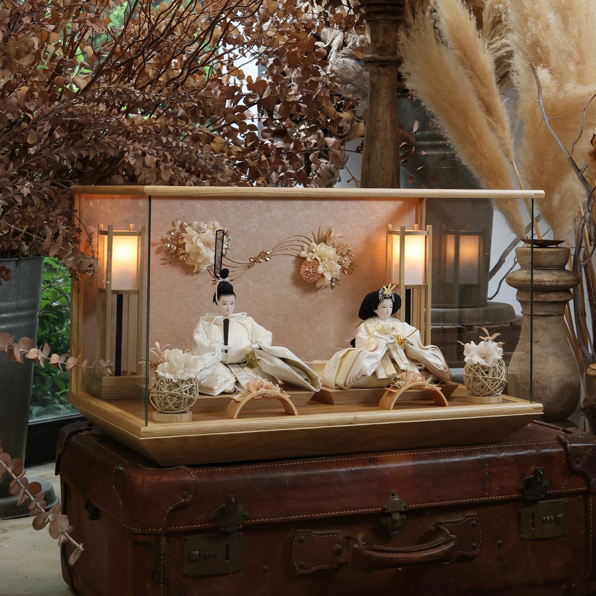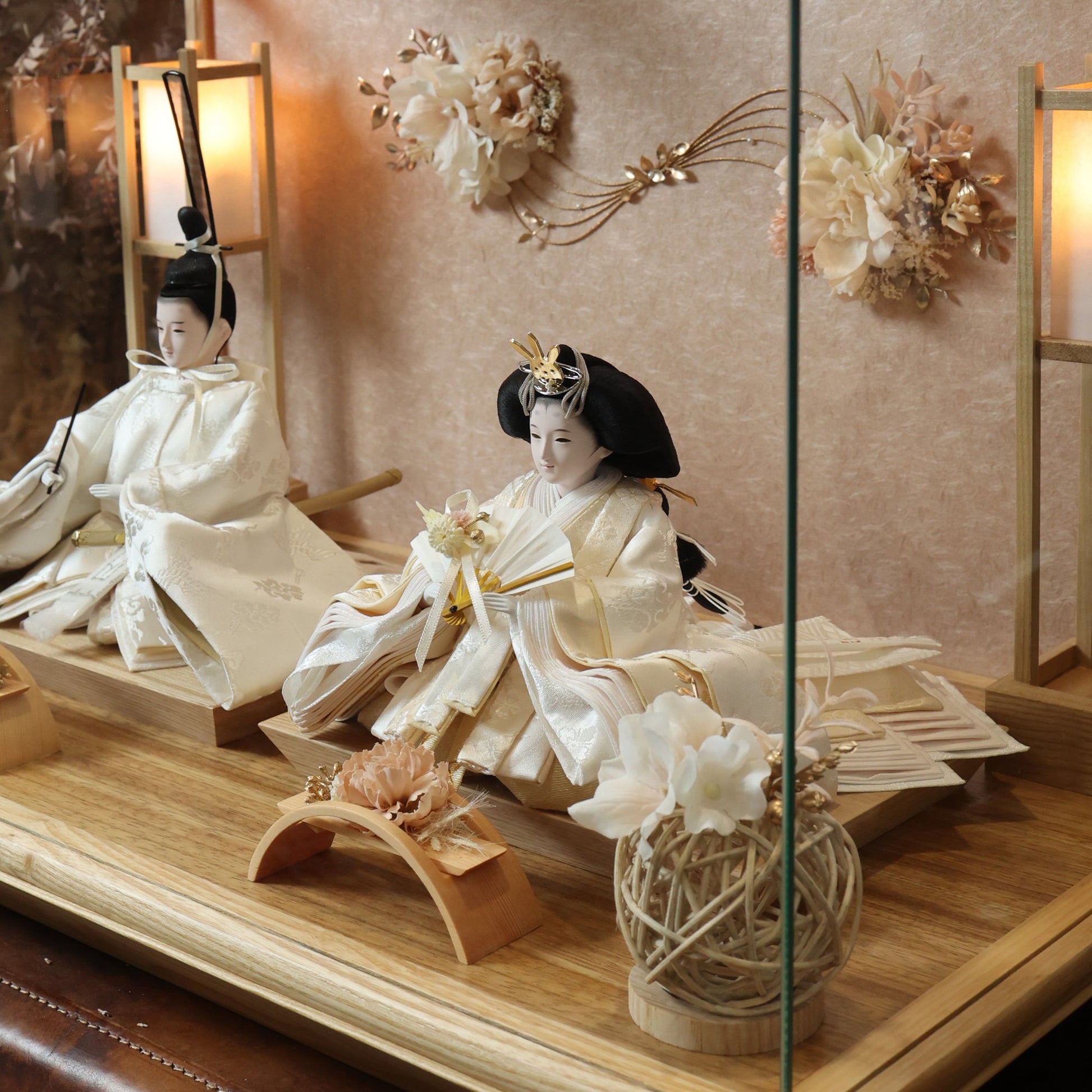 通常2mm厚が一般的な中、当店ではより高品質なAGC製3mmガラスを採用しています。厚みが増すことで強度と安全性が高まり、透明度の高いクリアな美しさを保ちます。大切な雛人形を守りながら、高級感のある見栄えを実現しています。