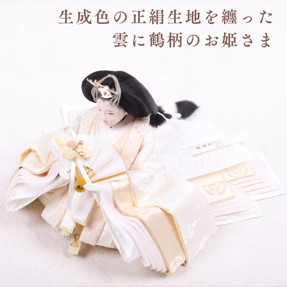 生成色の正絹生地を纏った雲に鶴柄のお姫さま