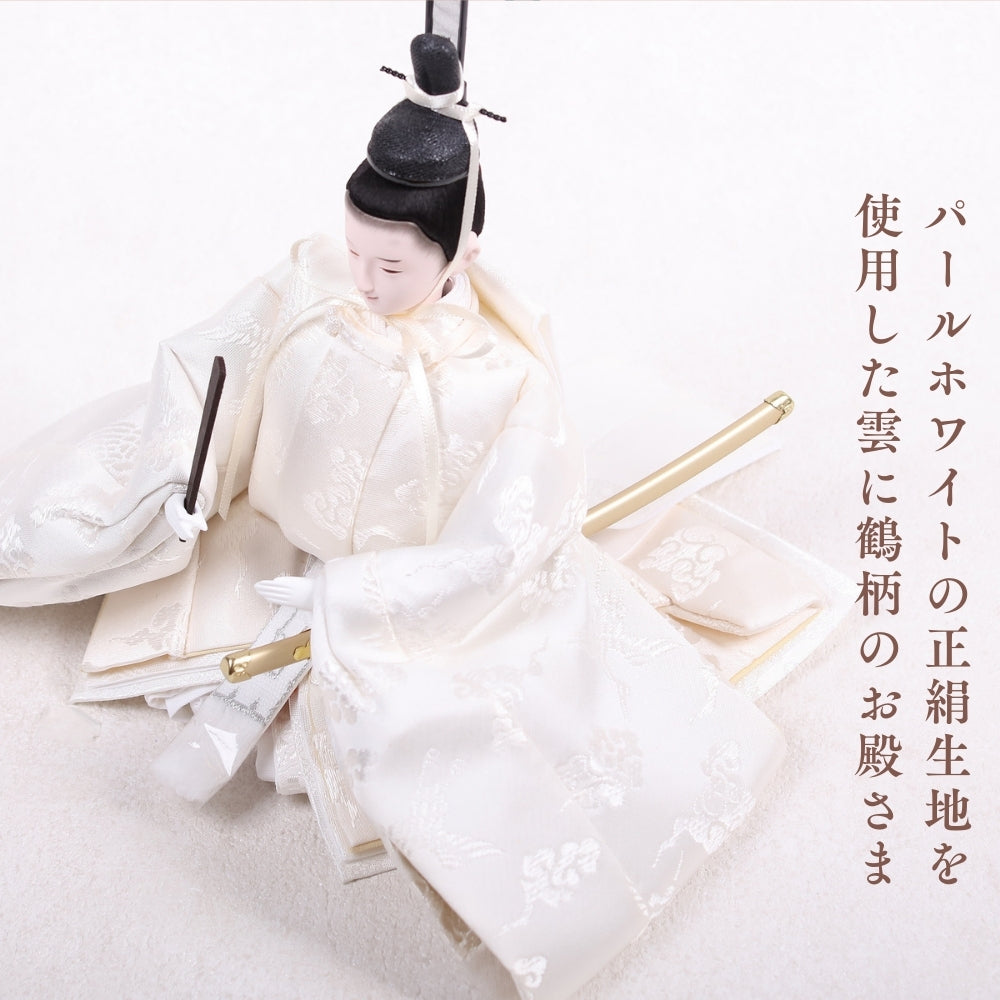 パールホワイトの正絹生地を使用した雲に鶴柄のお殿さま