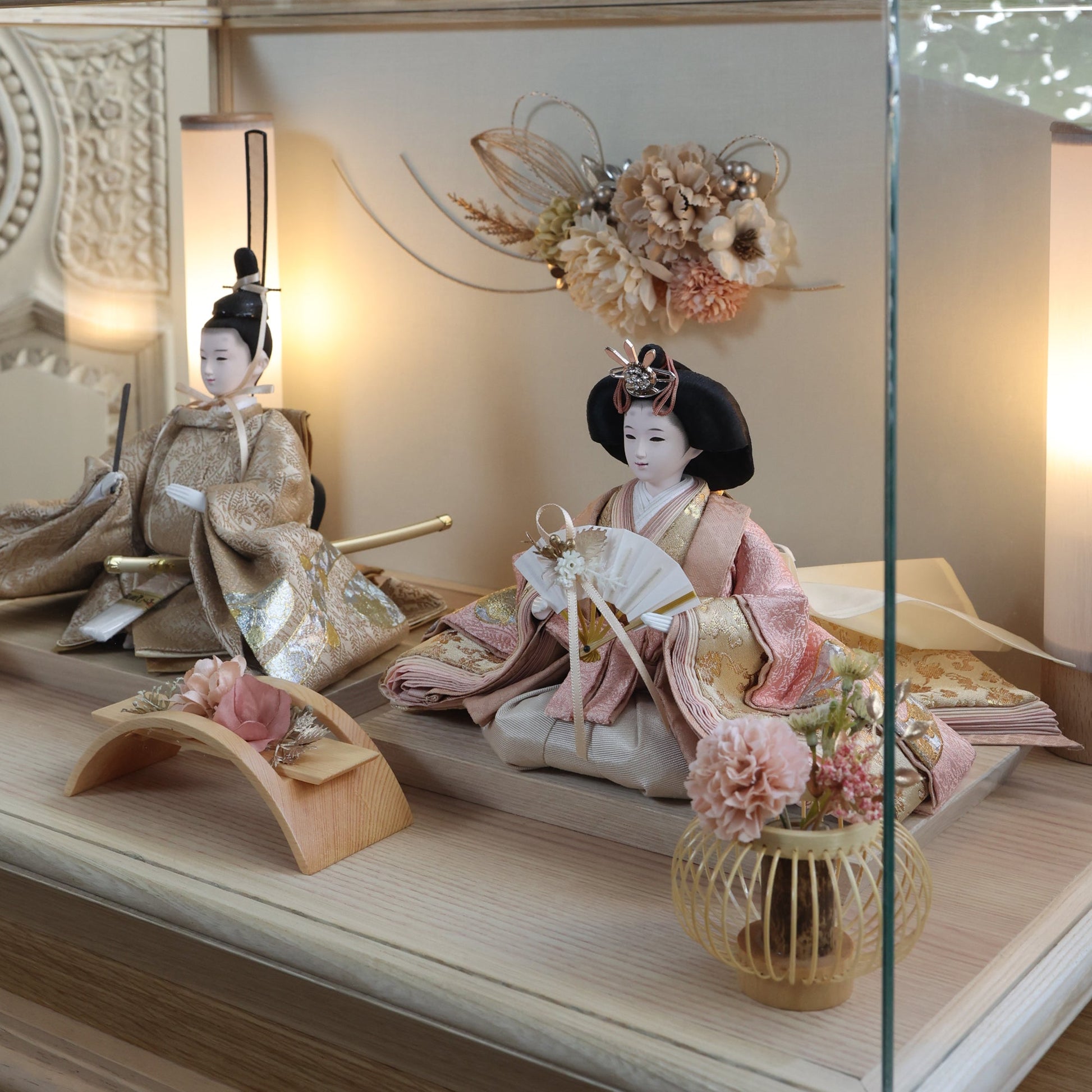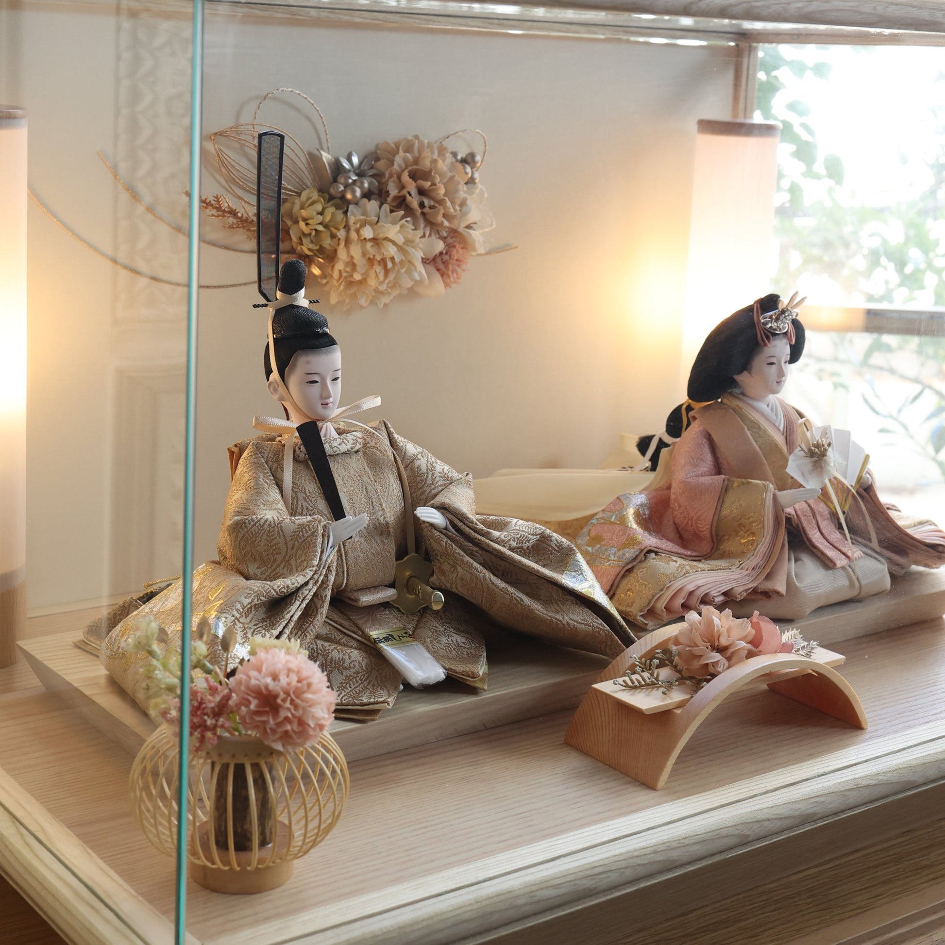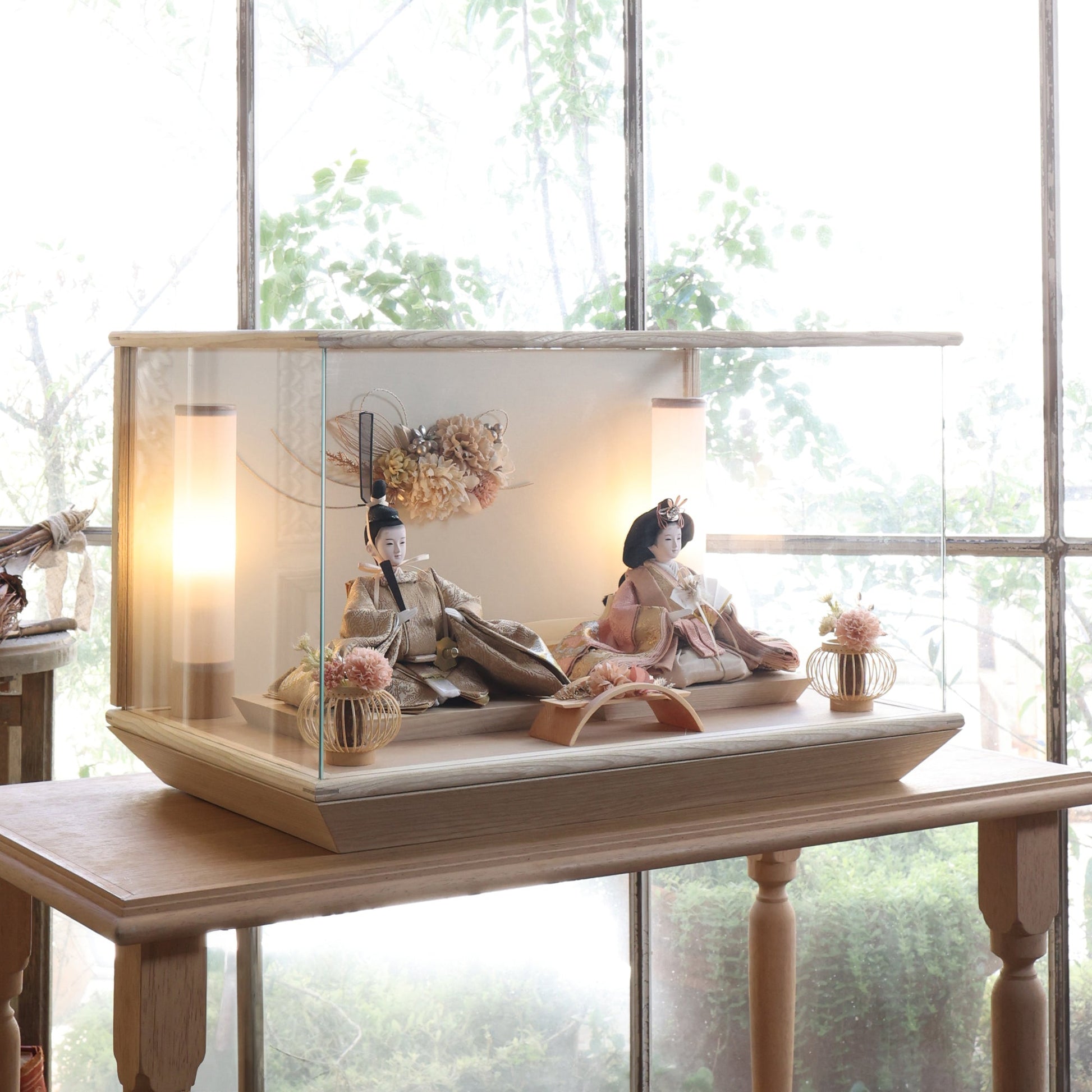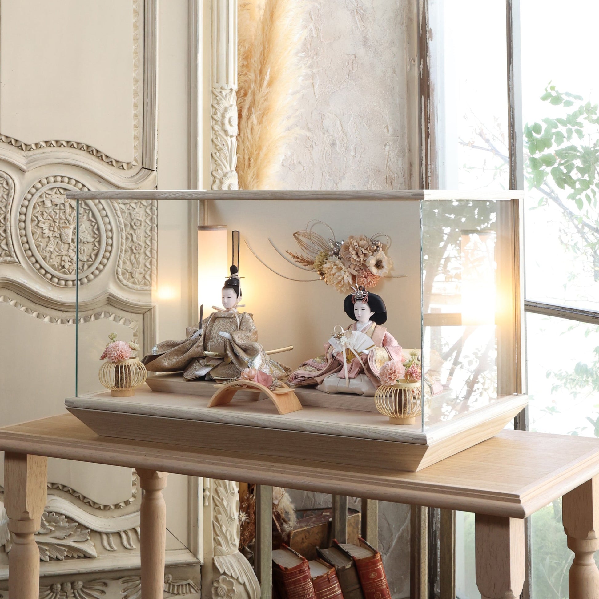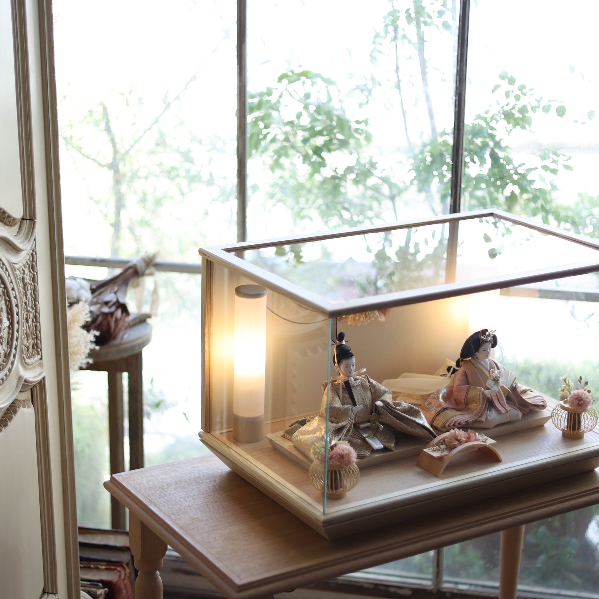 通常2mm厚が一般的な中、当店ではより高品質なAGC製3mmガラスを採用しています。厚みが増すことで強度と安全性が高まり、透明度の高いクリアな美しさを保ちます。大切な雛人形を守りながら、高級感のある見栄えを実現しています。
