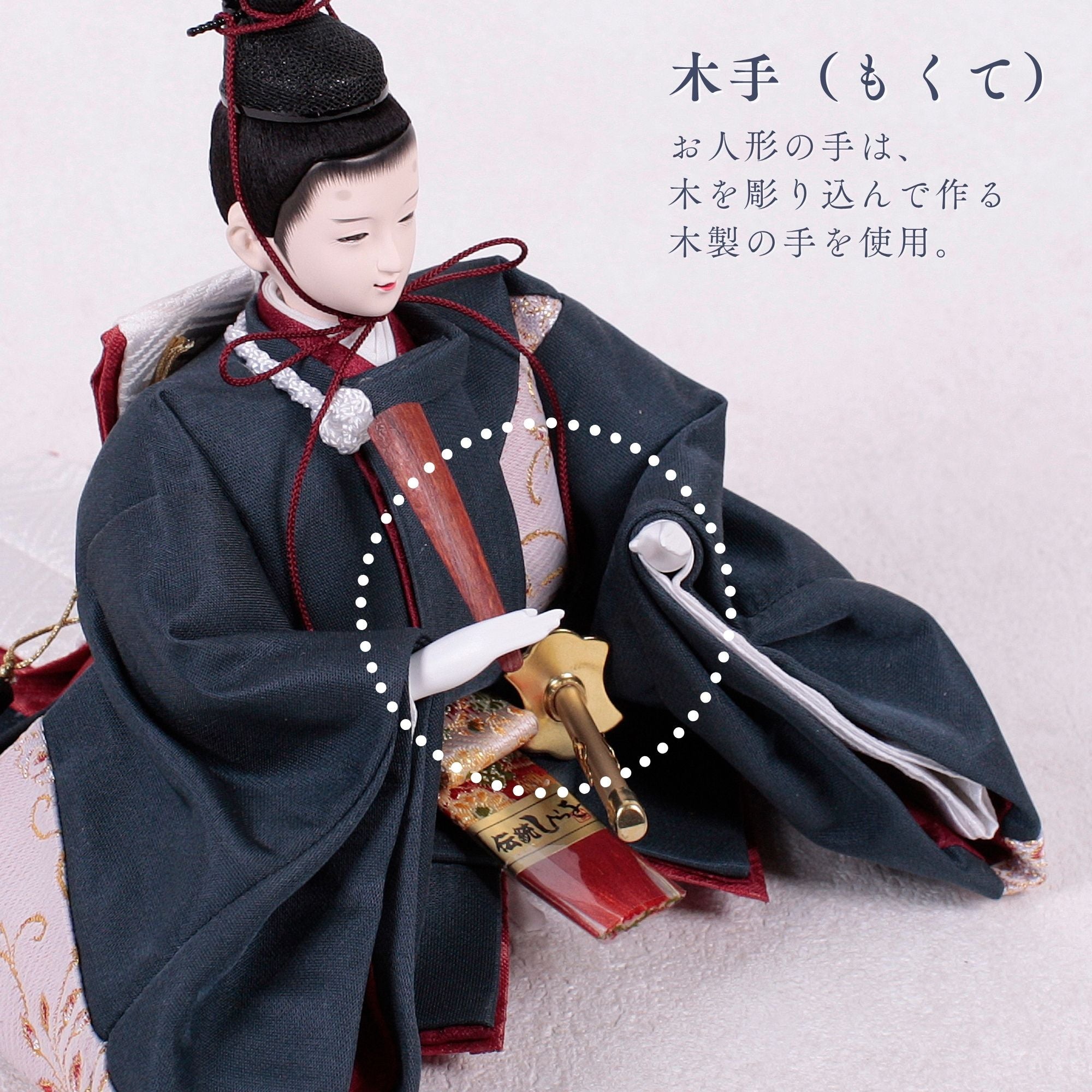 国産の栓(せん)は、美しい木目と温もりある質感が魅力の天然木です。耐久性に優れ、経年とともに味わいを深めます。台座や屏風などに使用することで、自然素材ならではの落ち着いた風合いと上質感を演出し、雛人形全体をより品格ある印象に仕上げます。