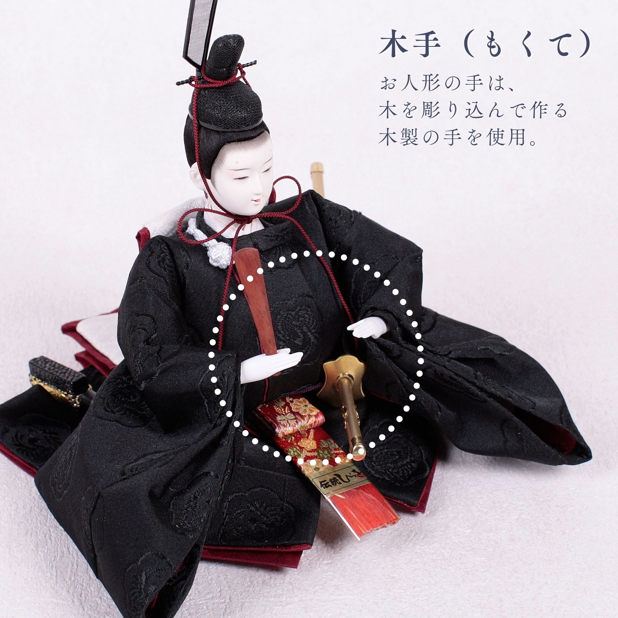 国産の栓(せん)は、美しい木目と温もりある質感が魅力の天然木です。耐久性に優れ、経年とともに味わいを深めます。台座や屏風などに使用することで、自然素材ならではの落ち着いた風合いと上質感を演出し、雛人形全体をより品格ある印象に仕上げます。