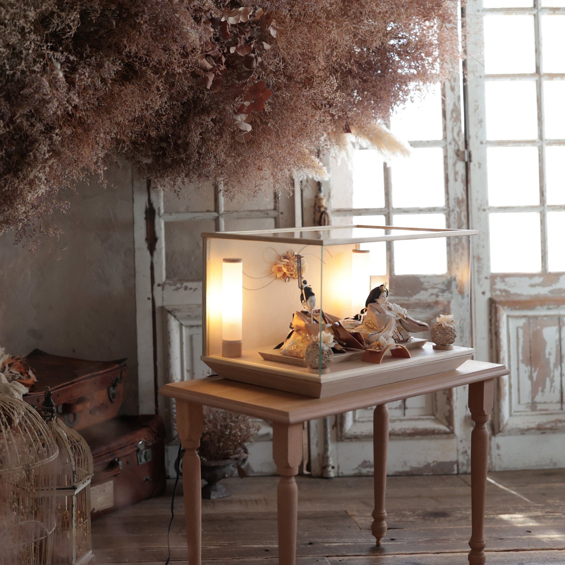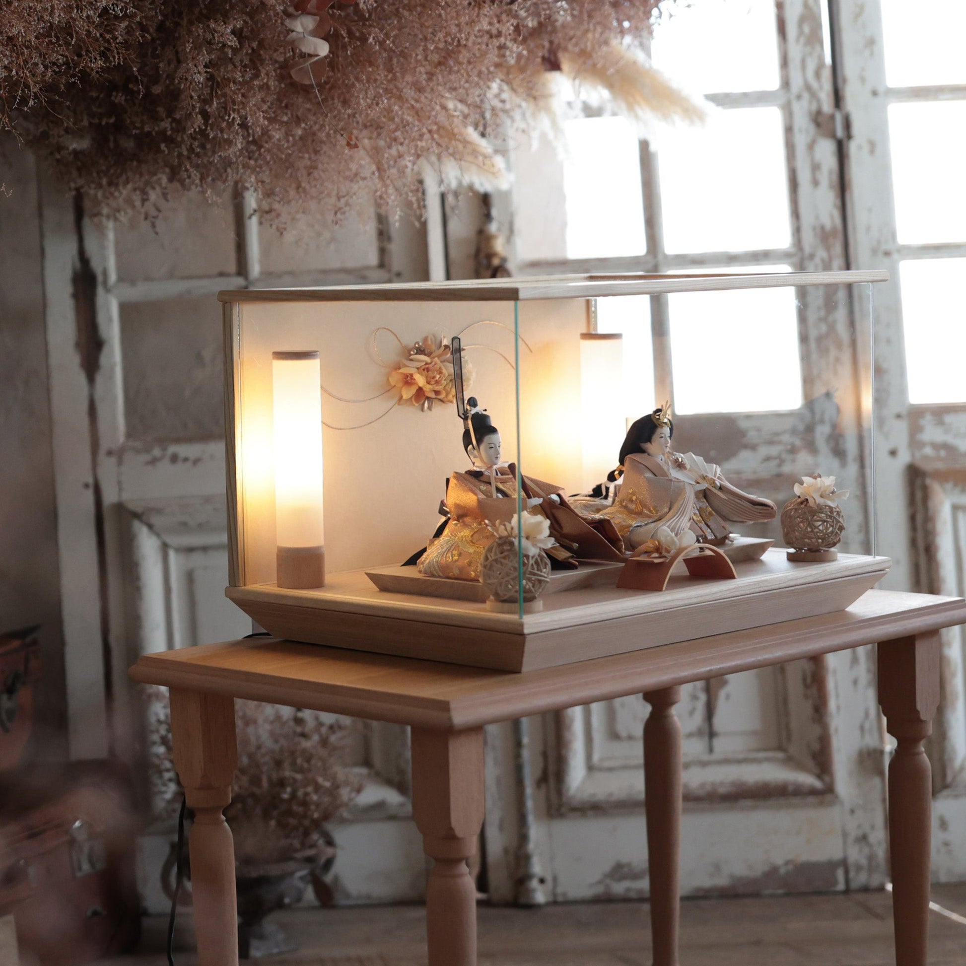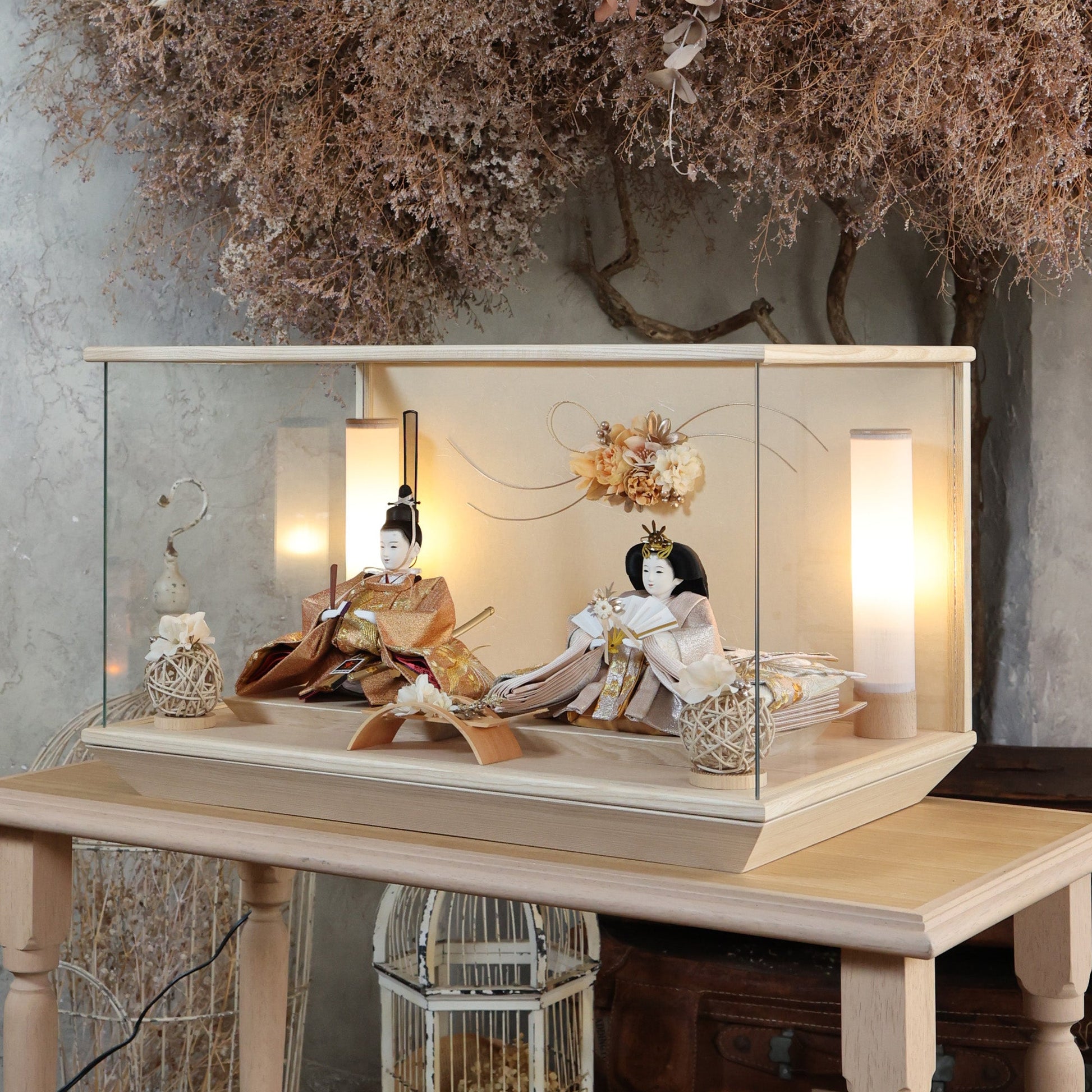 通常2mm厚が一般的な中、当店ではより高品質なAGC製3mmガラスを採用しています。厚みが増すことで強度と安全性が高まり、透明度の高いクリアな美しさを保ちます。大切な雛人形を守りながら、高級感のある見栄えを実現しています。