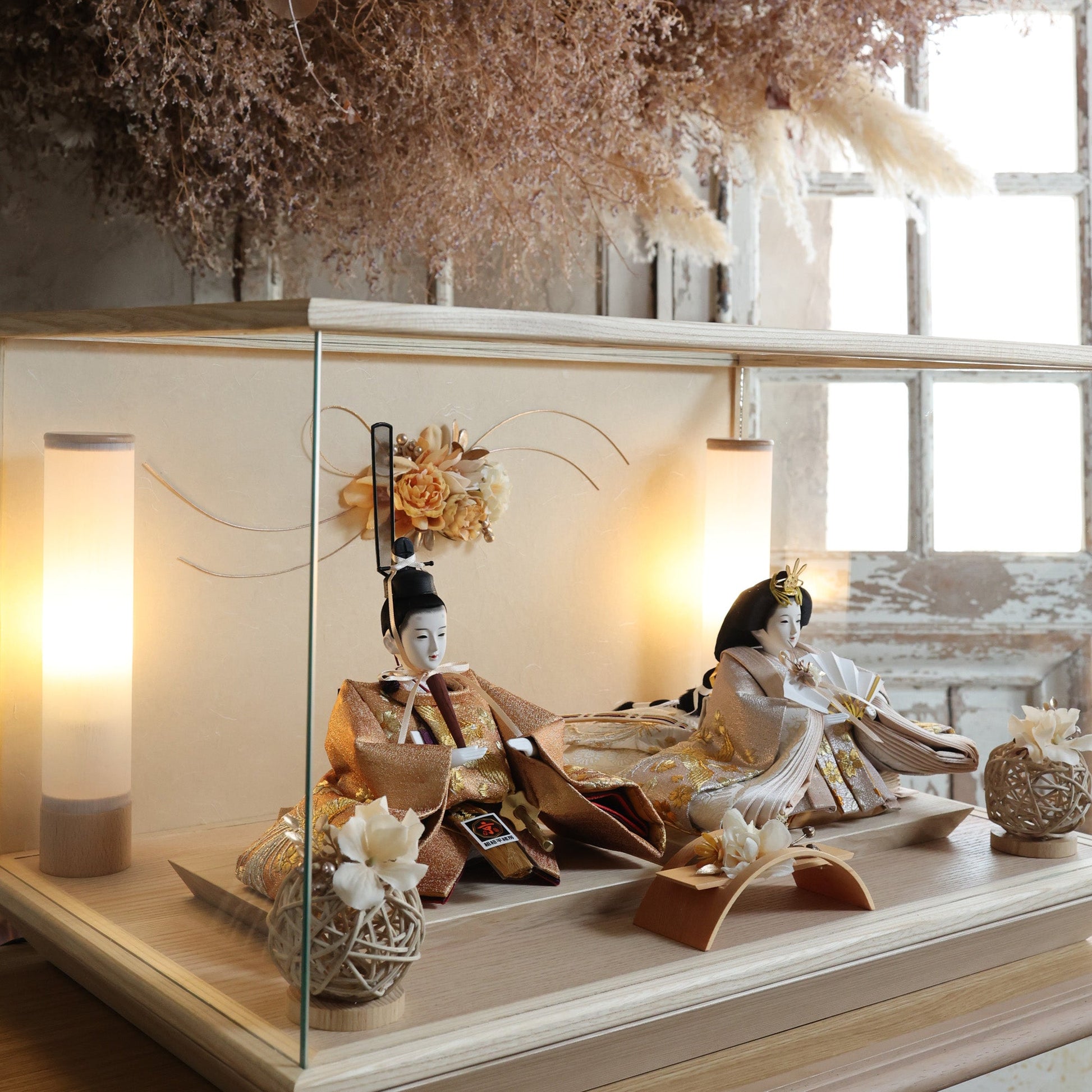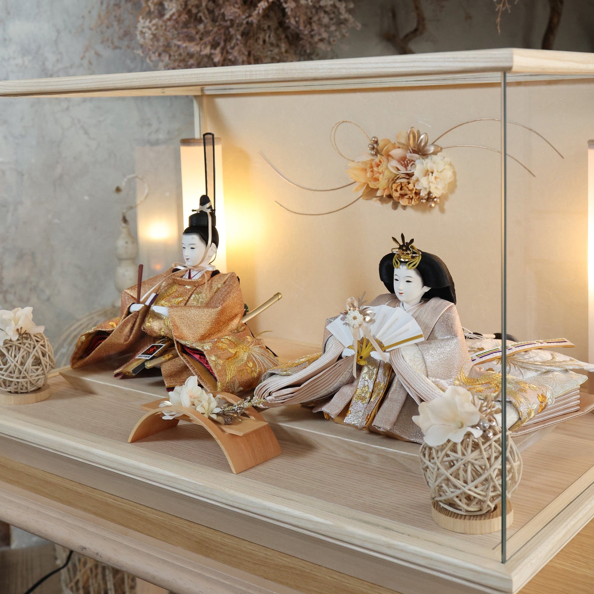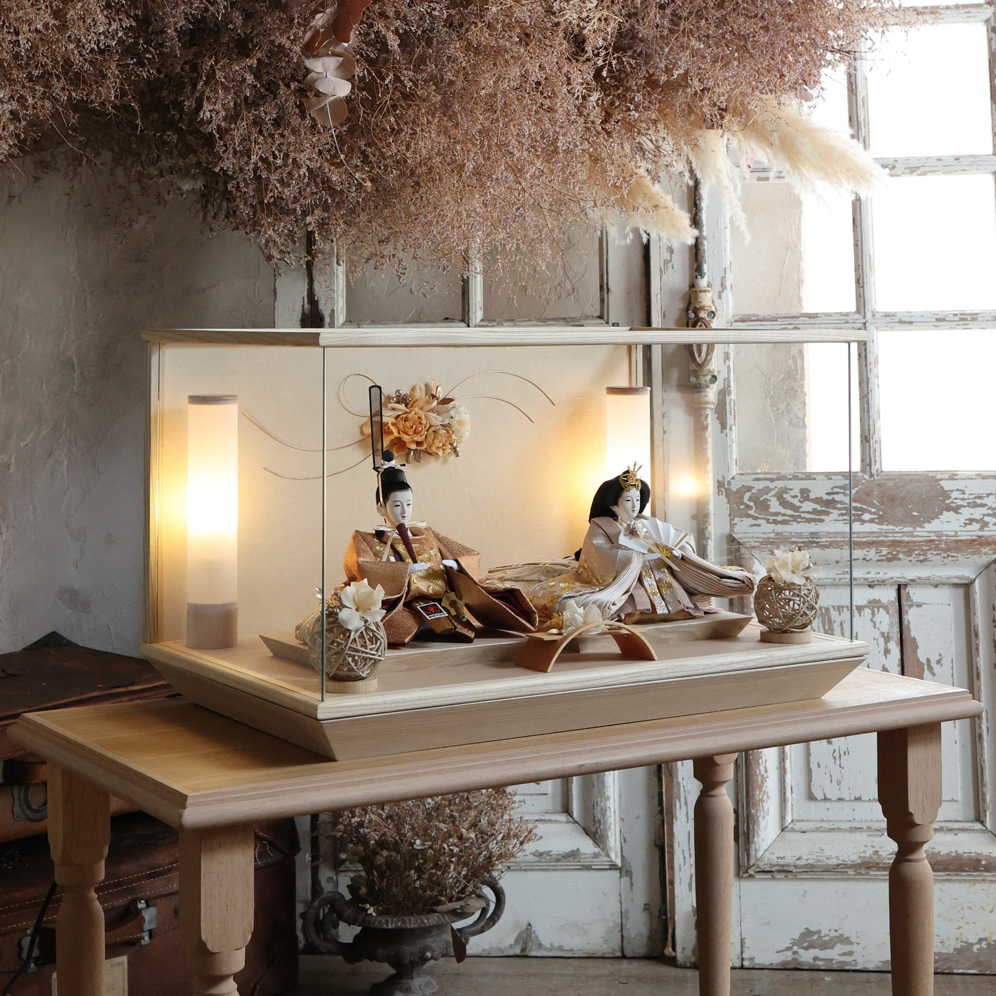 通常2mm厚が一般的な中、当店ではより高品質なAGC製3mmガラスを採用しています。厚みが増すことで強度と安全性が高まり、透明度の高いクリアな美しさを保ちます。大切な雛人形を守りながら、高級感のある見栄えを実現しています。