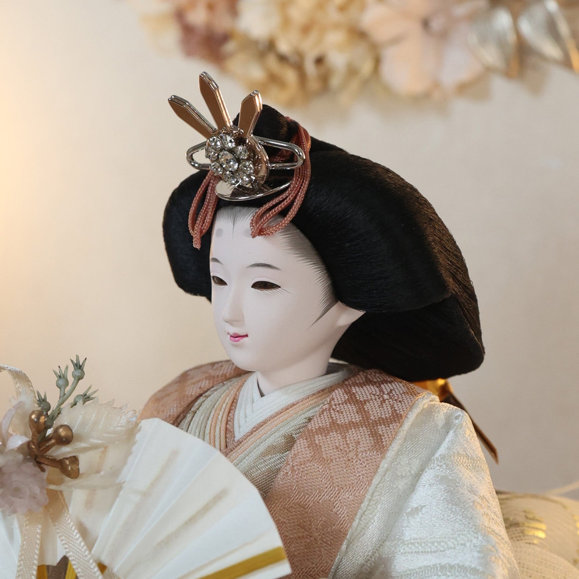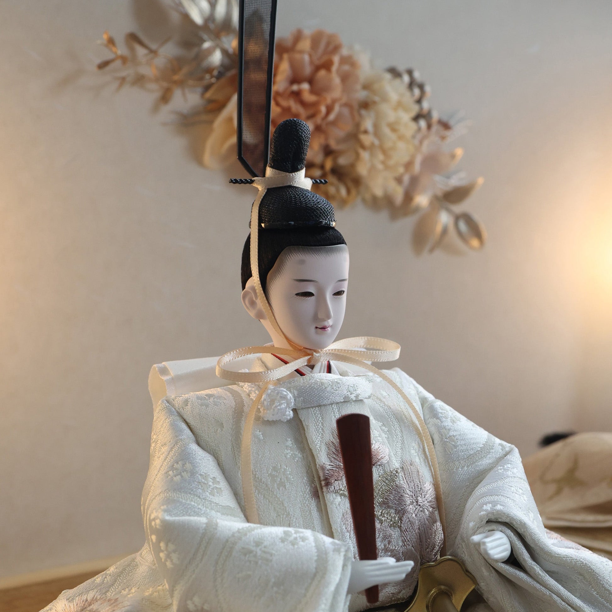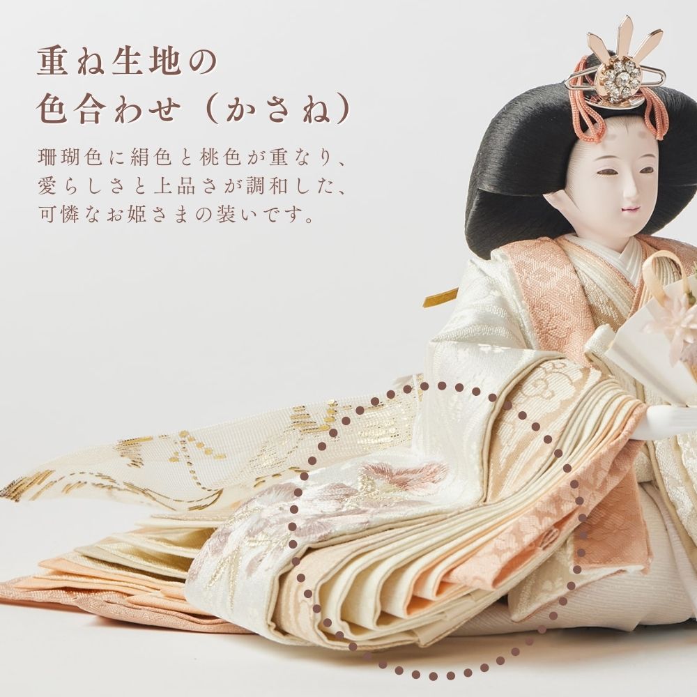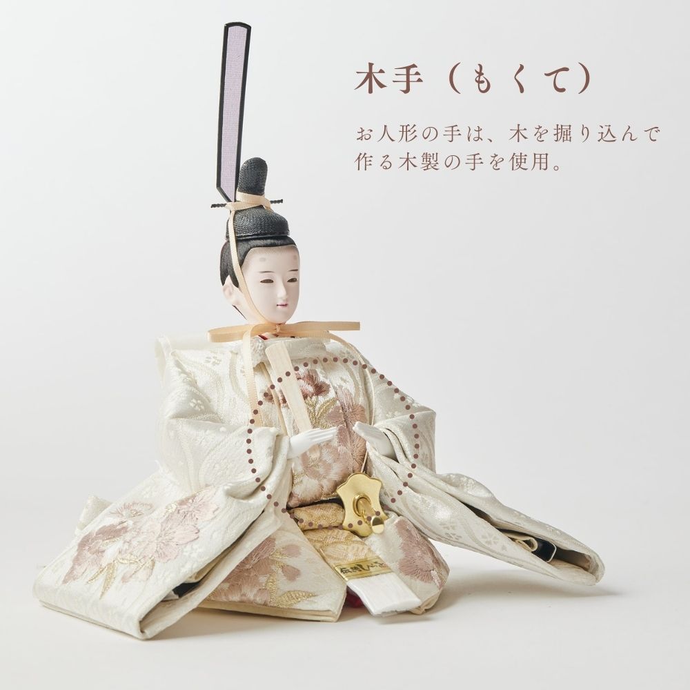 国産の栓(せん)は、美しい木目と温もりある質感が魅力の天然木です。耐久性に優れ、経年とともに味わいを深めます。台座や屏風などに使用することで、自然素材ならではの落ち着いた風合いと上質感を演出し、雛人形全体をより品格ある印象に仕上げます。