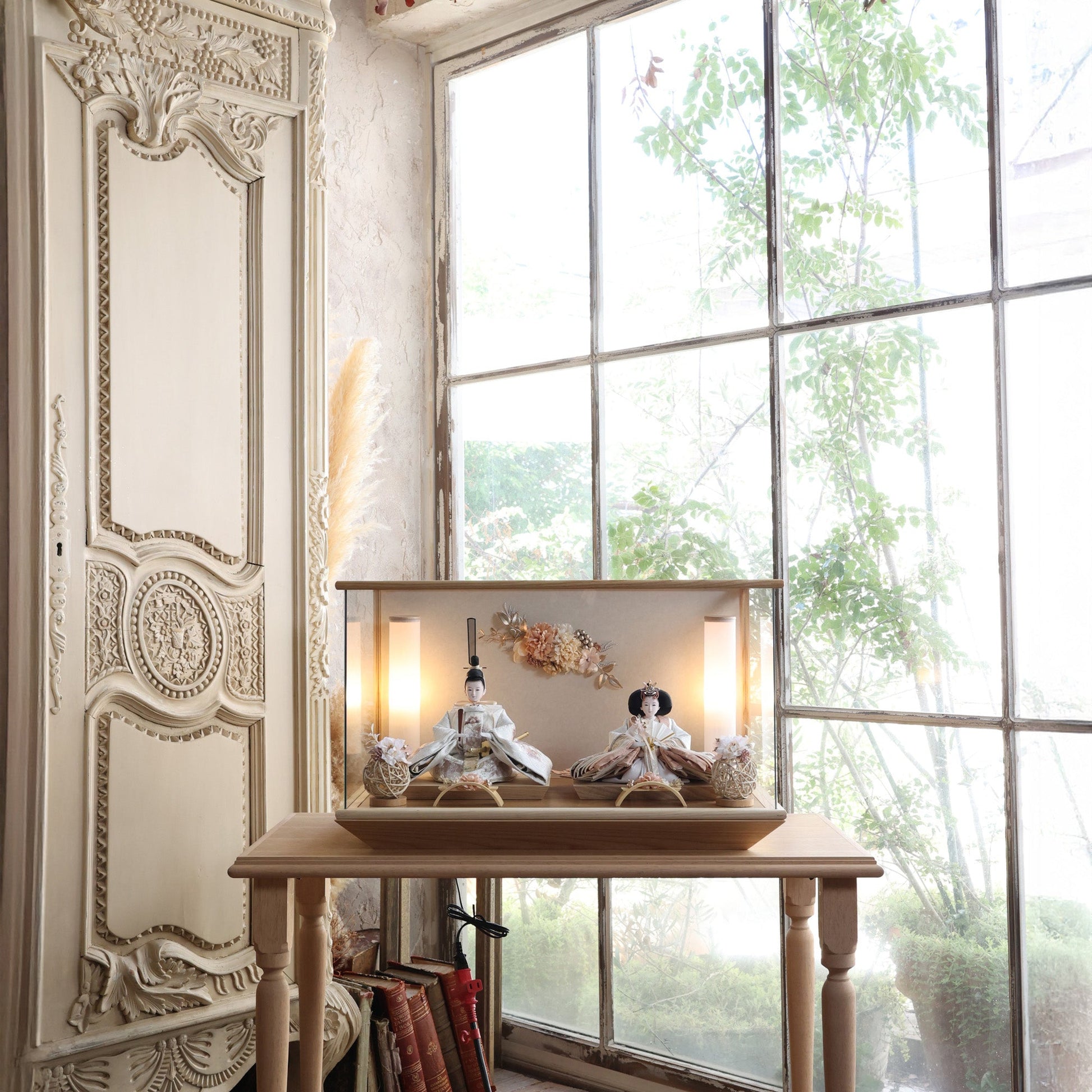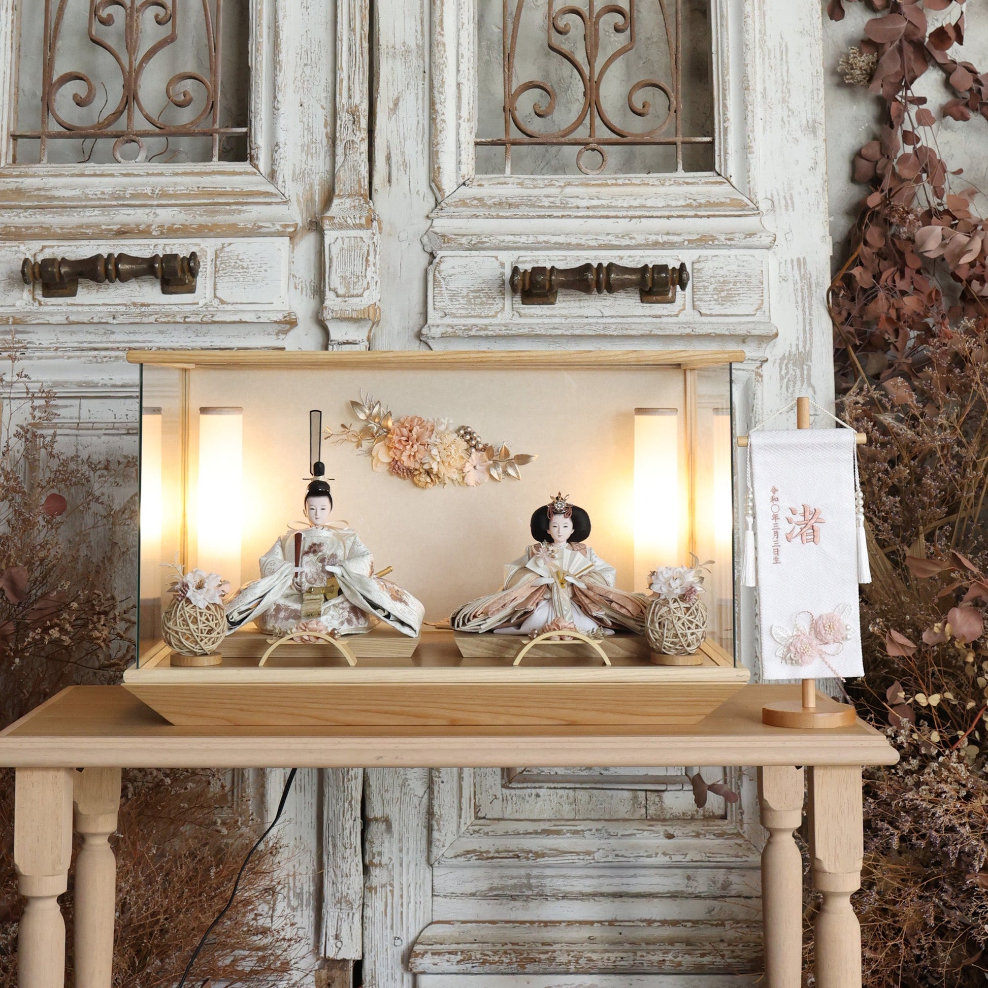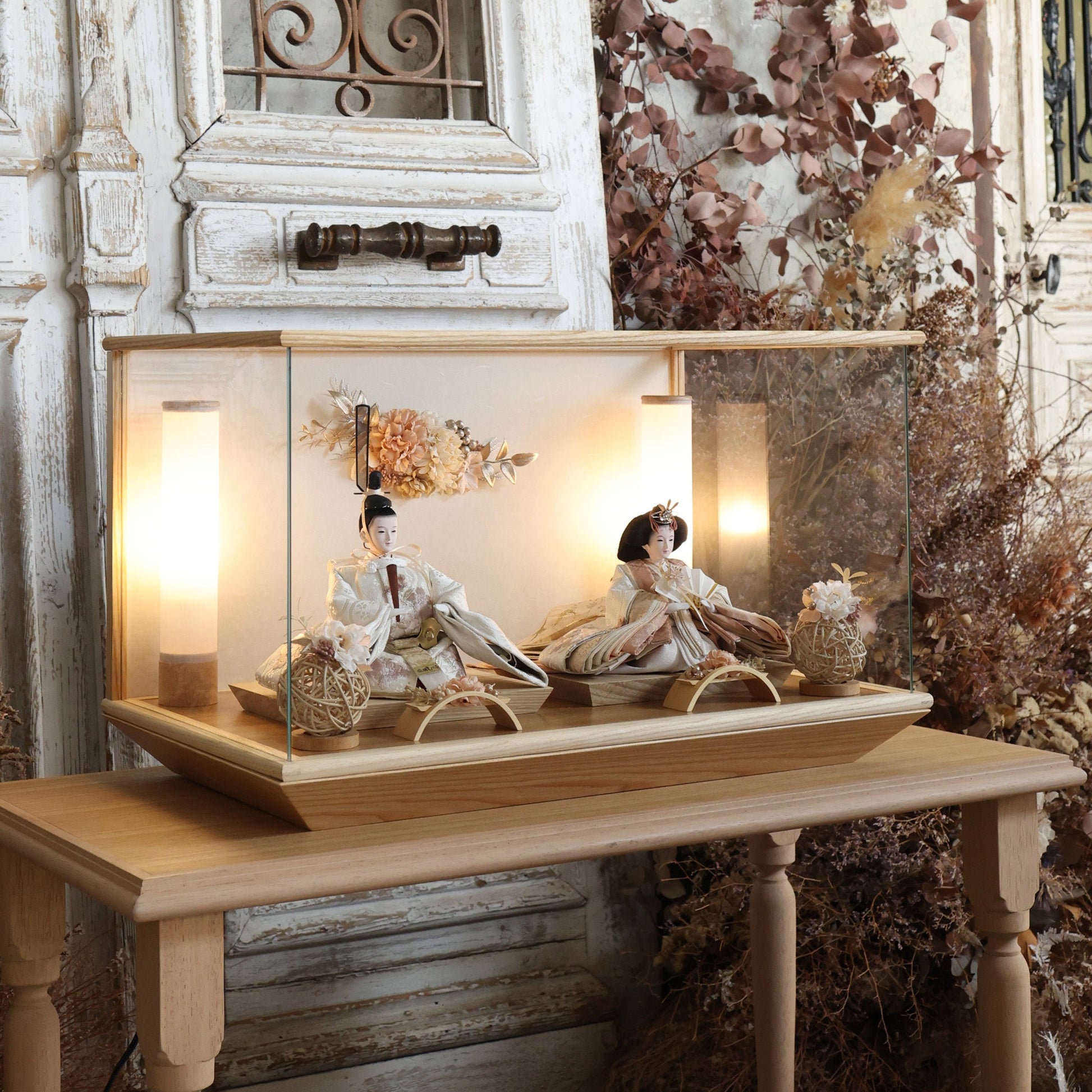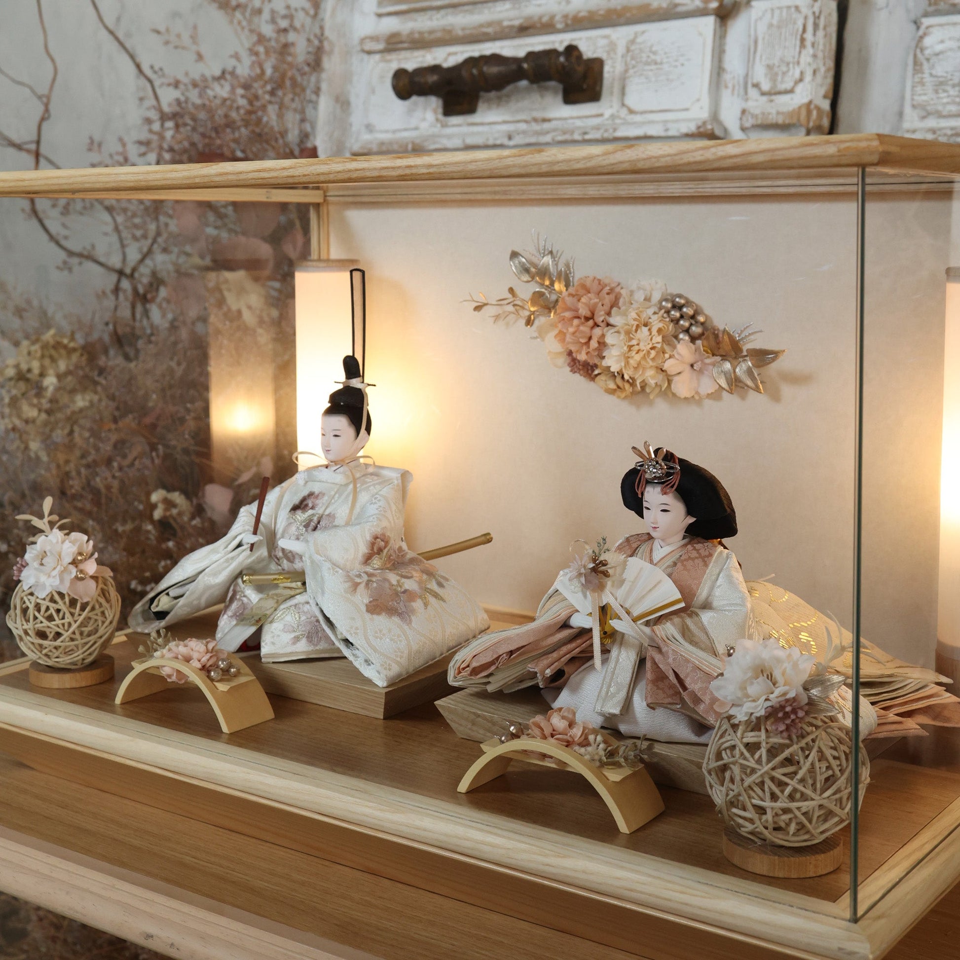 通常2mm厚が一般的な中、当店ではより高品質なAGC製3mmガラスを採用しています。厚みが増すことで強度と安全性が高まり、透明度の高いクリアな美しさを保ちます。大切な雛人形を守りながら、高級感のある見栄えを実現しています。
