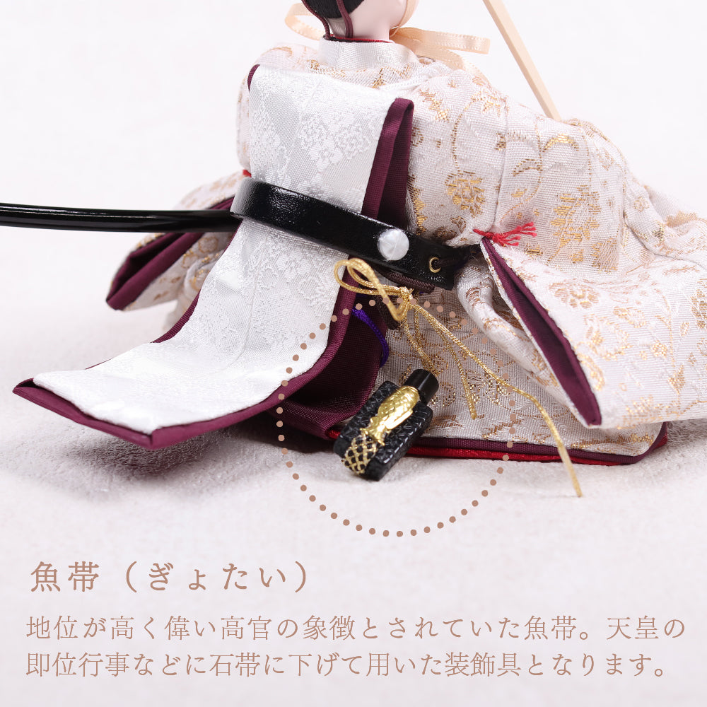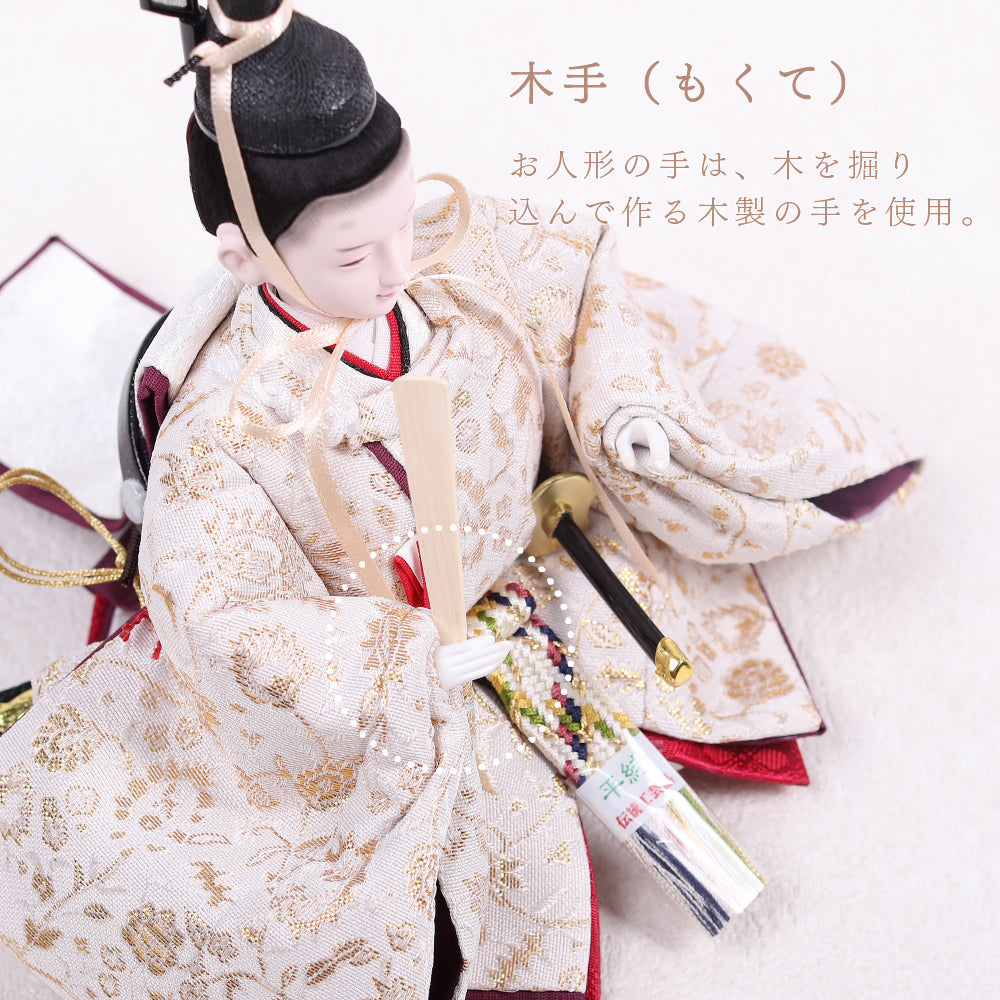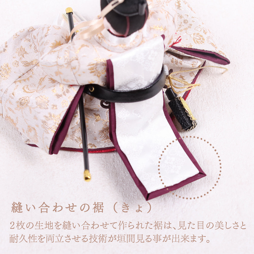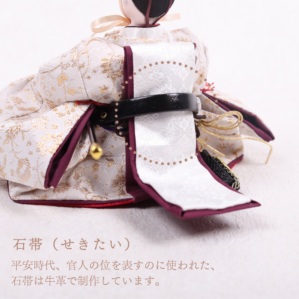 国産の栓(せん)は、美しい木目と温もりある質感が魅力の天然木です。耐久性に優れ、経年とともに味わいを深めます。台座や屏風などに使用することで、自然素材ならではの落ち着いた風合いと上質感を演出し、雛人形全体をより品格ある印象に仕上げます。