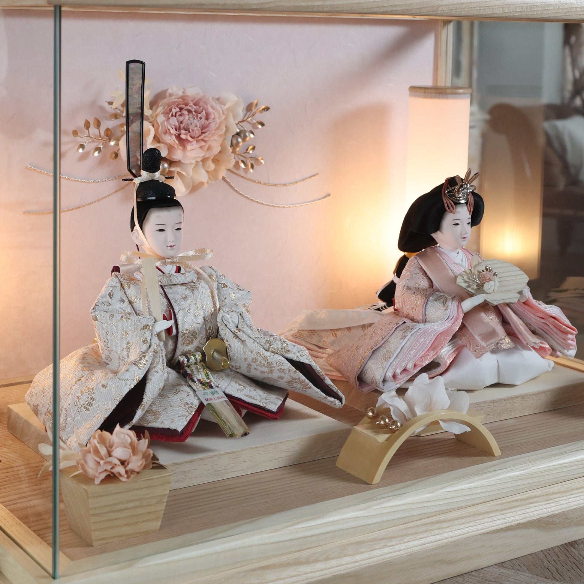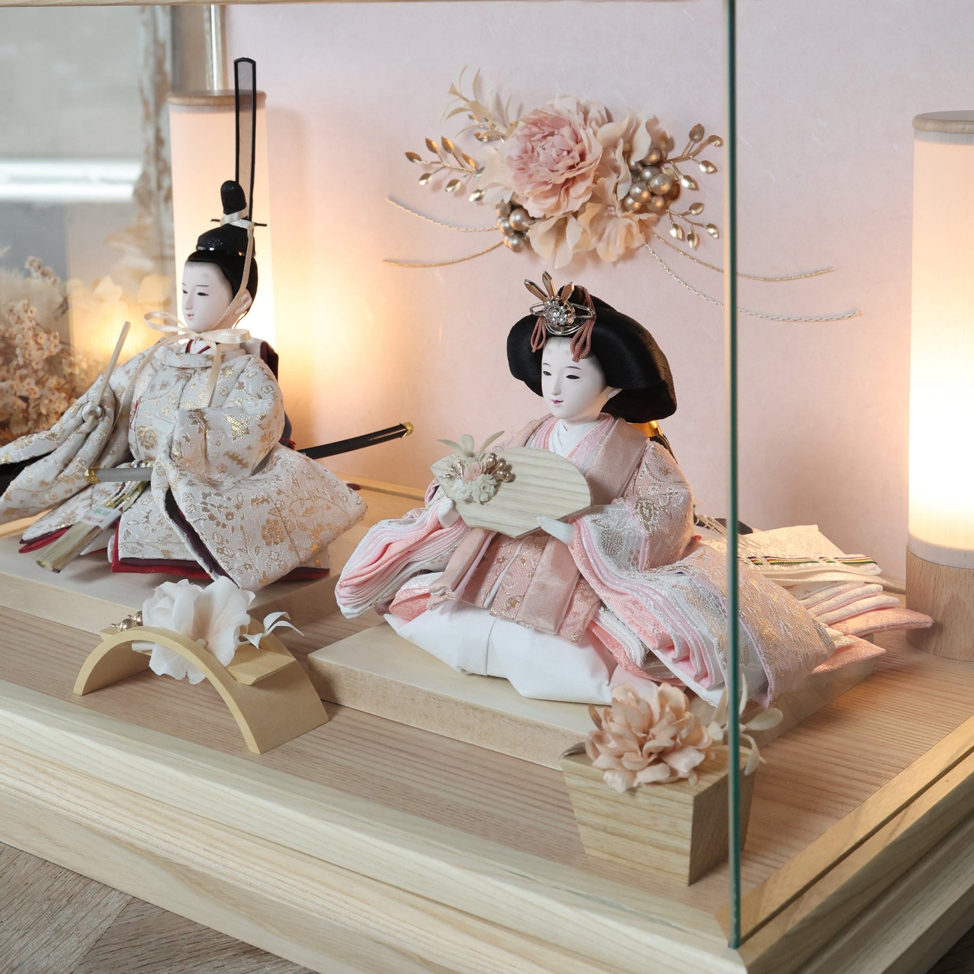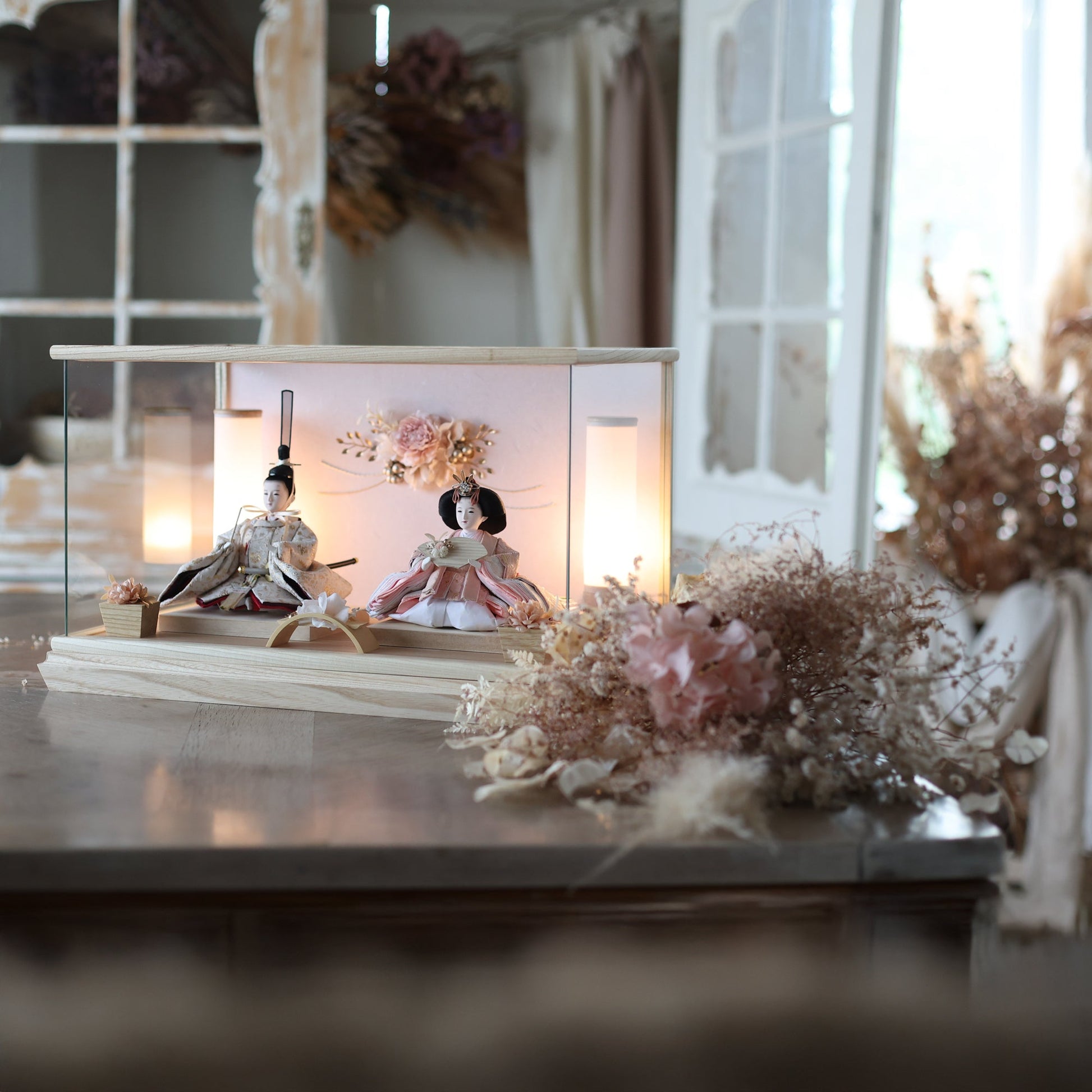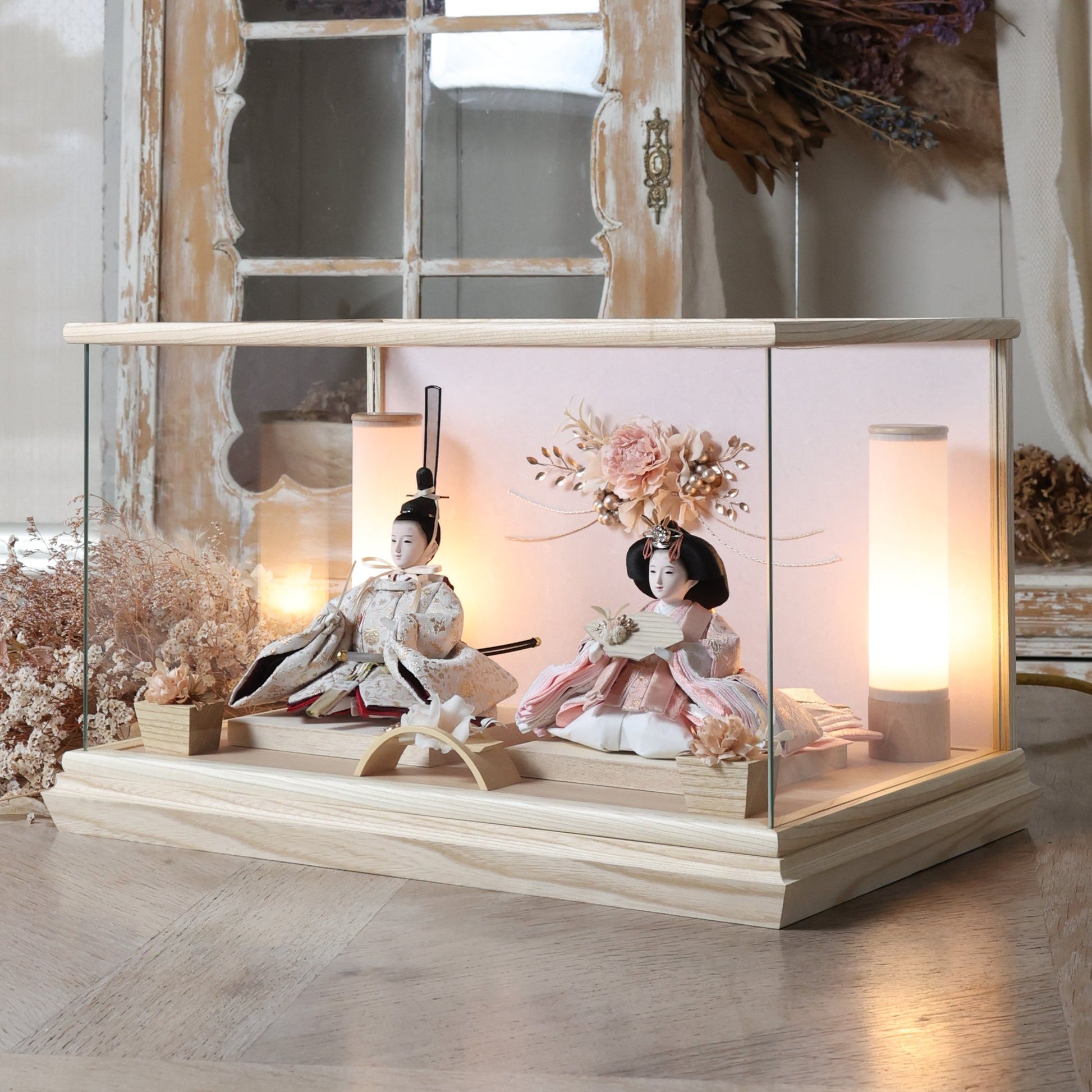 通常2mm厚が一般的な中、当店ではより高品質なAGC製3mmガラスを採用しています。厚みが増すことで強度と安全性が高まり、透明度の高いクリアな美しさを保ちます。大切な雛人形を守りながら、高級感のある見栄えを実現しています。