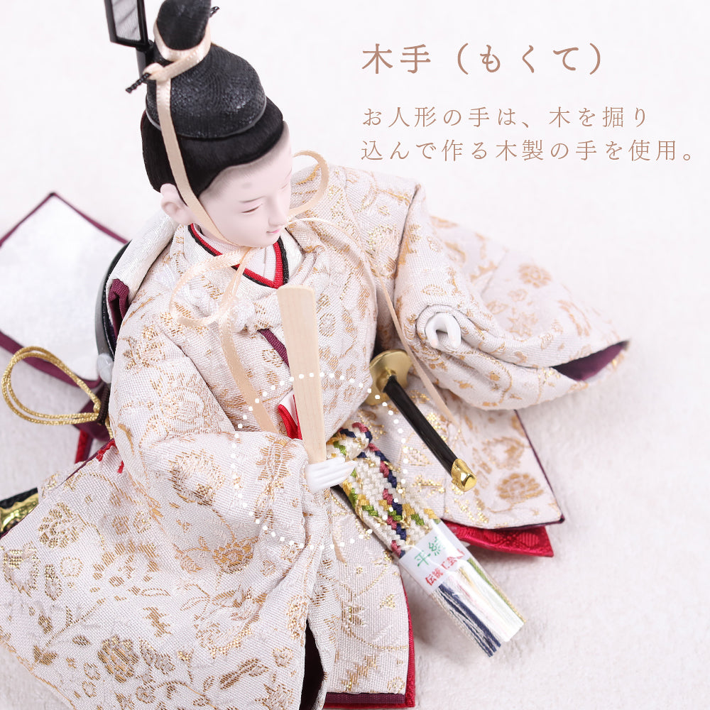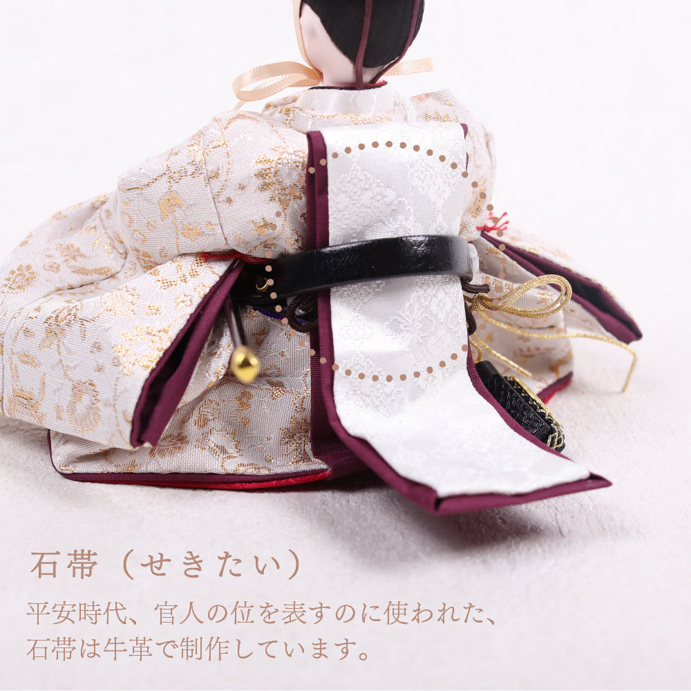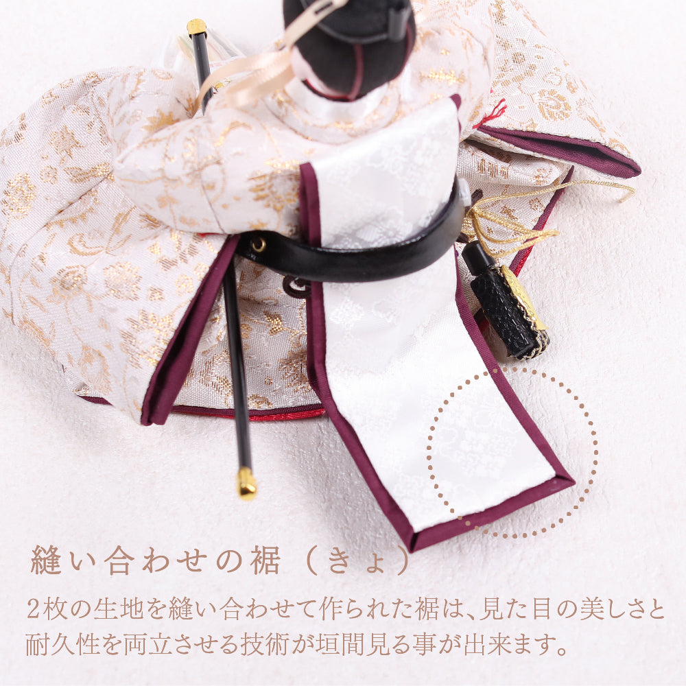 国産の栓(せん)は、美しい木目と温もりある質感が魅力の天然木です。耐久性に優れ、経年とともに味わいを深めます。台座や屏風などに使用することで、自然素材ならではの落ち着いた風合いと上質感を演出し、雛人形全体をより品格ある印象に仕上げます。