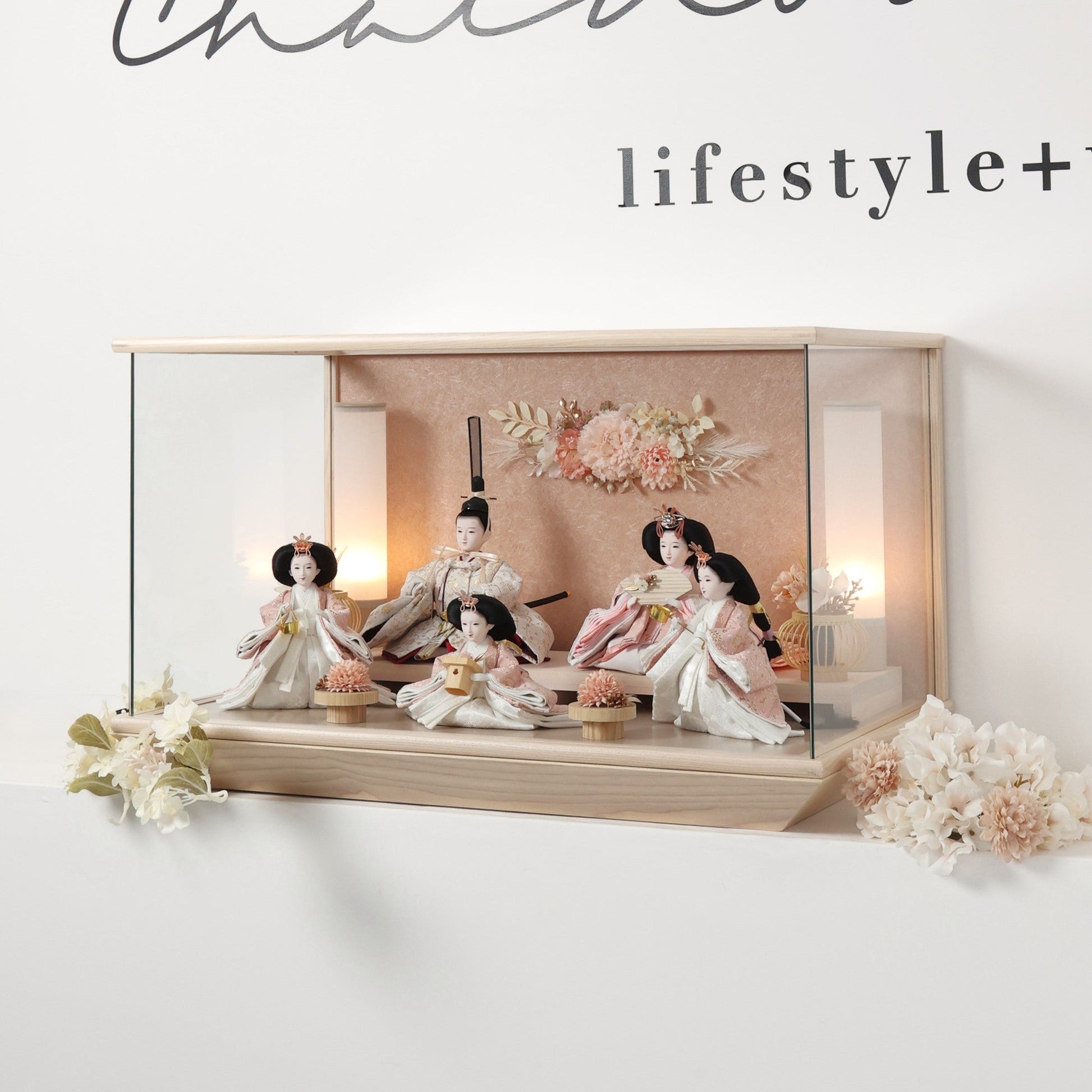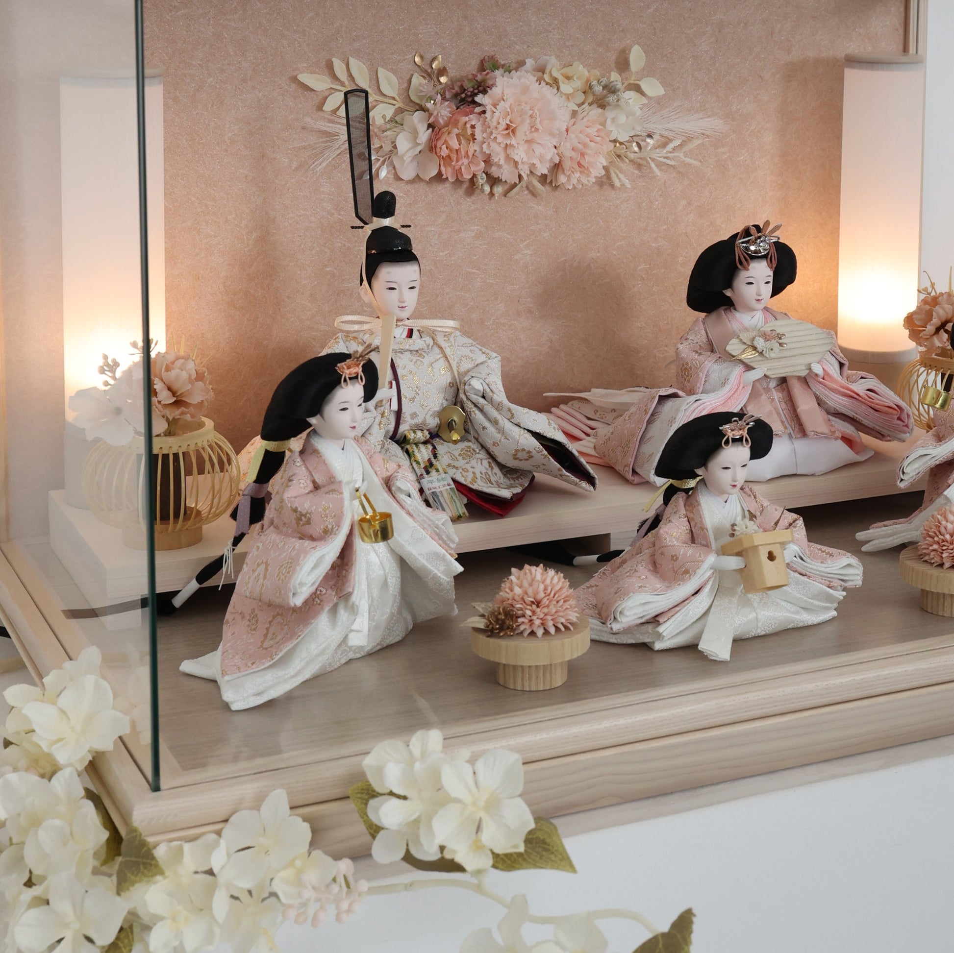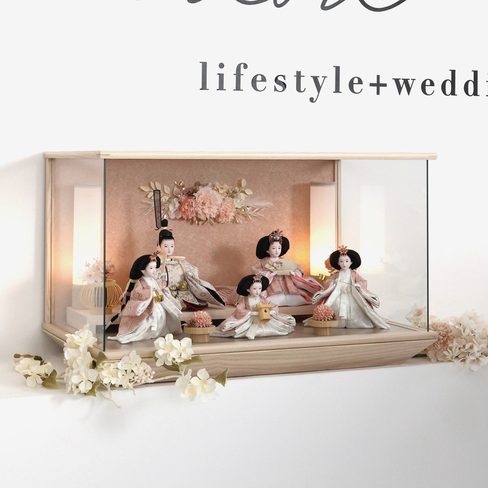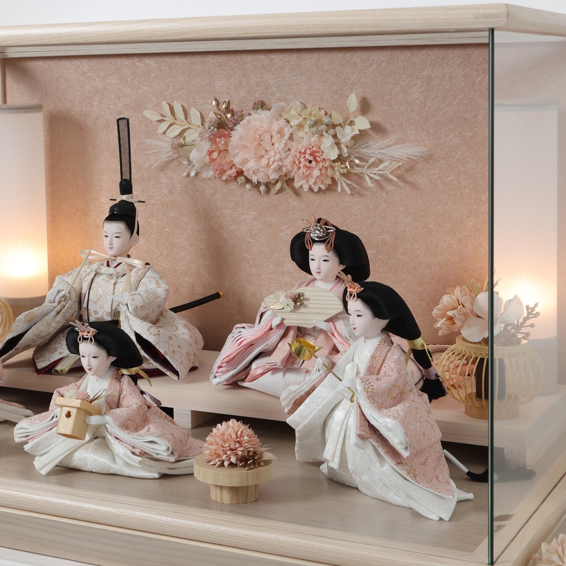 通常2mm厚が一般的な中、当店ではより高品質なAGC製3mmガラスを採用しています。厚みが増すことで強度と安全性が高まり、透明度の高いクリアな美しさを保ちます。大切な雛人形を守りながら、高級感のある見栄えを実現しています。