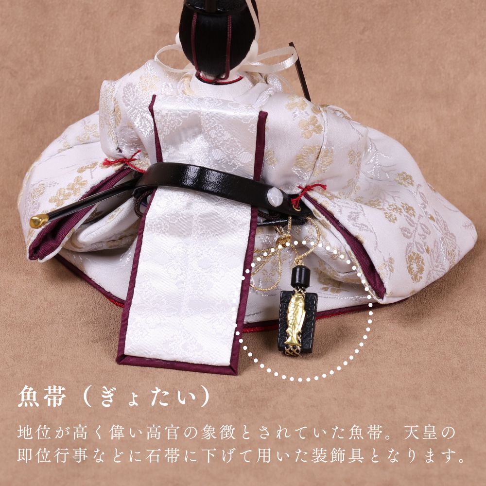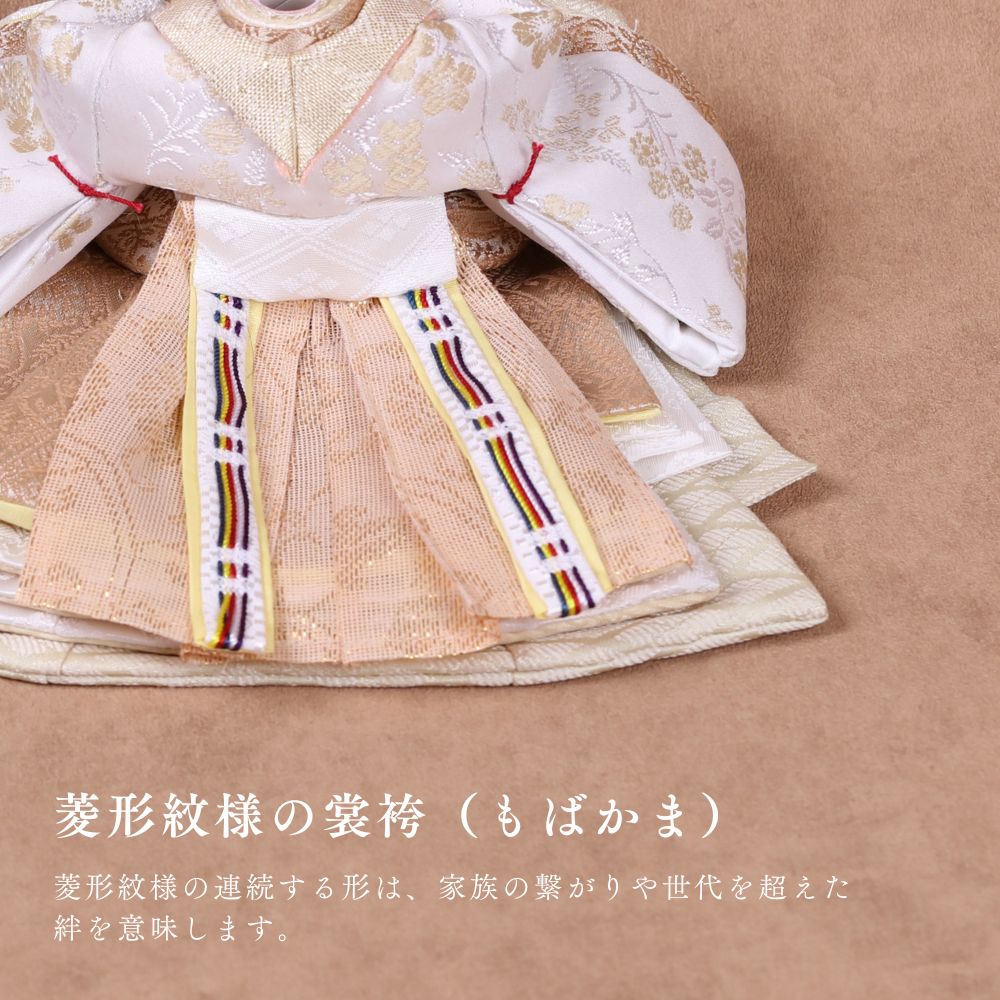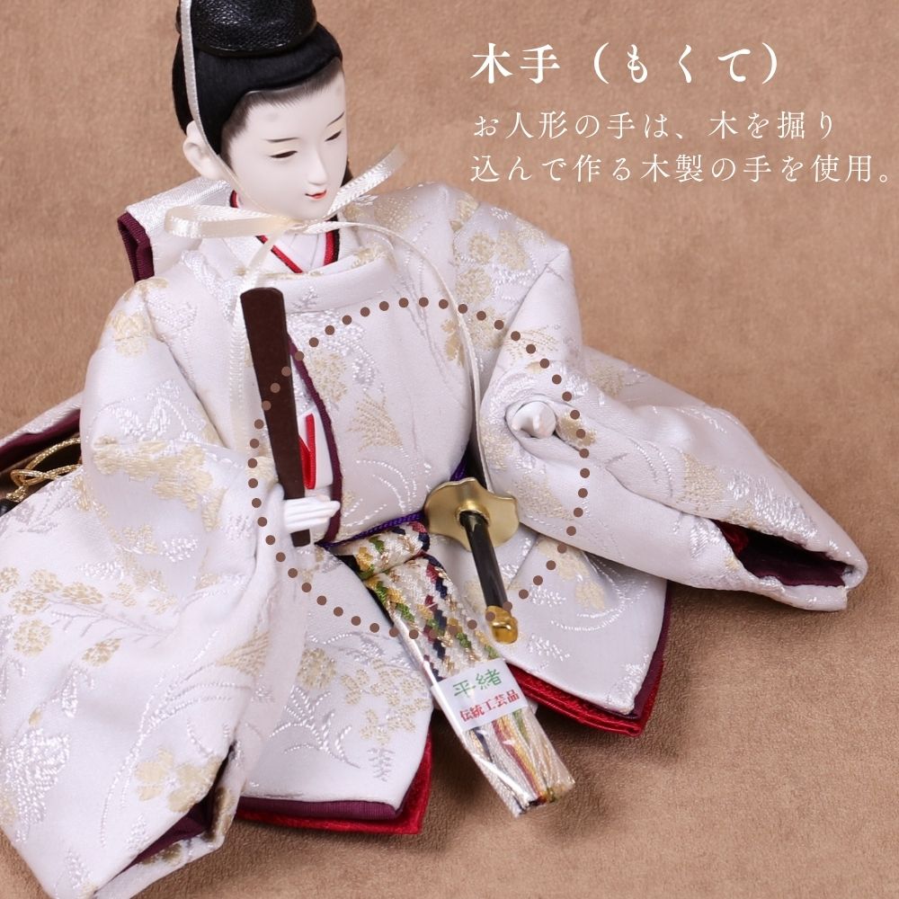 国産の栓(せん)は、美しい木目と温もりある質感が魅力の天然木です。耐久性に優れ、経年とともに味わいを深めます。台座や屏風などに使用することで、自然素材ならではの落ち着いた風合いと上質感を演出し、雛人形全体をより品格ある印象に仕上げます。