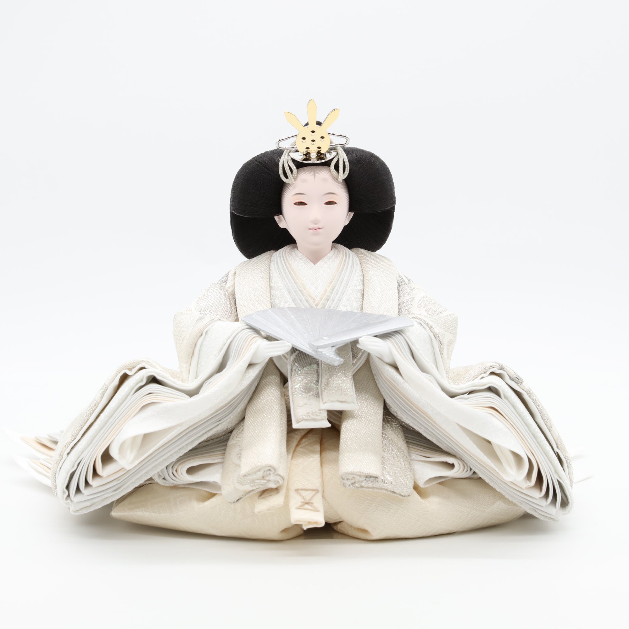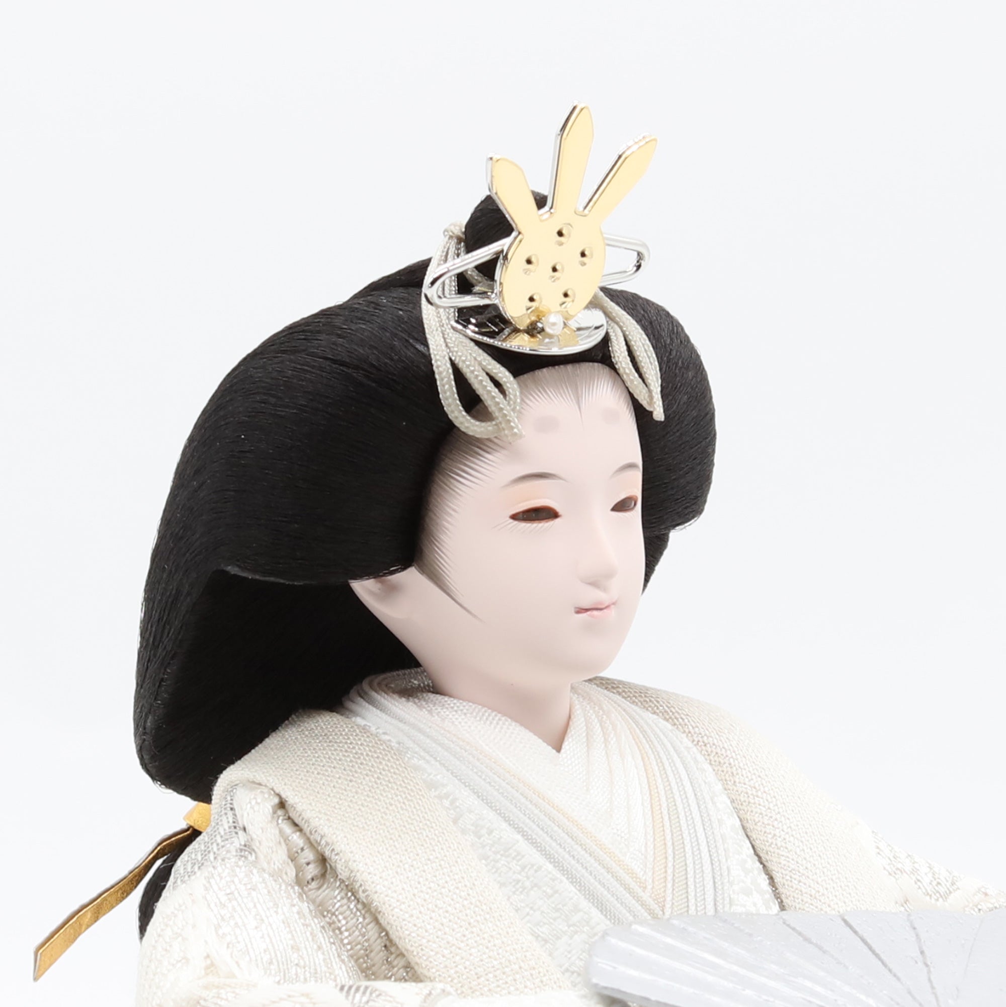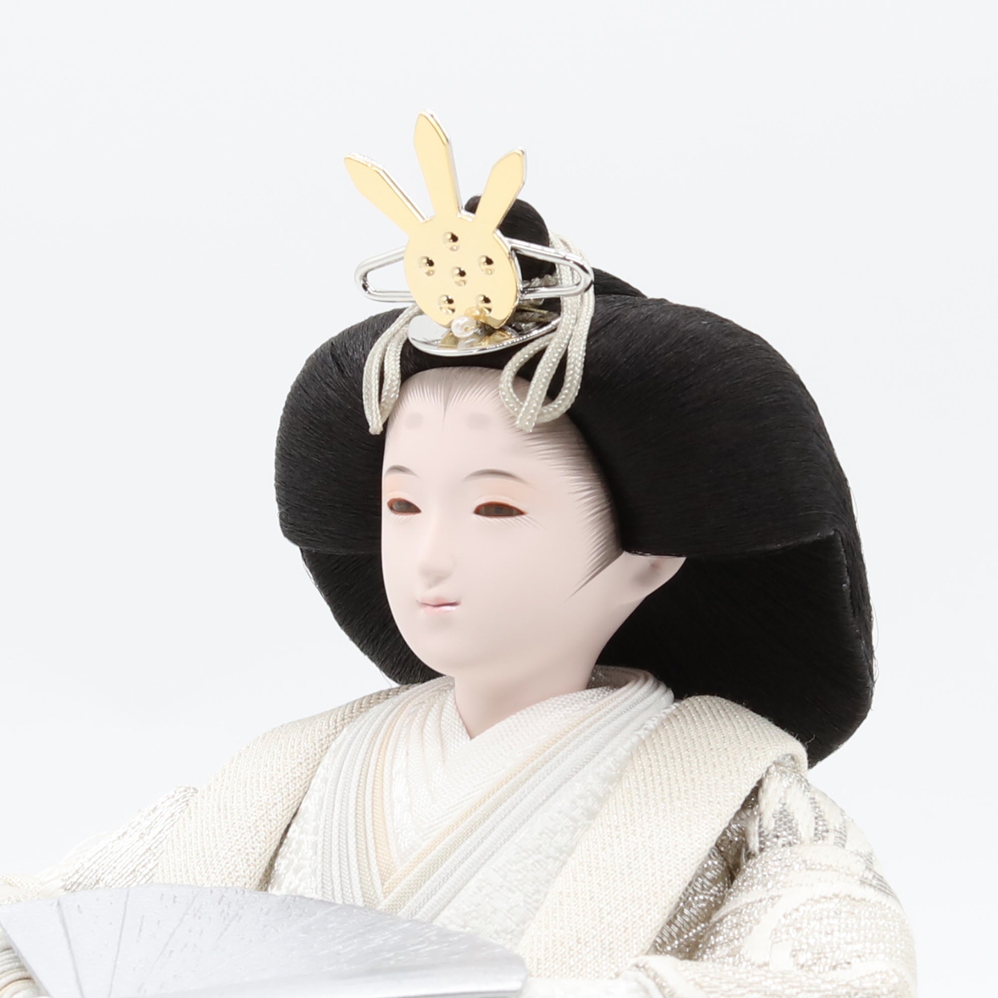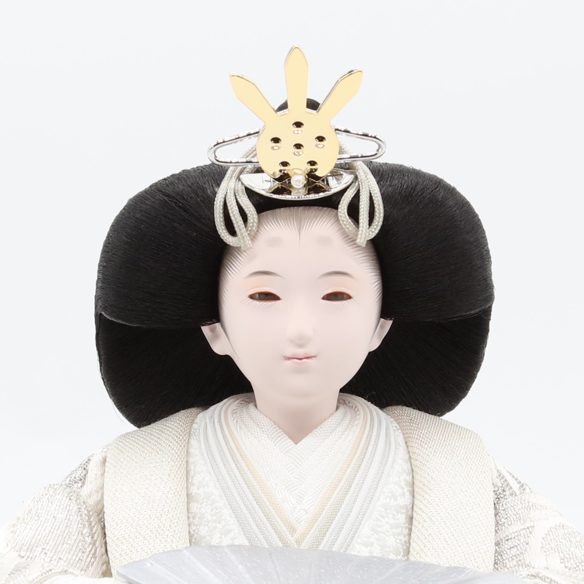 熊倉基安の作品「sumire」は、パールのような上品な輝きと、優雅さを演出しています。洗練された表情と品格ある佇まいが、空間全体を格調高く彩ります。「お人形は顔がいのち」と言われるように、熊倉基安の技術と感性が一体となった逸品で、伝統を大切にしながらも新しい美しさを追求するその姿勢が、ひときわの魅力を放っています。