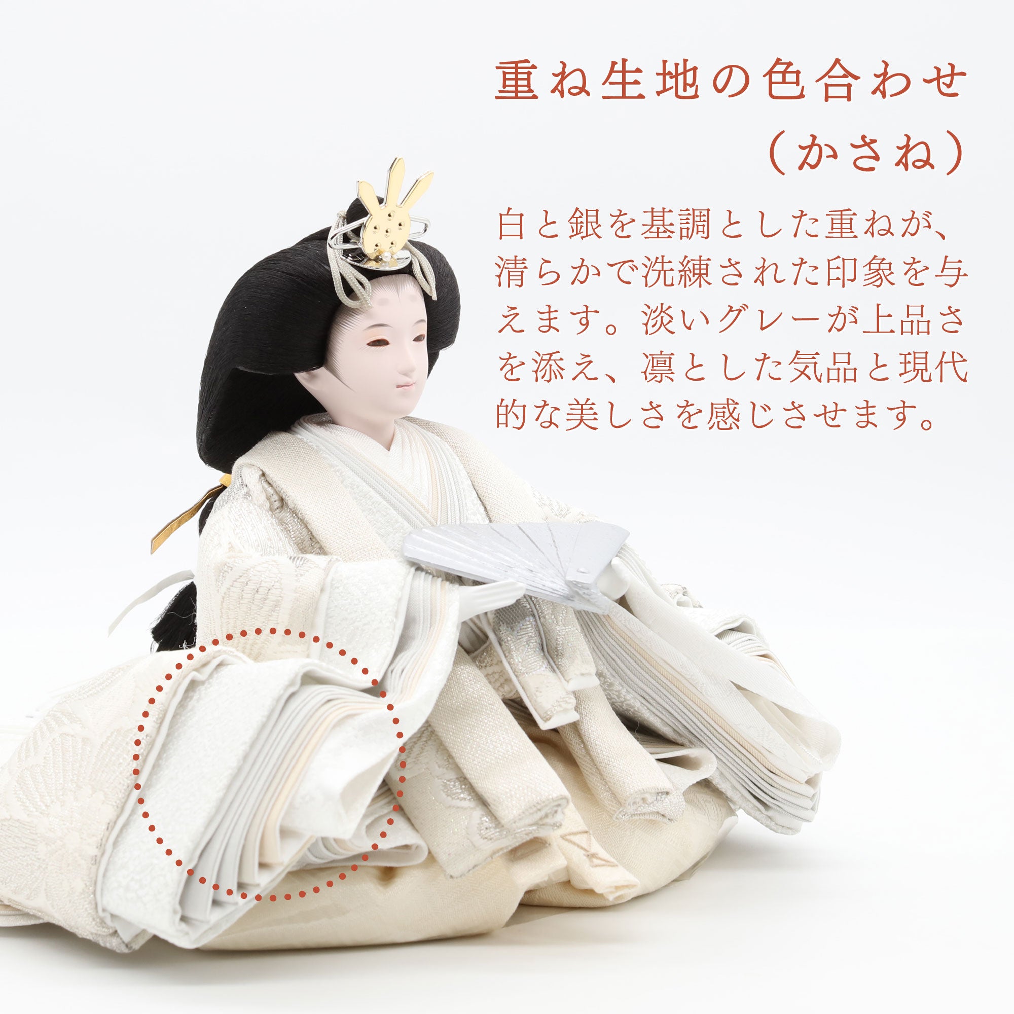 羽はたき・白手袋・クロスの3点をセットにしました。繊細な人形のホコリをやさしく払い、仕上げまで丁寧に。大切なお人形の美しさを、長く守ってくれます。