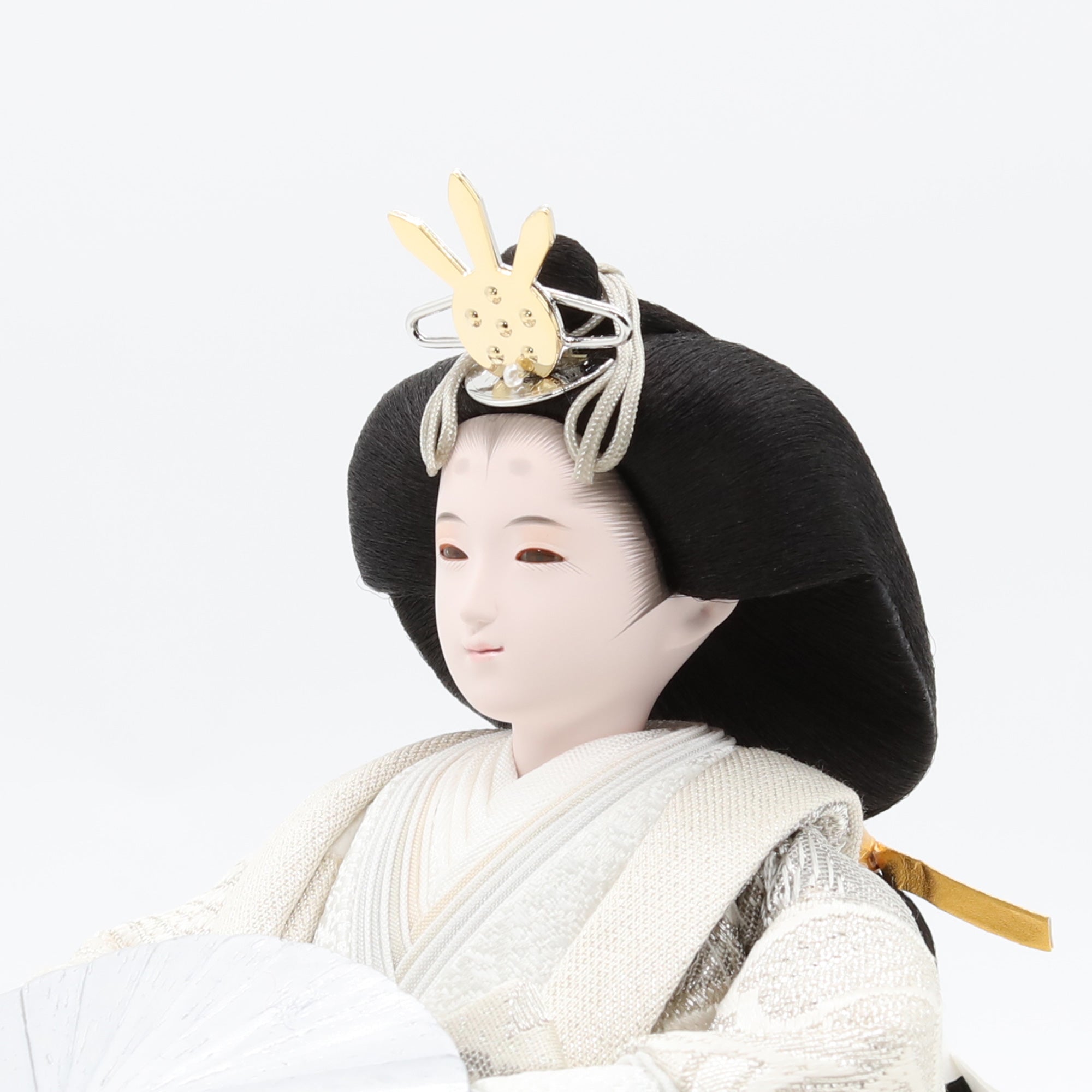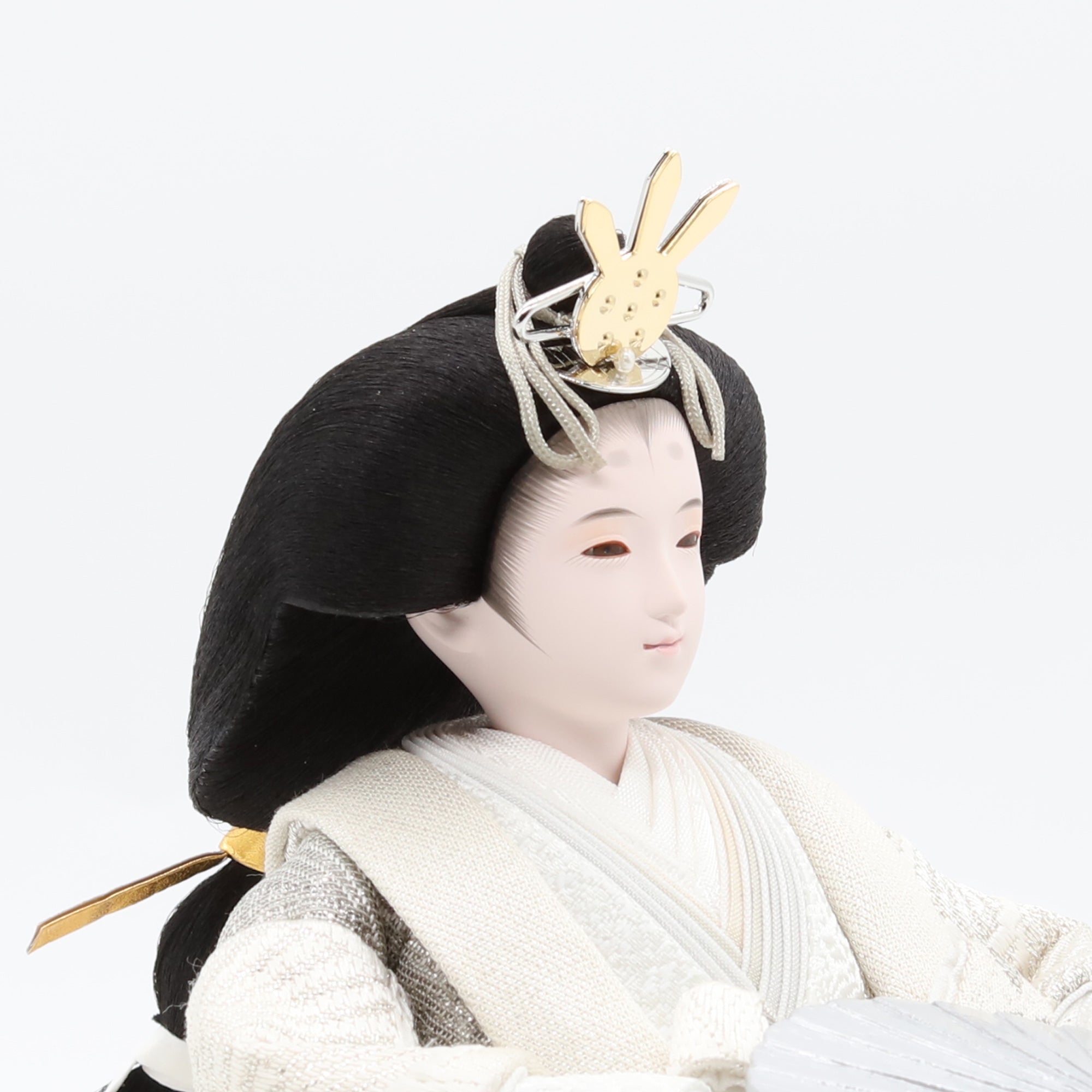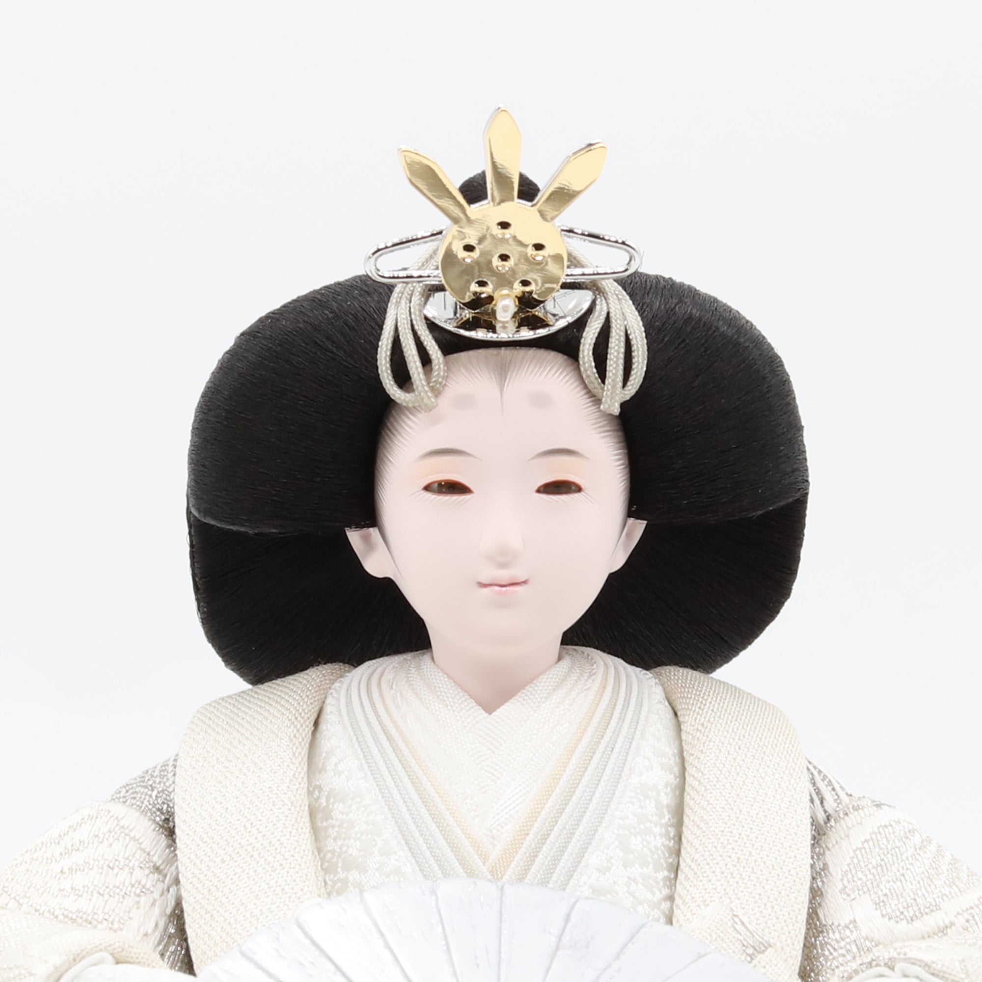 熊倉基安の作品「sumire」は、パールのような上品な輝きと、優雅さを演出しています。洗練された表情と品格ある佇まいが、空間全体を格調高く彩ります。「お人形は顔がいのち」と言われるように、熊倉基安の技術と感性が一体となった逸品で、伝統を大切にしながらも新しい美しさを追求するその姿勢が、ひときわの魅力を放っています。