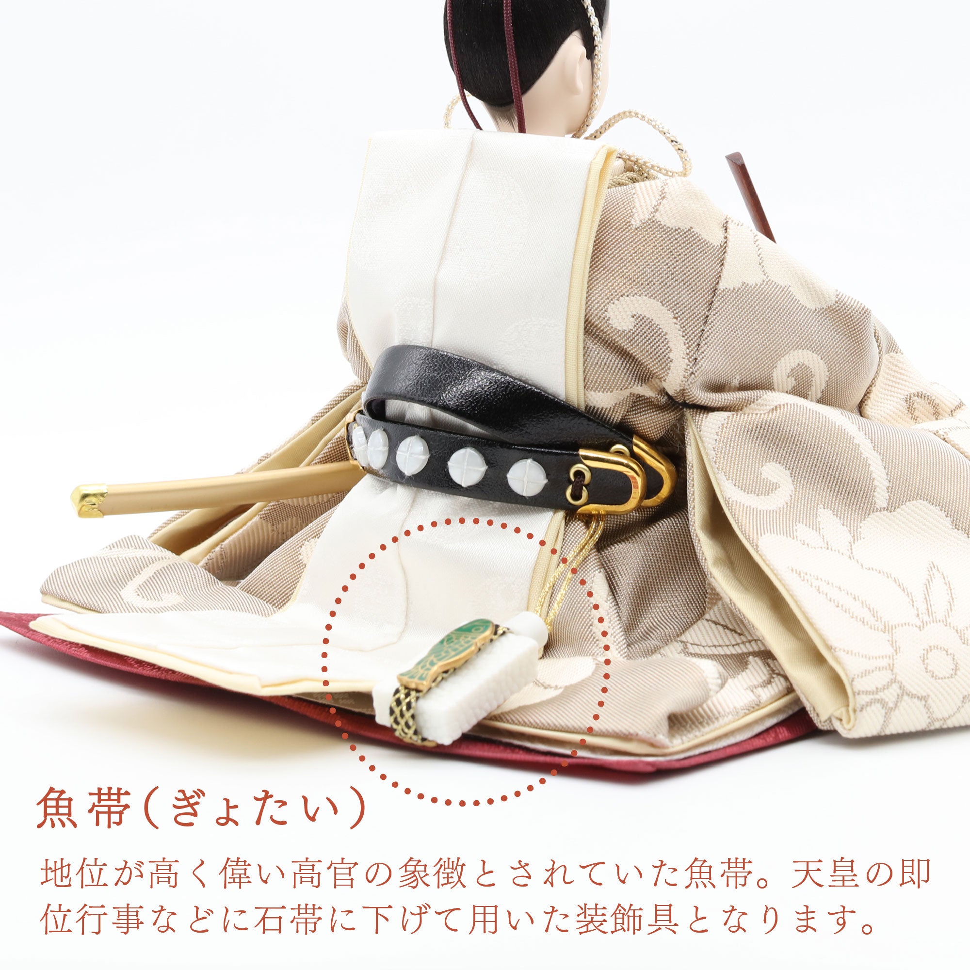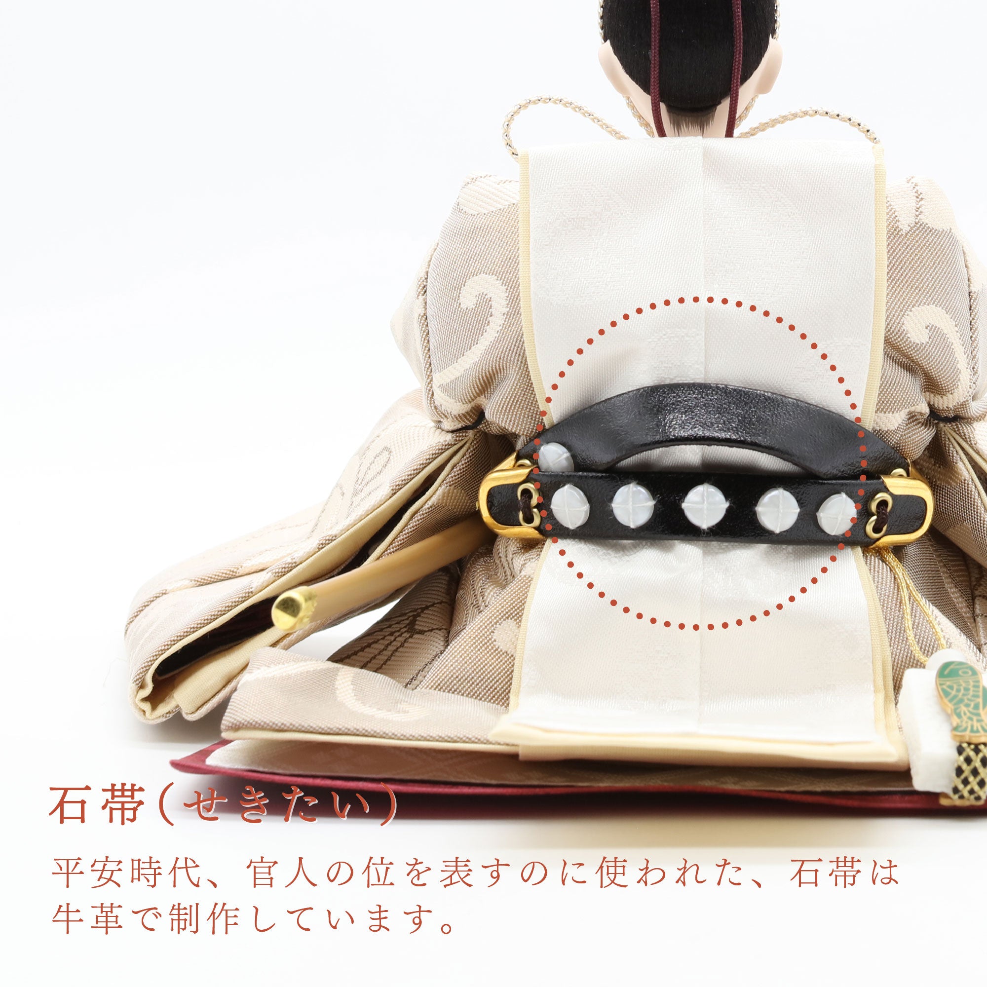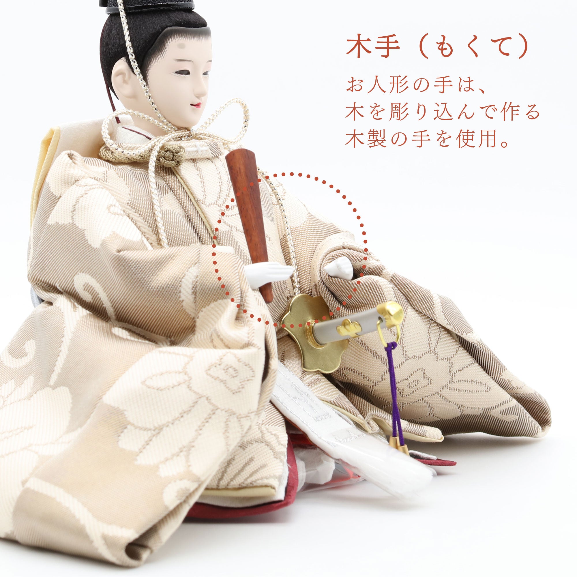 国産の栓(せん)は、美しい木目と温もりある質感が魅力の天然木です。耐久性に優れ、経年とともに味わいを深めます。台座や屏風などに使用することで、自然素材ならではの落ち着いた風合いと上質感を演出し、雛人形全体をより品格ある印象に仕上げます。