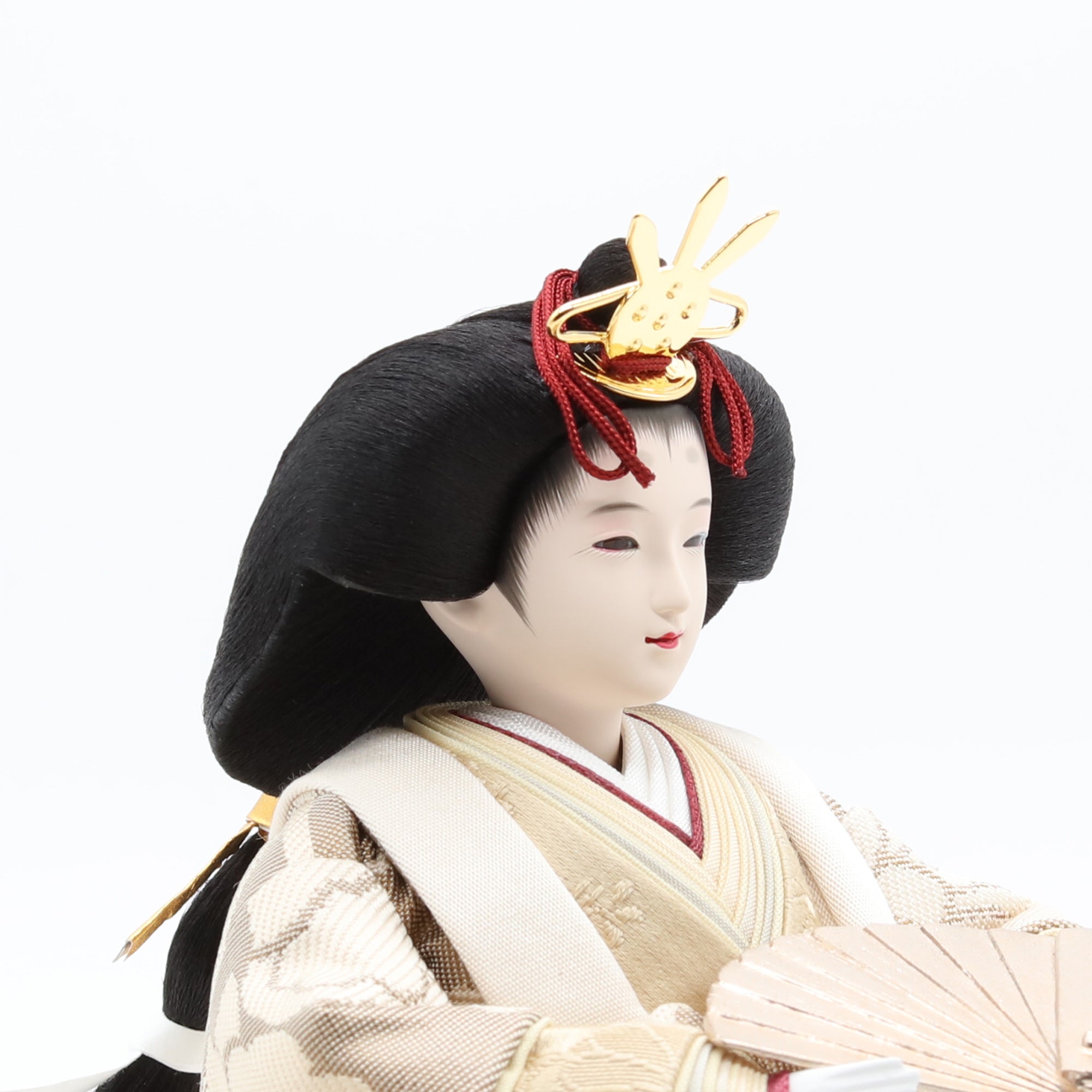 スッとした細身の輪郭に濃紅の化粧を施し、現代的な美しさと古典雅を融合。凛とした気品を感じさせるお顔です。