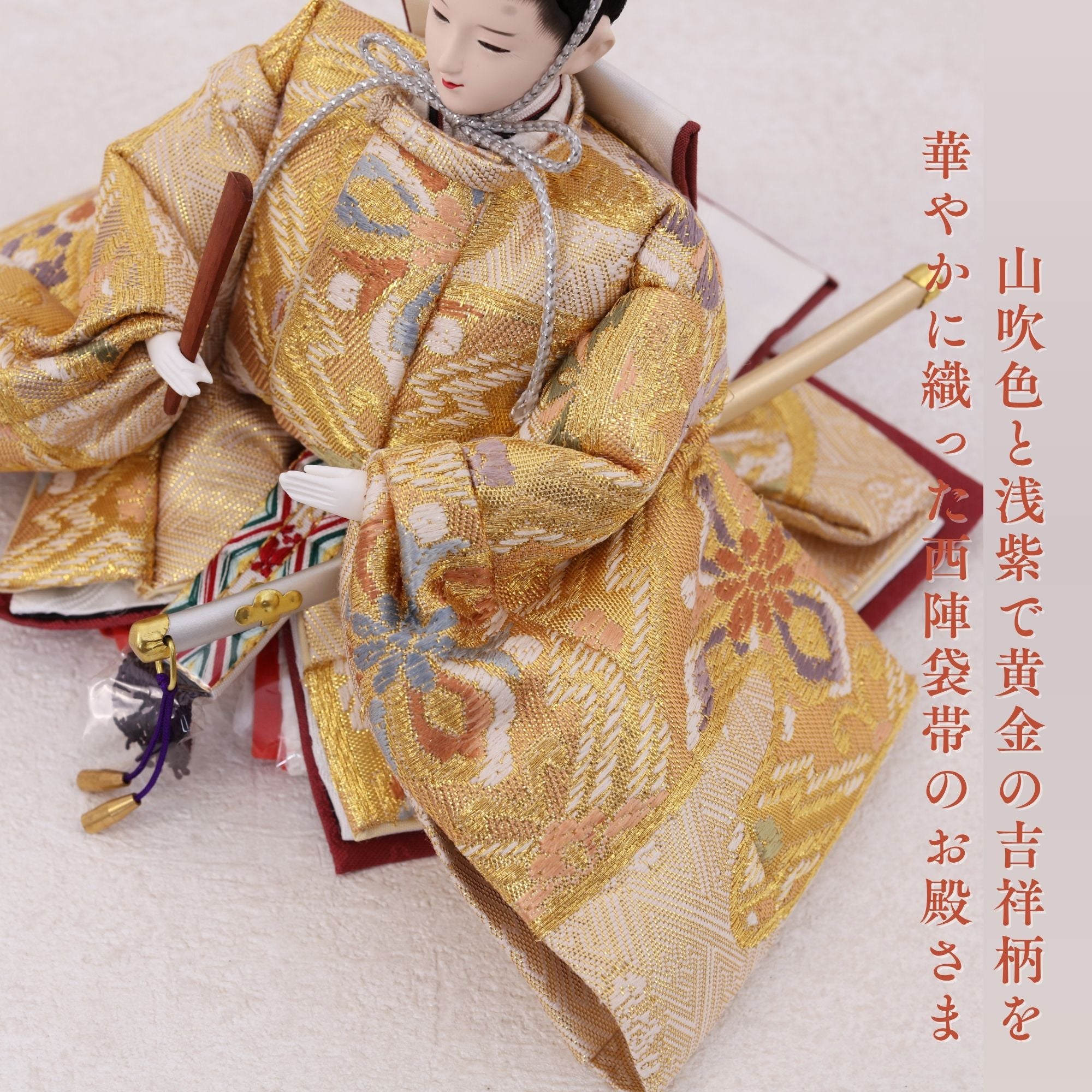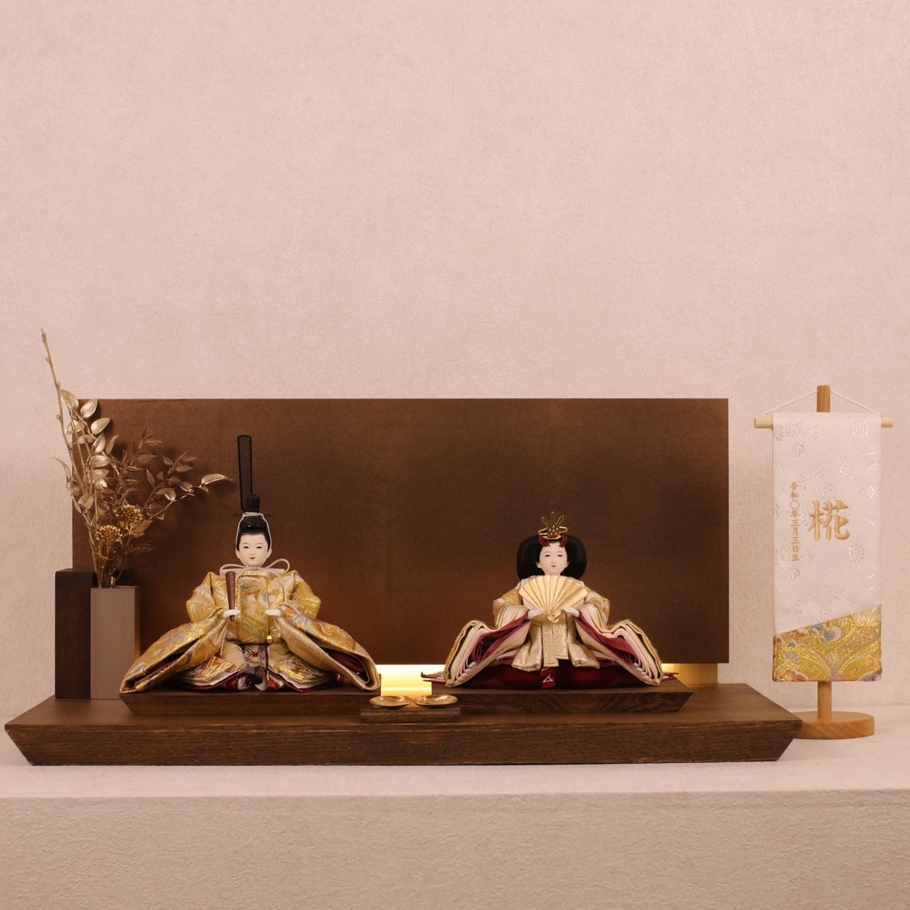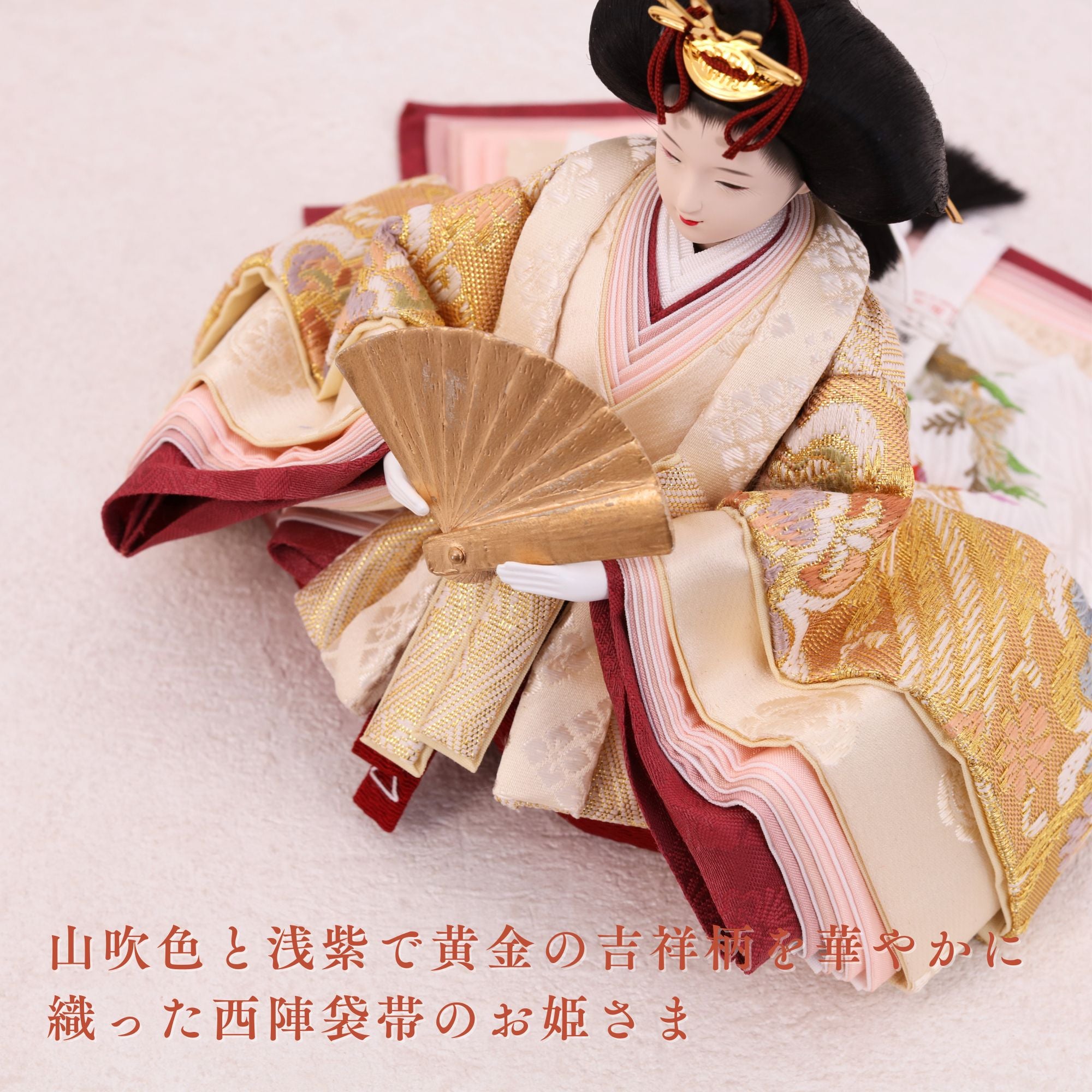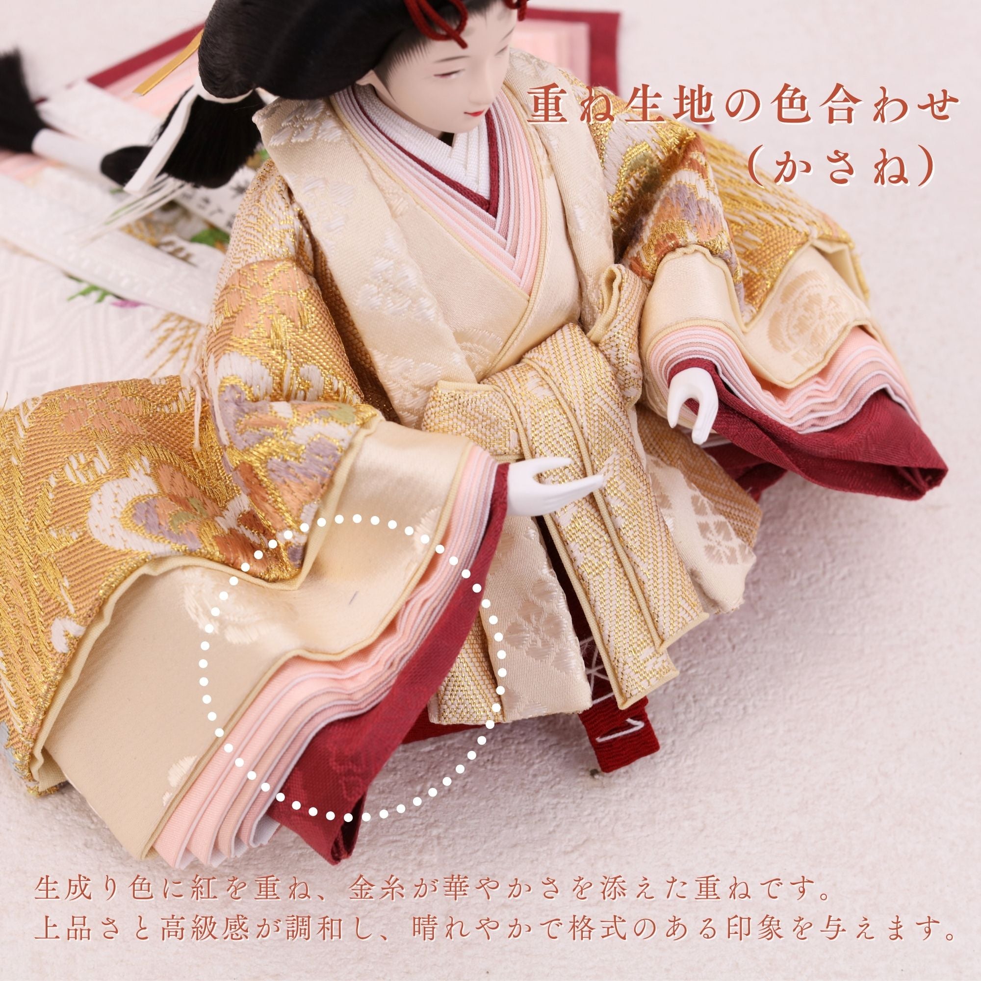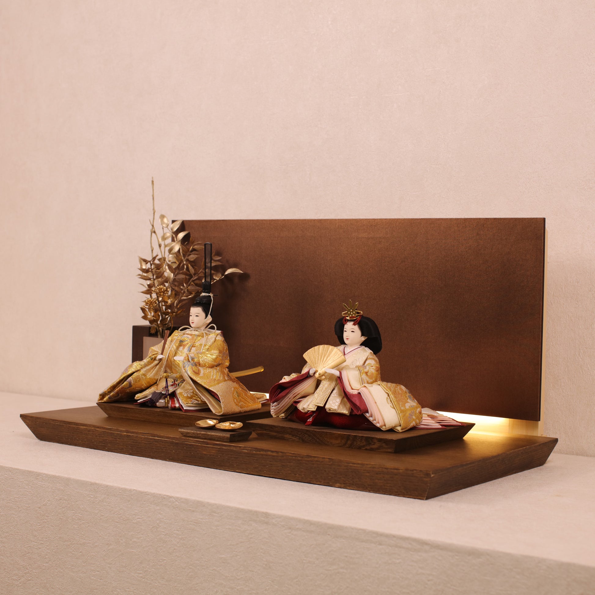 箔押しのお屏風は光を受けて輝き、お雛様の姿をそっと映し出します。
