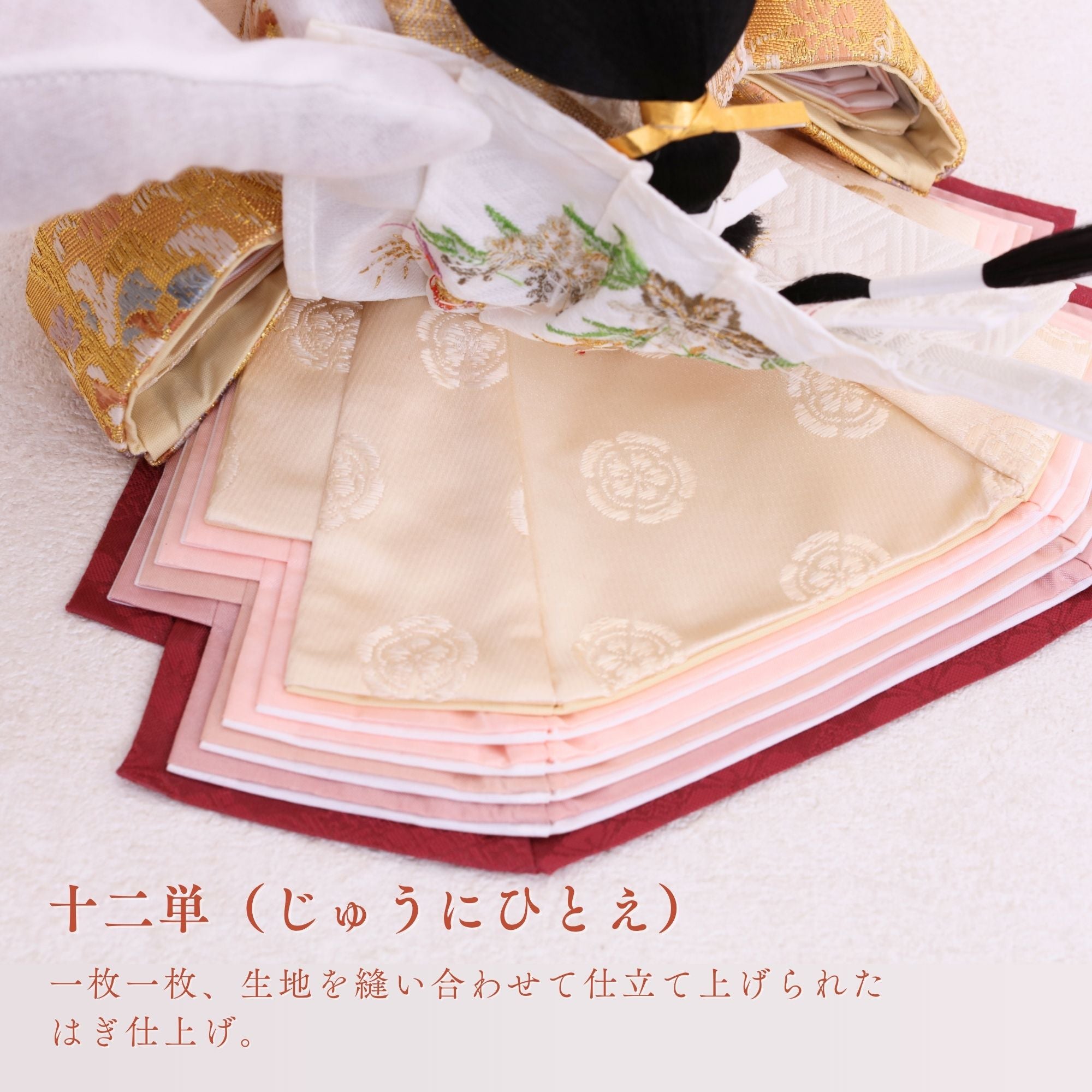 国産の栓(せん)は、美しい木目と温もりある質感が魅力の天然木です。耐久性に優れ、経年とともに味わいを醸し出します。台座や屏風などに使用することで、自然素材ならではの落ち着いた風合いと上質感を演出し、雛人形全体をより品格ある印象に仕上げます。