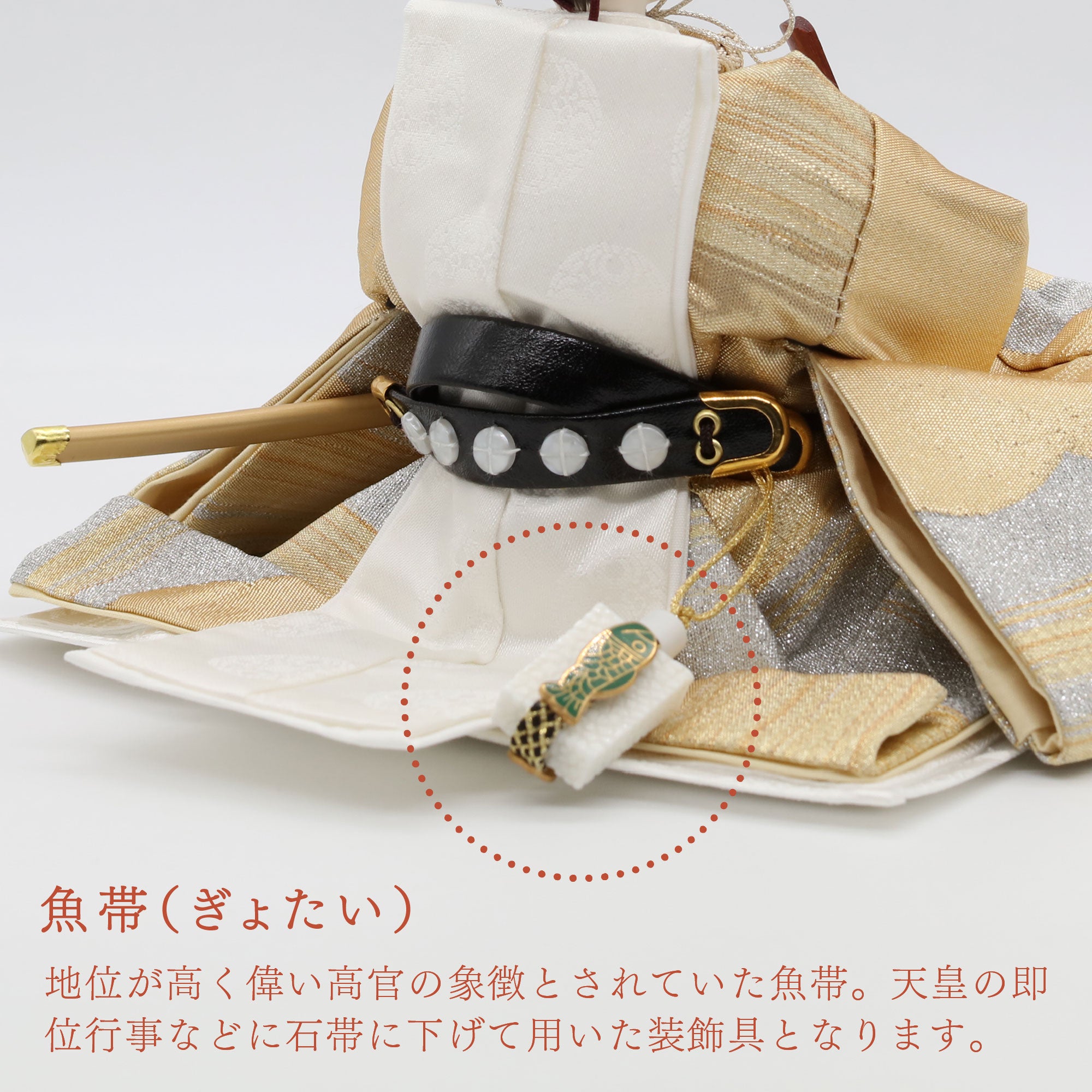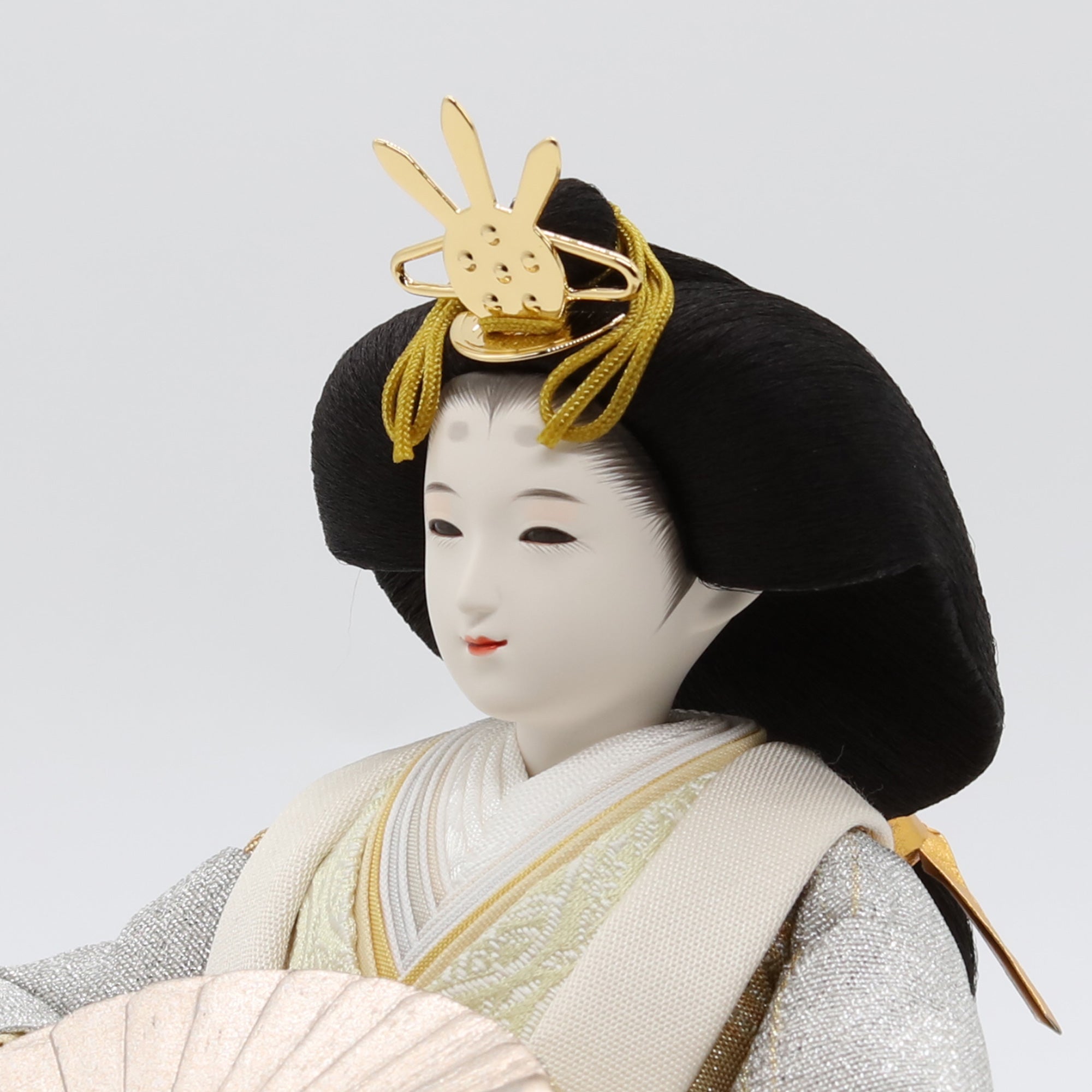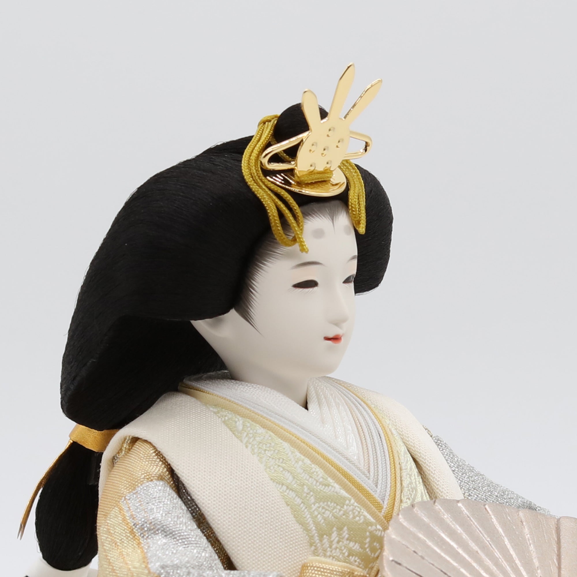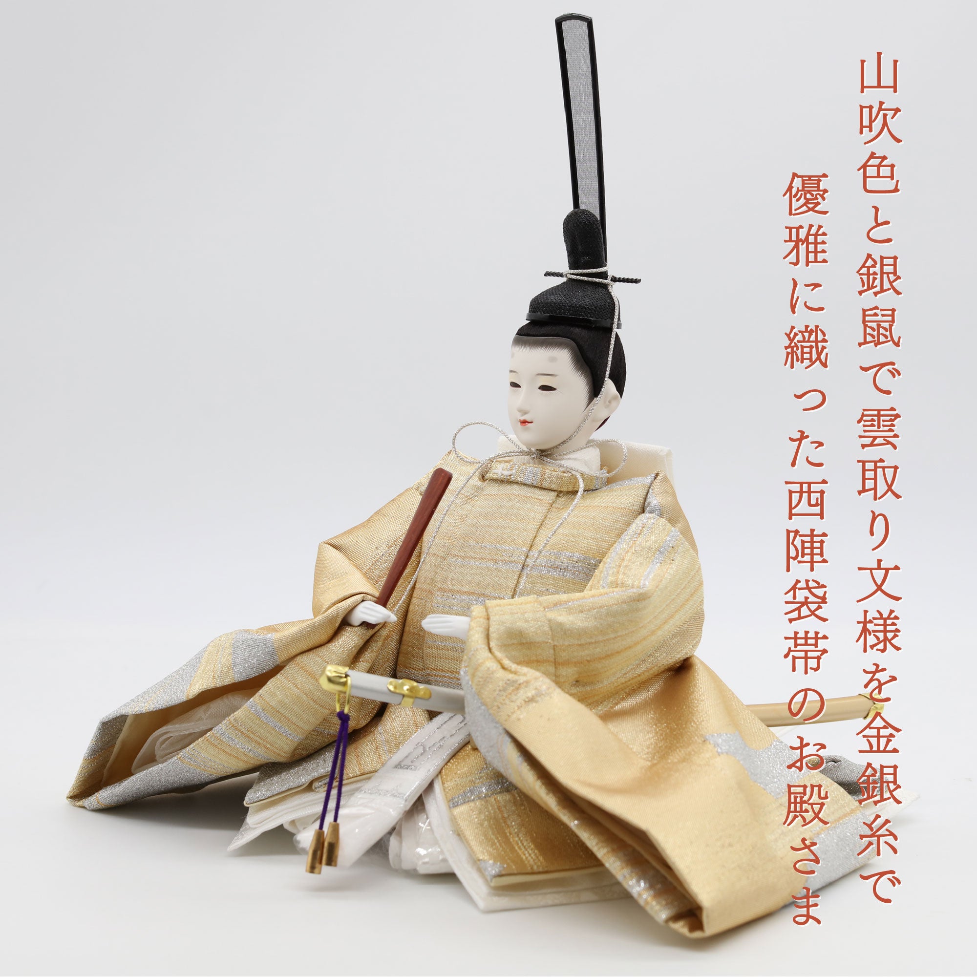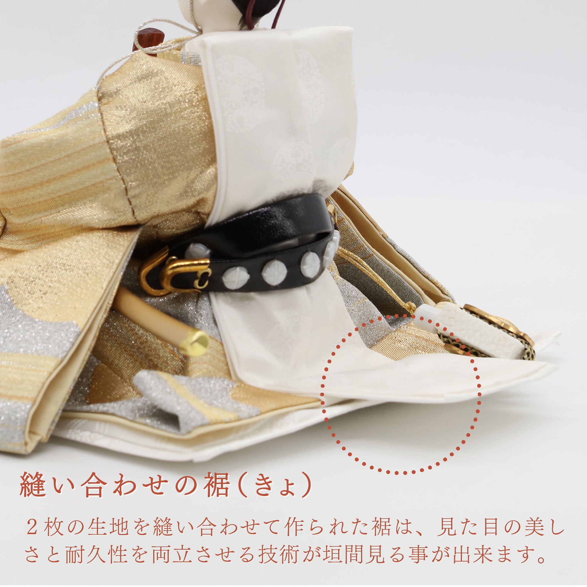 国産の分(せん)は、美しい木目と温もりある質感が魅力の天然木です。耐久性に優れ、経年とともに味わいを醸し出します。台座や屏風などに使用することで、自然素材ならではの落ち着いた風合いと上質感を演出し、雛人形全体をより品格ある印象に仕上げます。