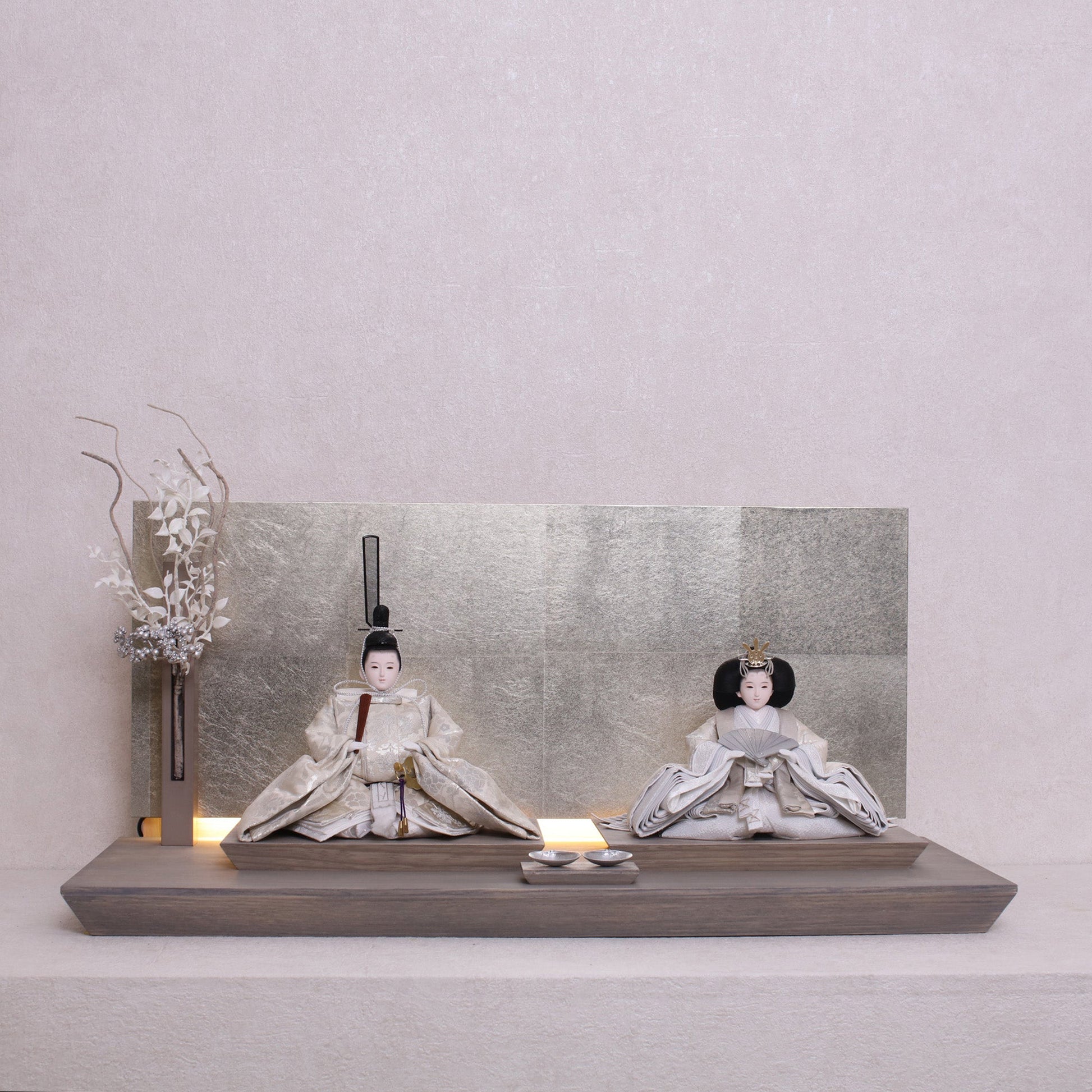 お屏風の下からは柔らかなライトがともり、実物と映る姿が重なって飾り全体がいっそう華やかで、美しい世界が生まれます。