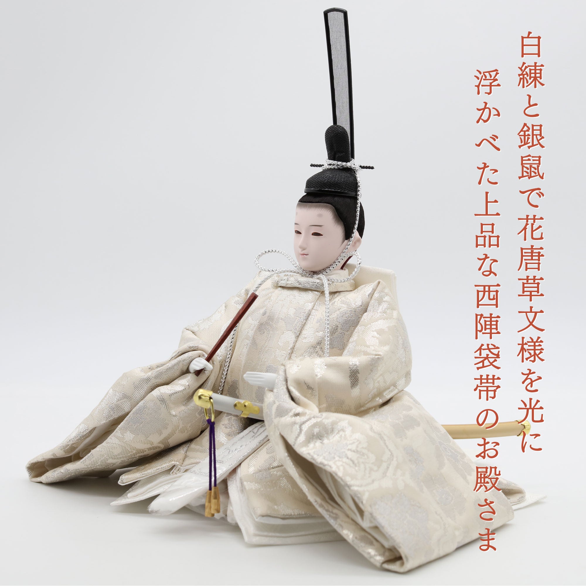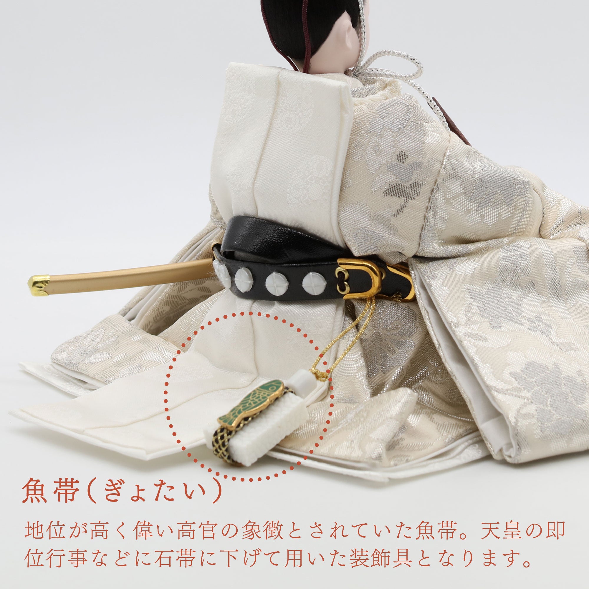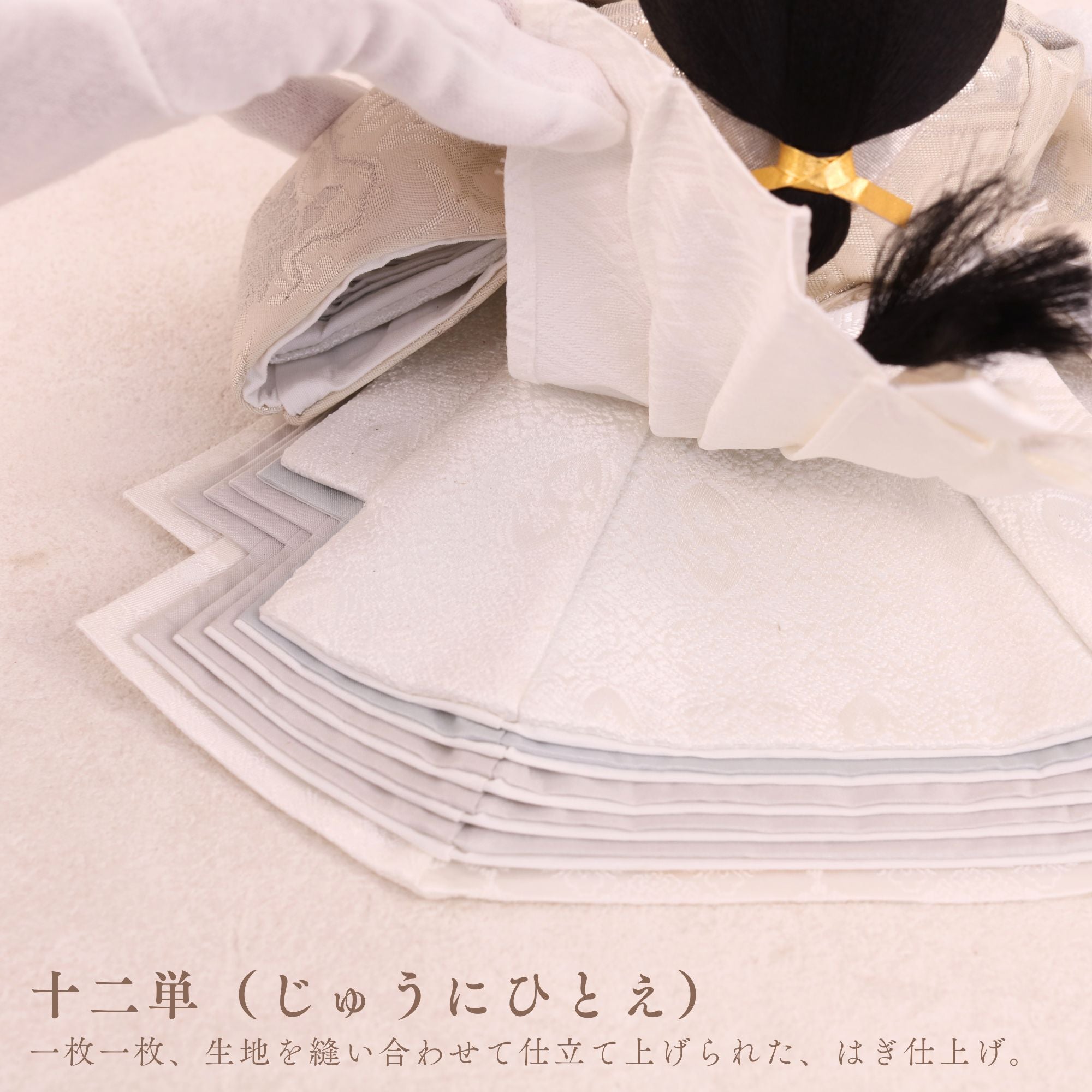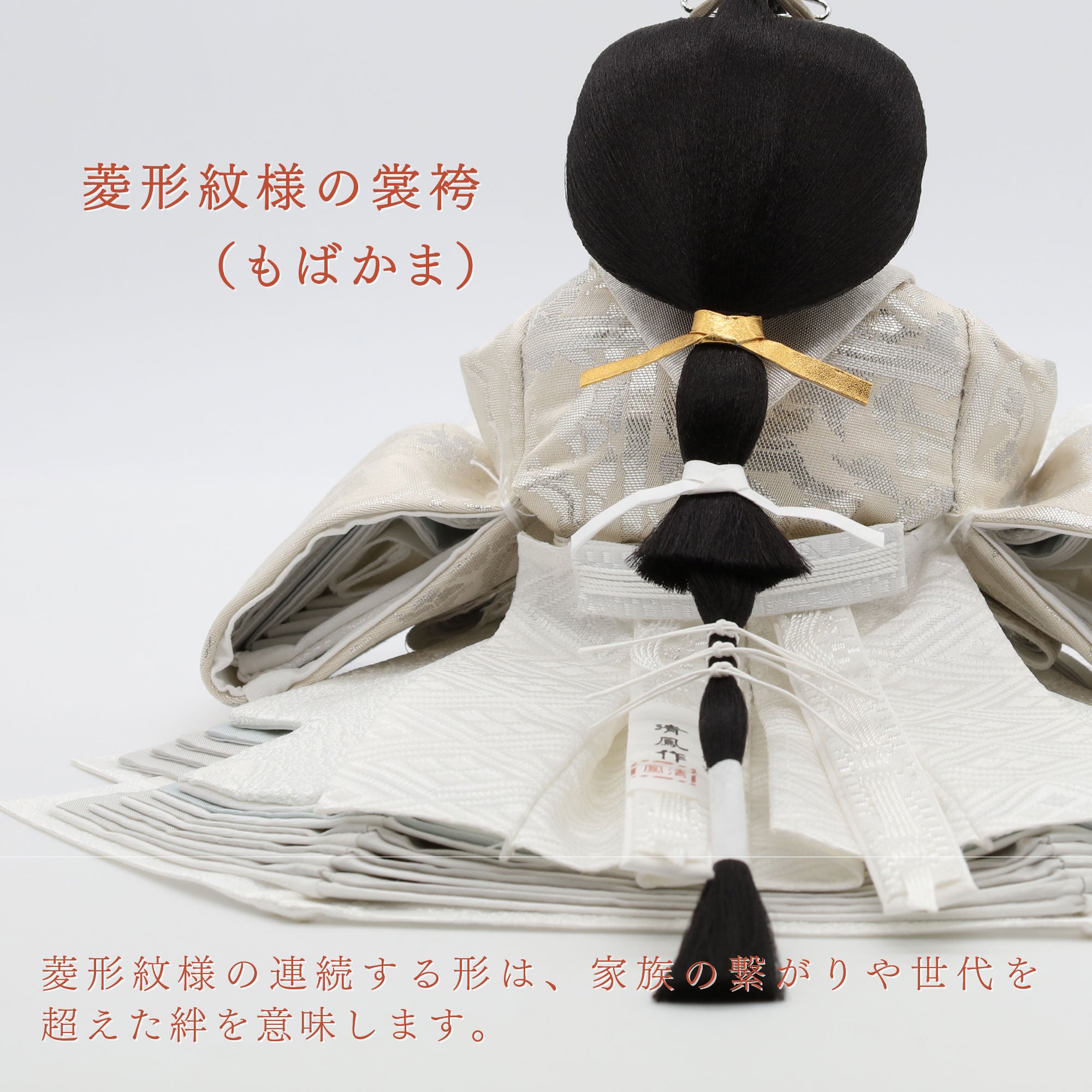 国産の分(せん)は、美しい木目と温もりある質感が魅力の天然木です。耐久性に優れ、経年とともに味わいを醸し出します。台座や屏風などに使用することで、自然素材ならではの落ち着いた風合いと上質感を演出し、雛人形全体をより品格ある印象に仕上げます。
