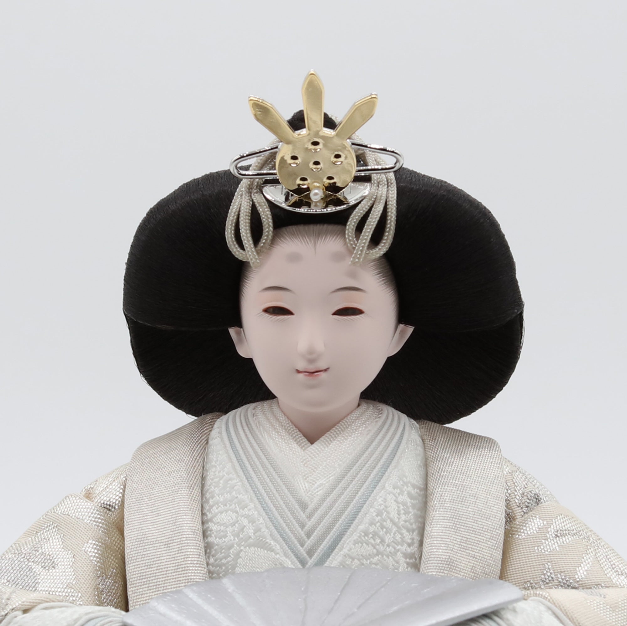 熊倉基安の作品「sumire」は、パールのような上品な輝きと、優雅さを演出しています。洗練された表情と品格ある佇まいが、空間全体を格調高く彩ります。「お人形は顔がいのち」と言われるように、熊倉基安の技術と感性が一体となった逸品で、伝統を大切にしながらも新しい美しさを追求するその姿勢が、ひときわの魅力を放っています。