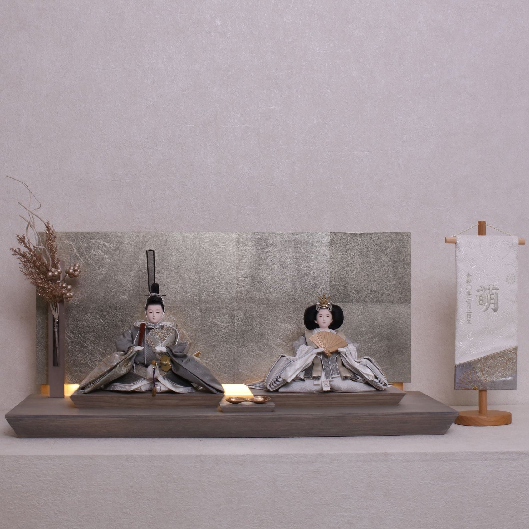 お屏風の下からは柔らかなライトがともり、実物と映る姿が重なって飾り全体がいっそう華やかで、美しい世界が生まれます。
