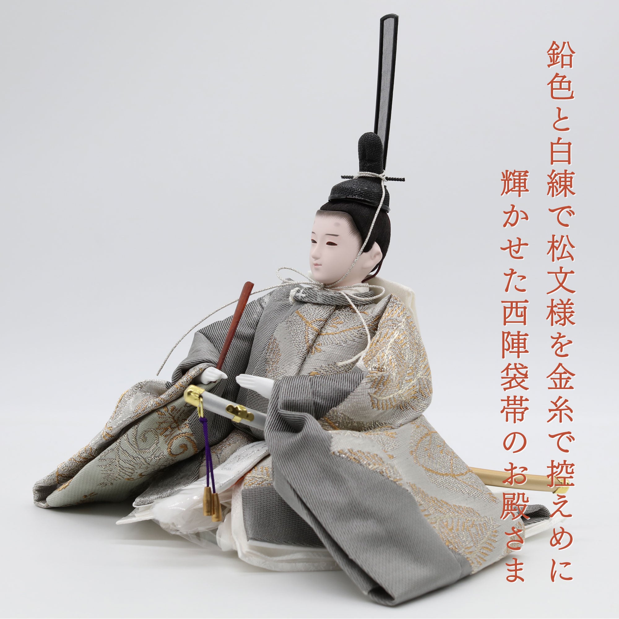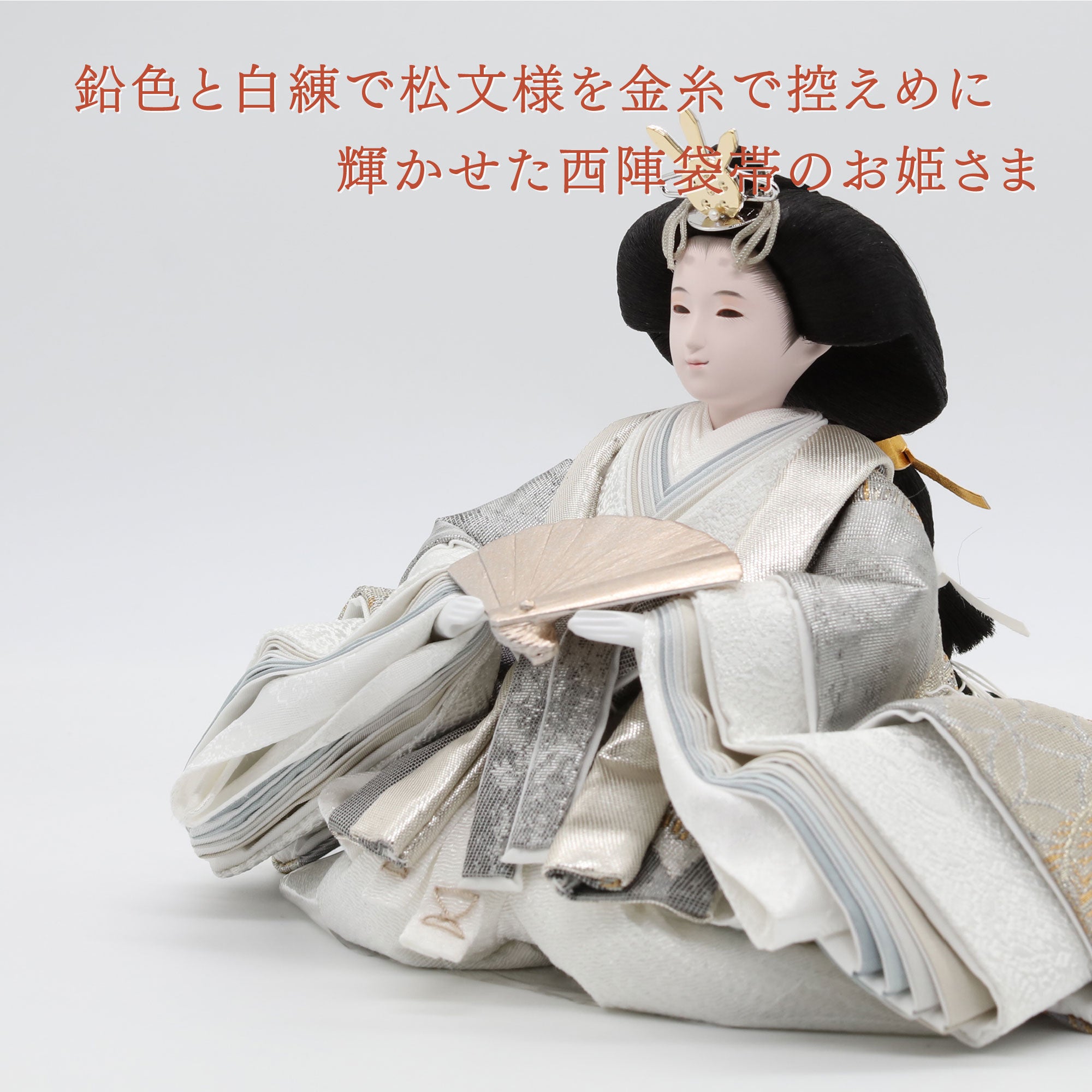 鉛色と白練で松文様を金糸で控えめに輝かせた西陣袋帯のお姫さま