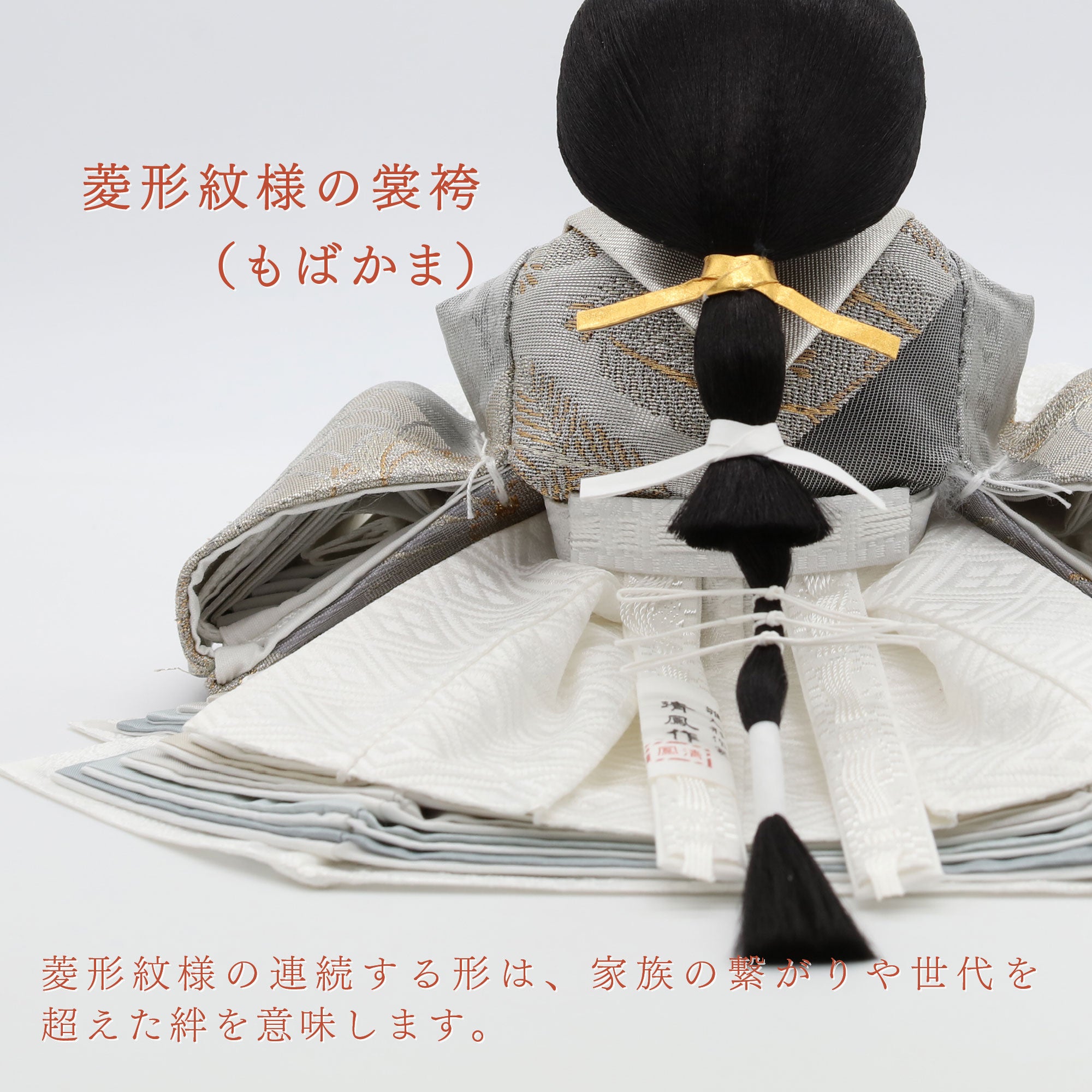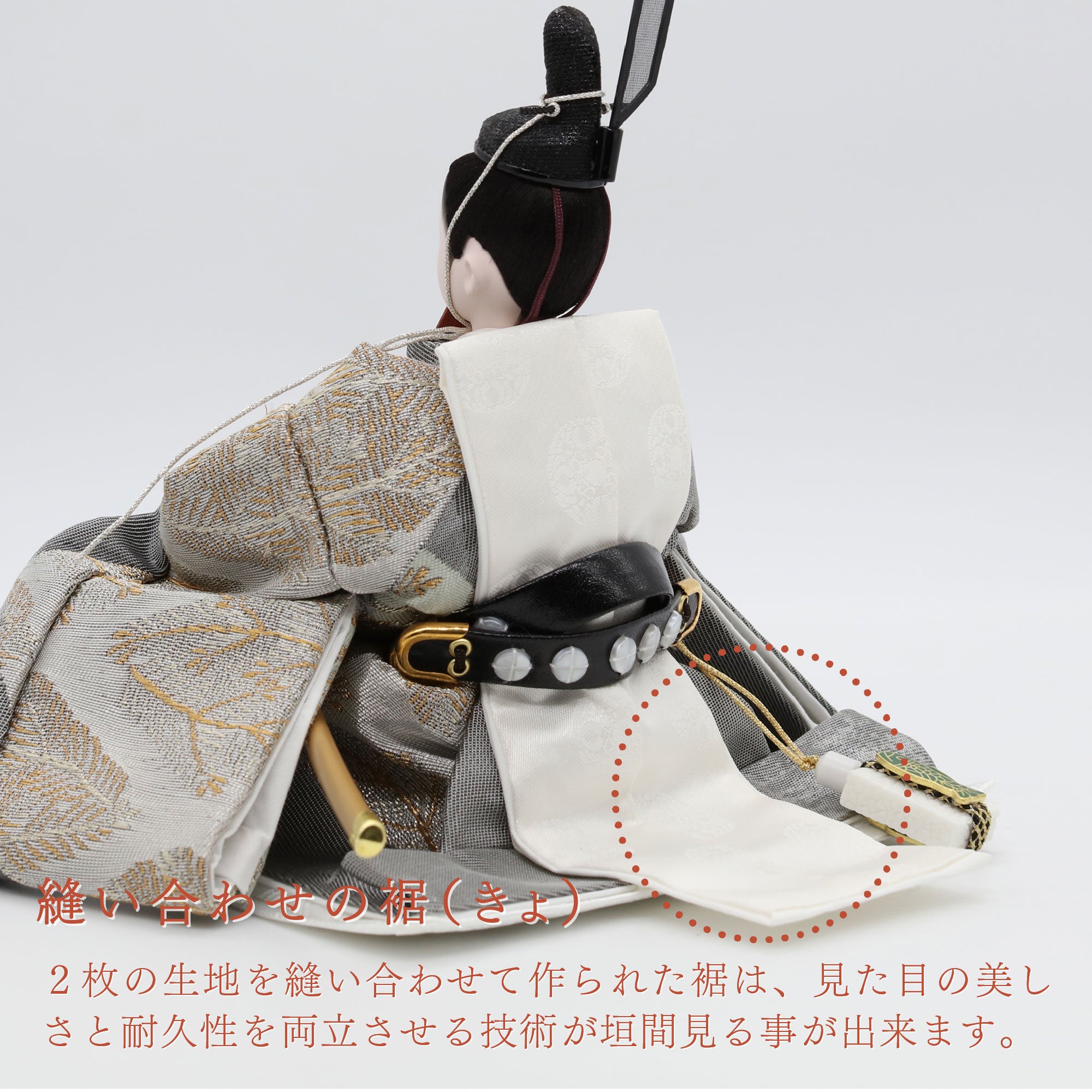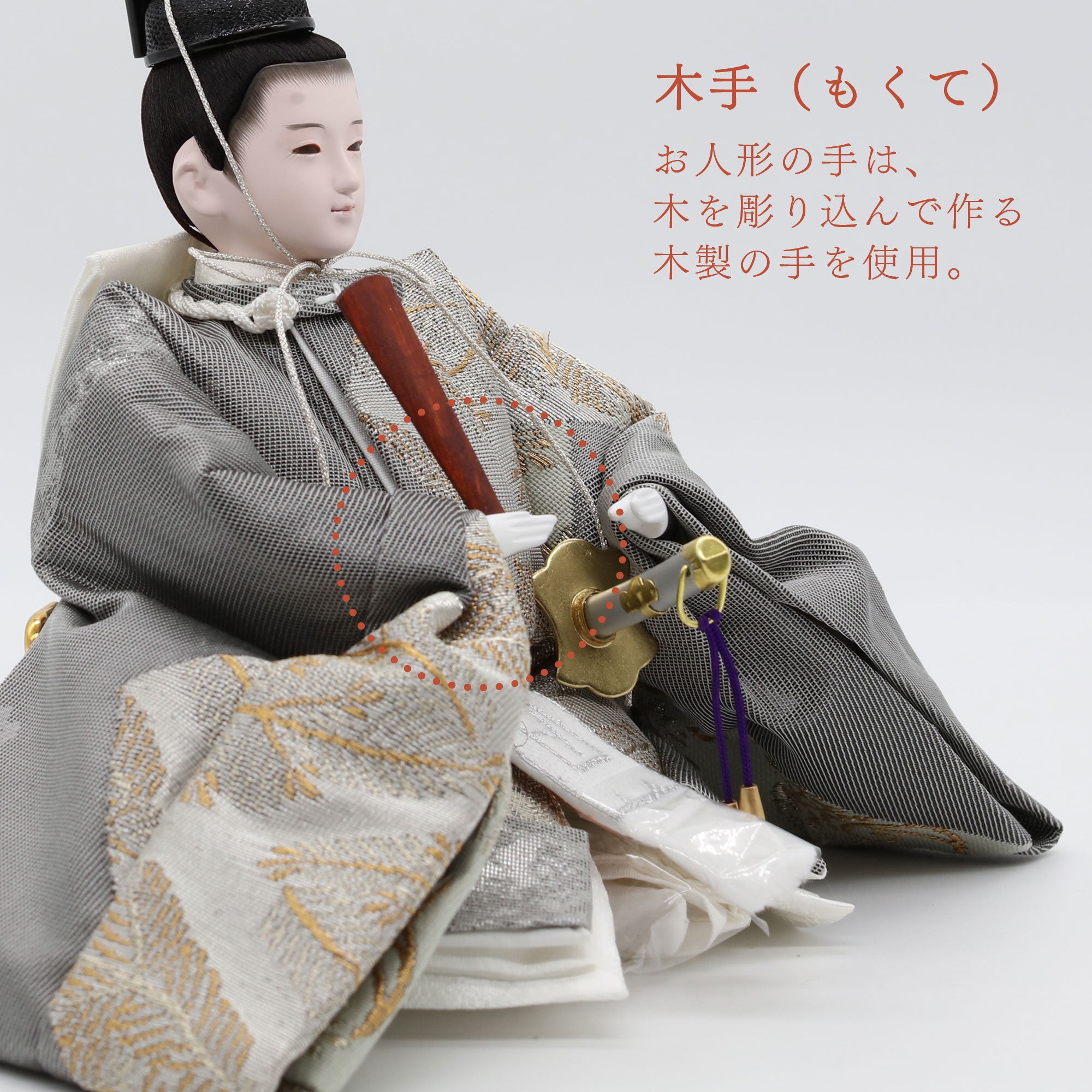 国産の分(せん)は、美しい木目と温もりある質感が魅力の天然木です。耐久性に優れ、経年とともに味わいを醸し出します。台座や屏風などに使用することで、自然素材ならではの落ち着いた風合いと上質感を演出し、雛人形全体をより品格ある印象に仕上げます。