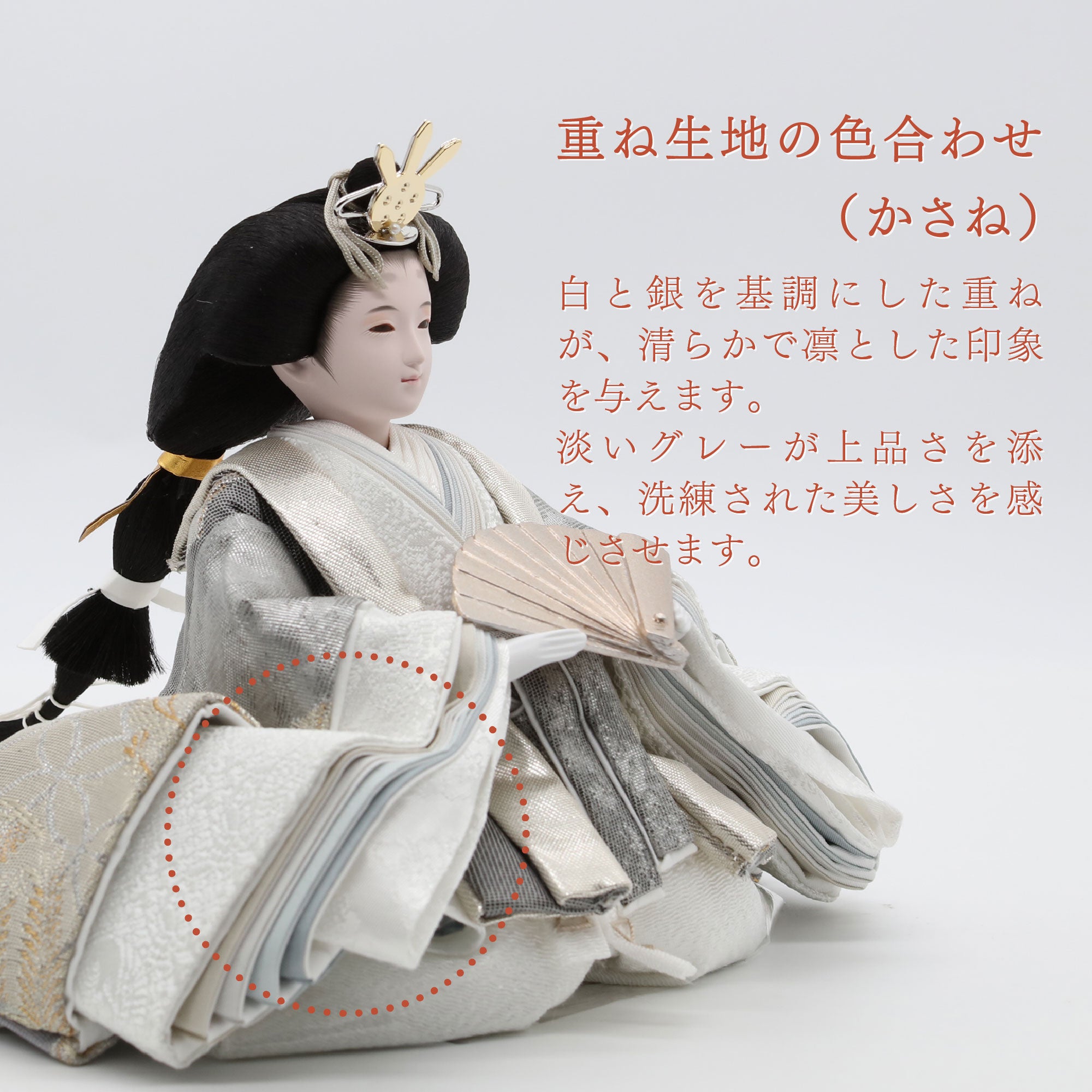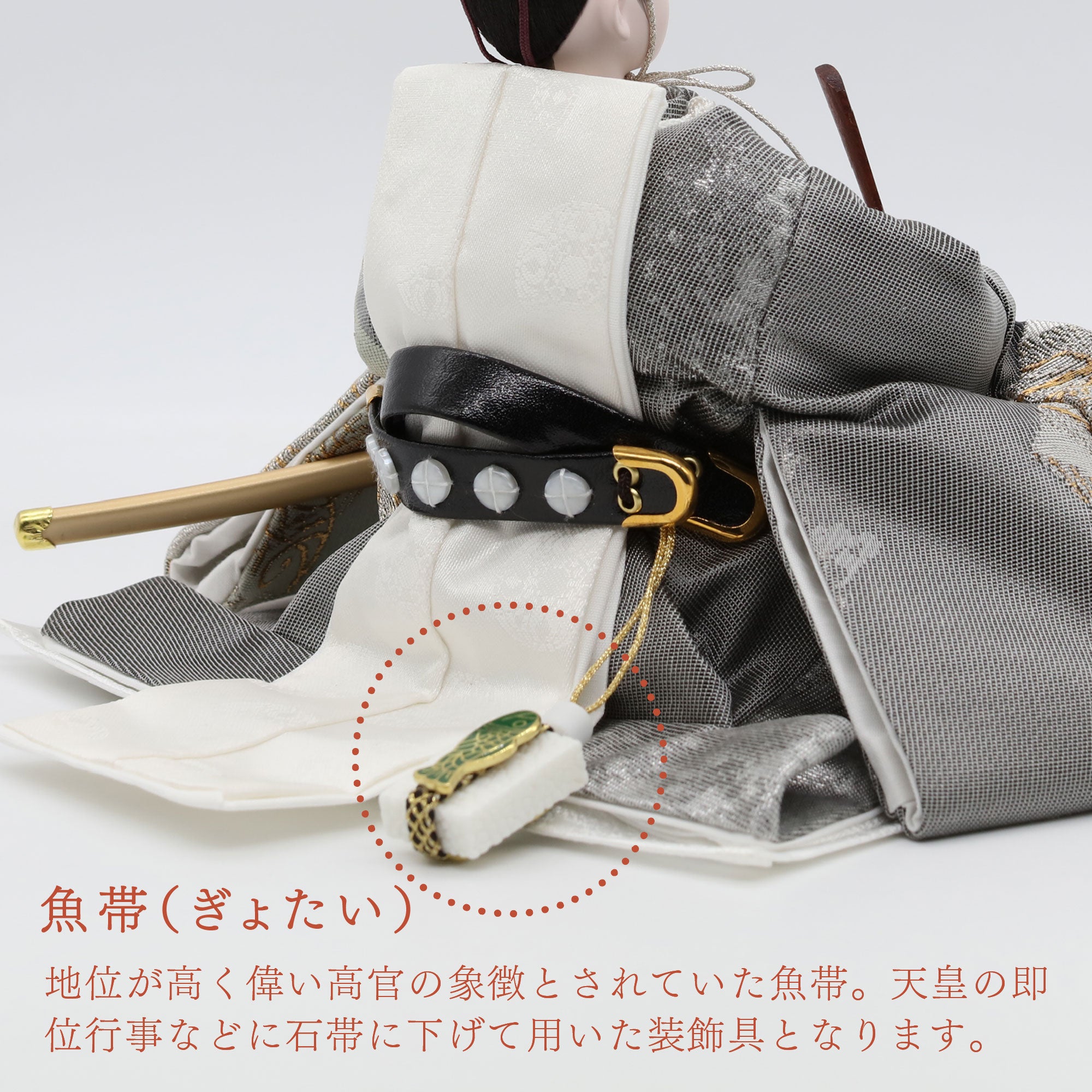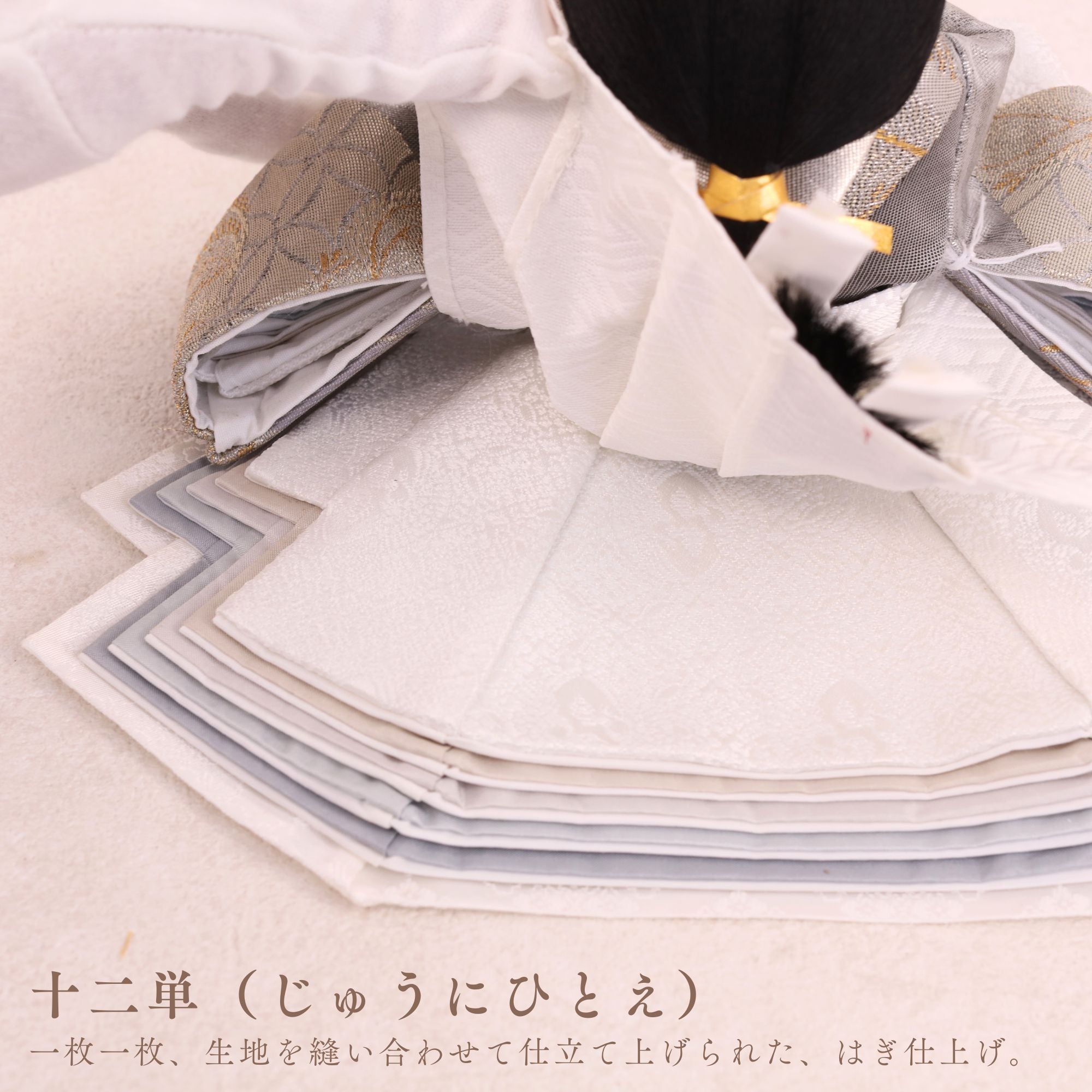 国産の分(せん)は、美しい木目と温もりある質感が魅力の天然木です。耐久性に優れ、経年とともに味わいを醸し出します。台座や屏風などに使用することで、自然素材ならではの落ち着いた風合いと上質感を演出し、雛人形全体をより品格ある印象に仕上げます。