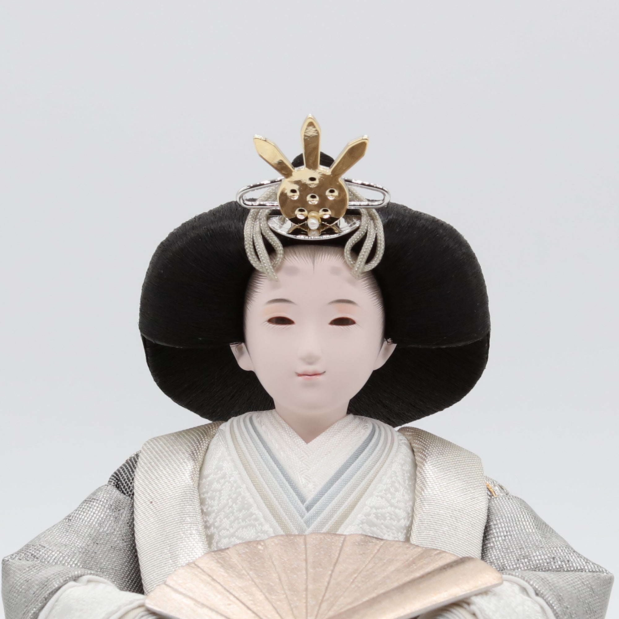 熊倉基安の作品「sumire」は、パールのような上品な輝きと、優雅さを演出しています。洗練された表情と品格ある佇まいが、空間全体を格調高く彩ります。「お人形は顔がいのち」と言われるように、熊倉基安の技術と感性が一体となった逸品で、伝統を大切にしながらも新しい美しさを追求するその姿勢が、ひときわの魅力を放っています。
