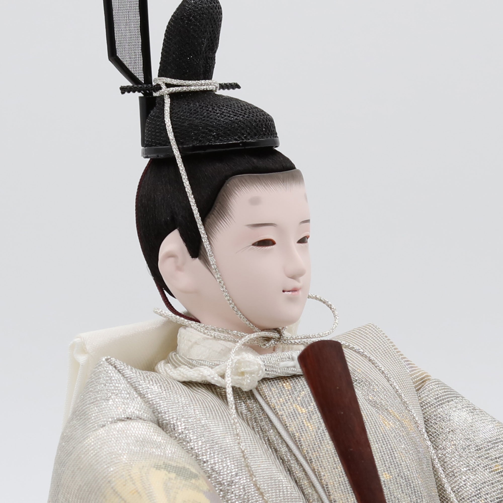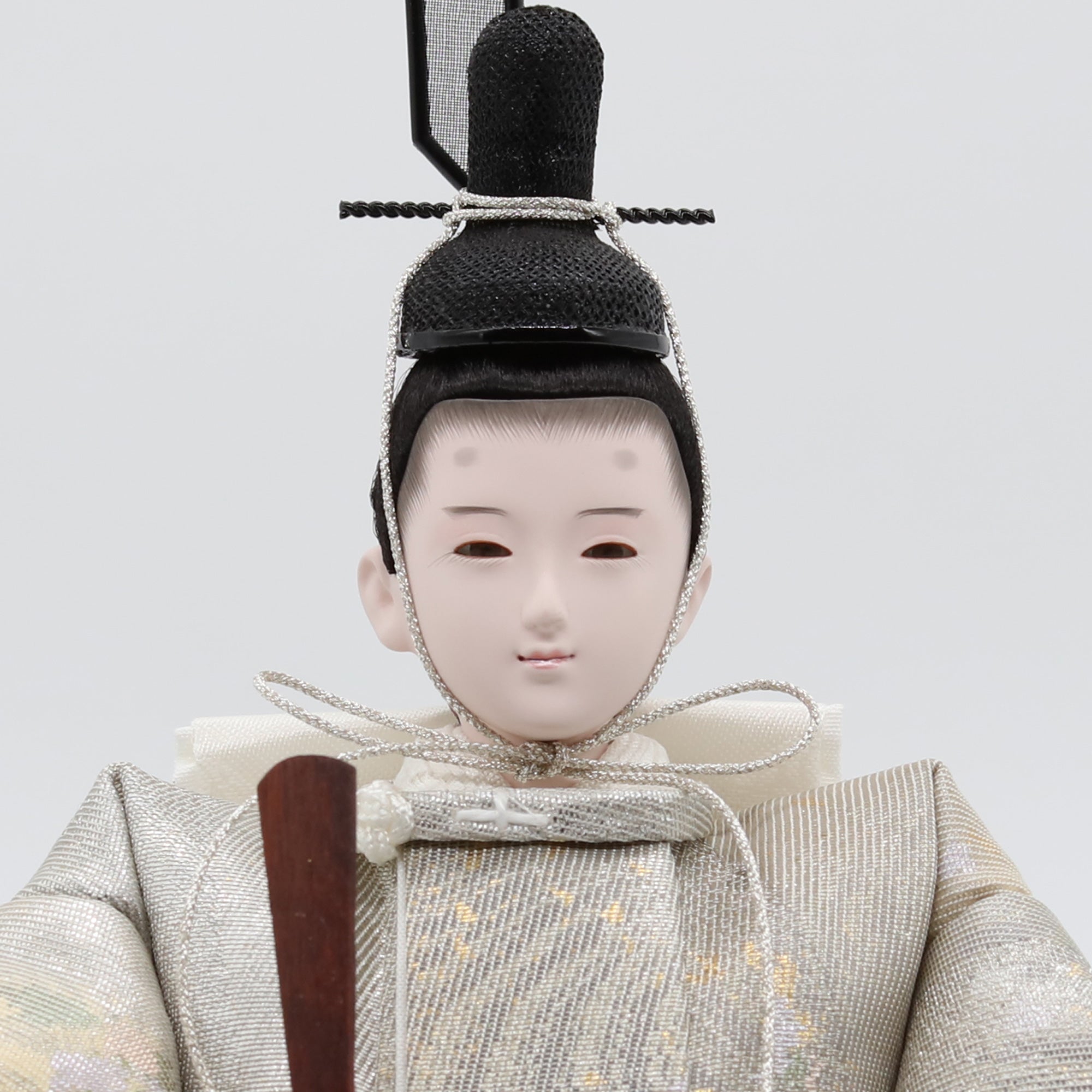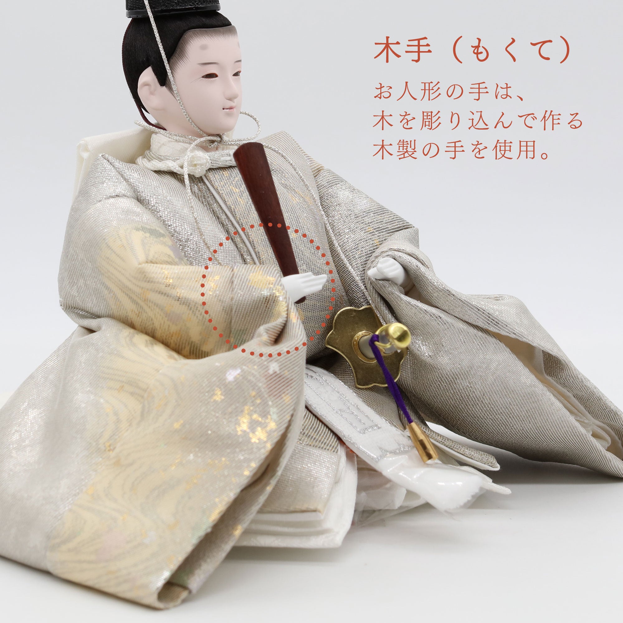 国産の分(せん)は、美しい木目と温もりある質感が魅力の天然木です。耐久性に優れ、経年とともに味わいを醸し出します。台座や屏風などに使用することで、自然素材ならではの落ち着いた風合いと上質感を演出し、雛人形全体をより品格ある印象に仕上げます。