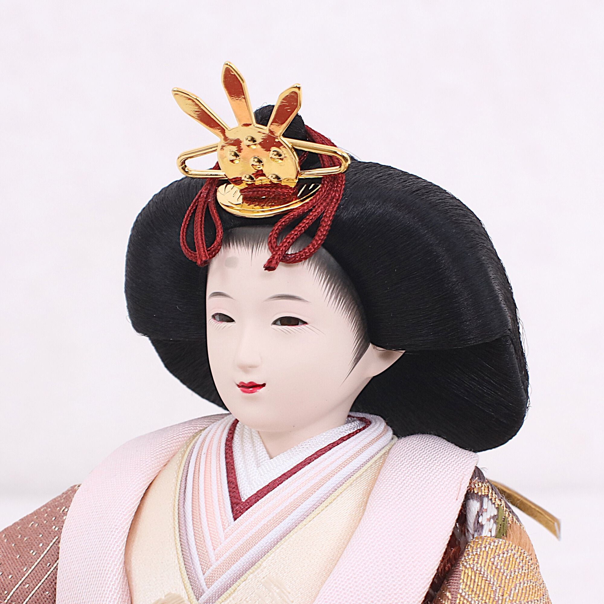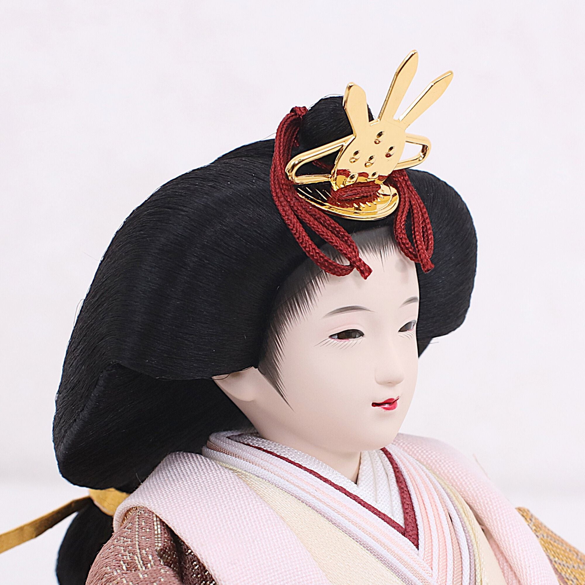 スッとした細身の輪郭に濃紅の化粧を施し、現代的な美しさと古典雅を融合。凛とした気品を感じさせるお顔です。