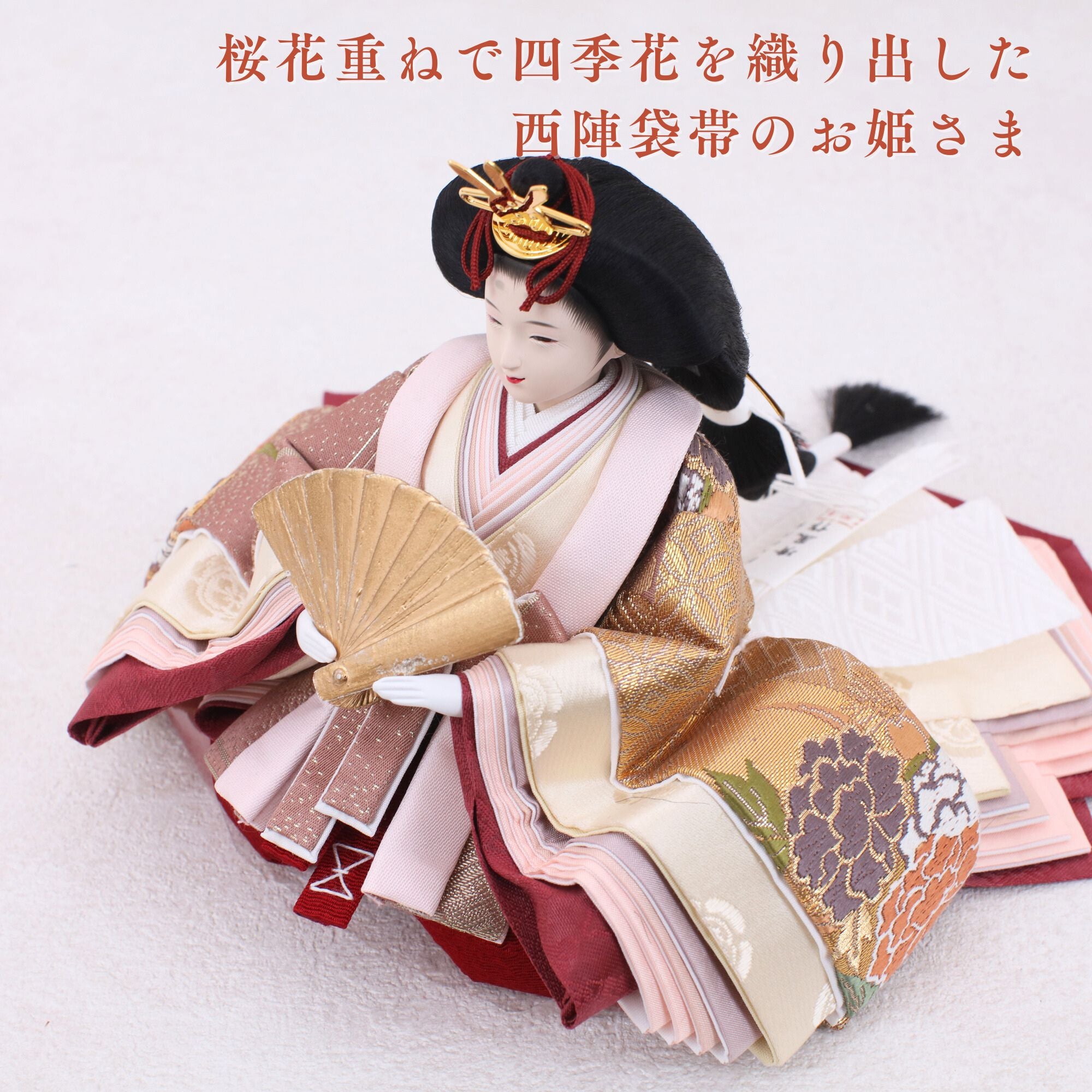 桜花重ねで四季花を織り出した西陣袋帯のお姫さま