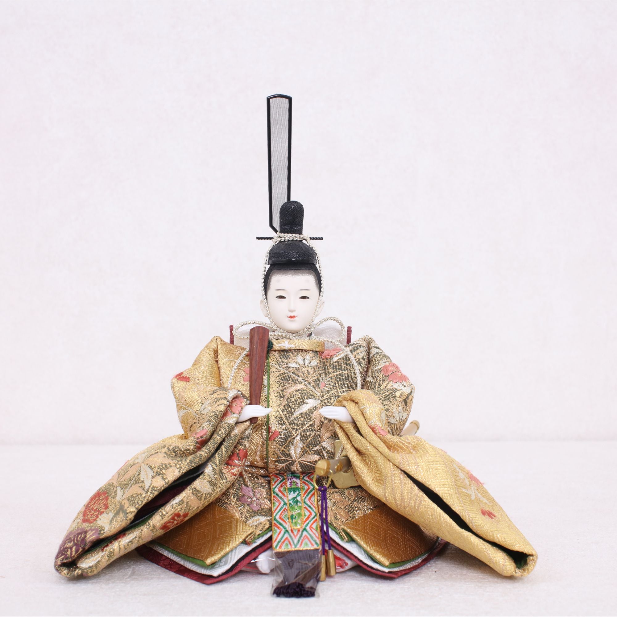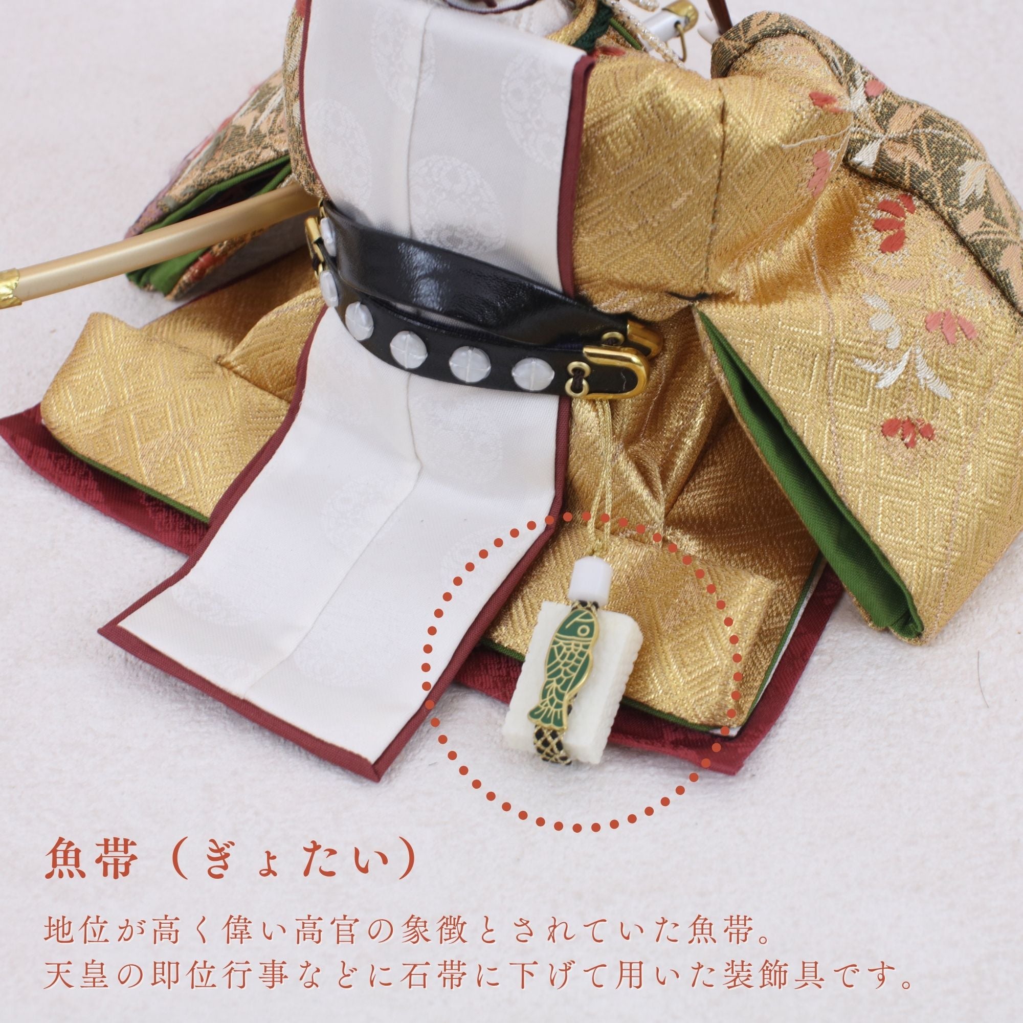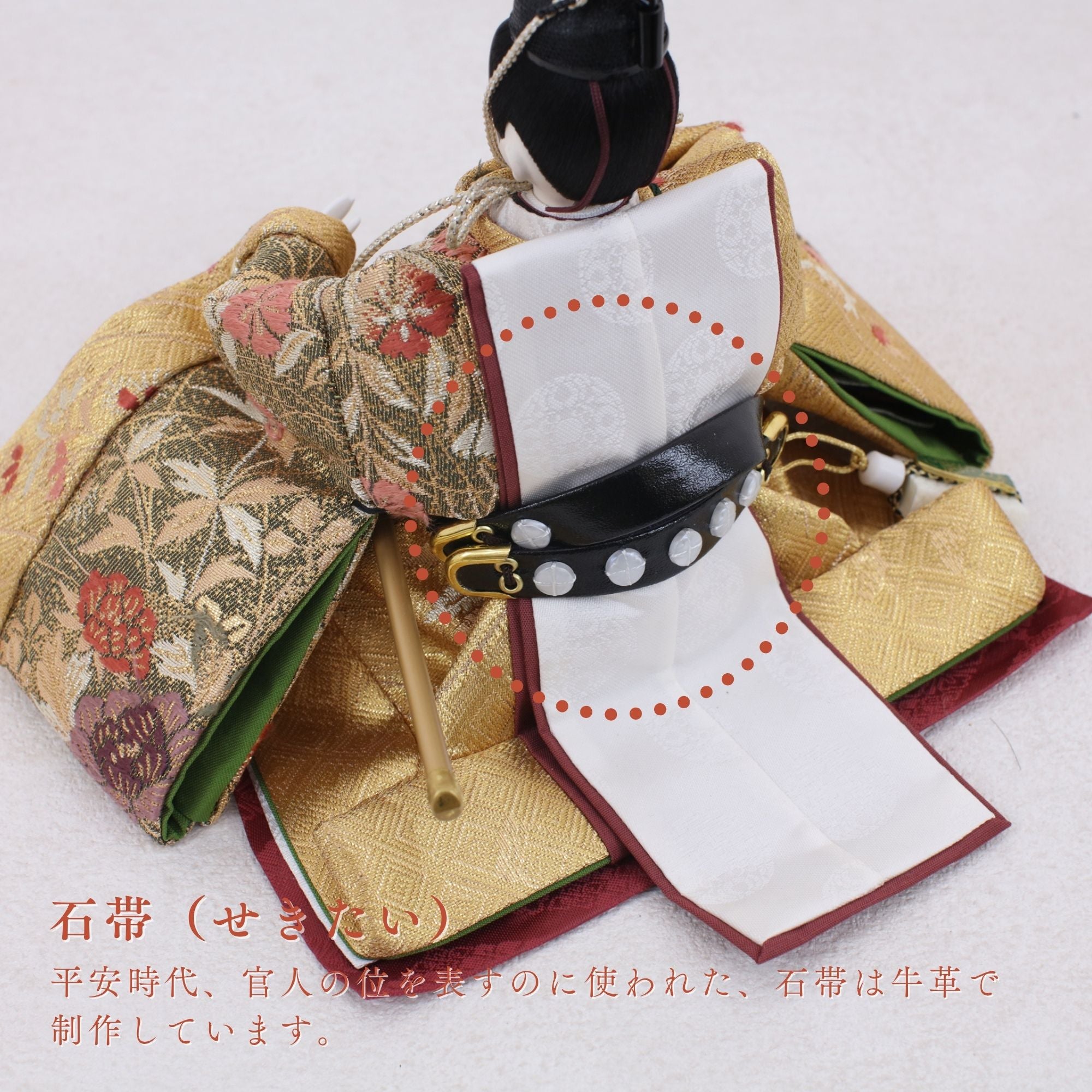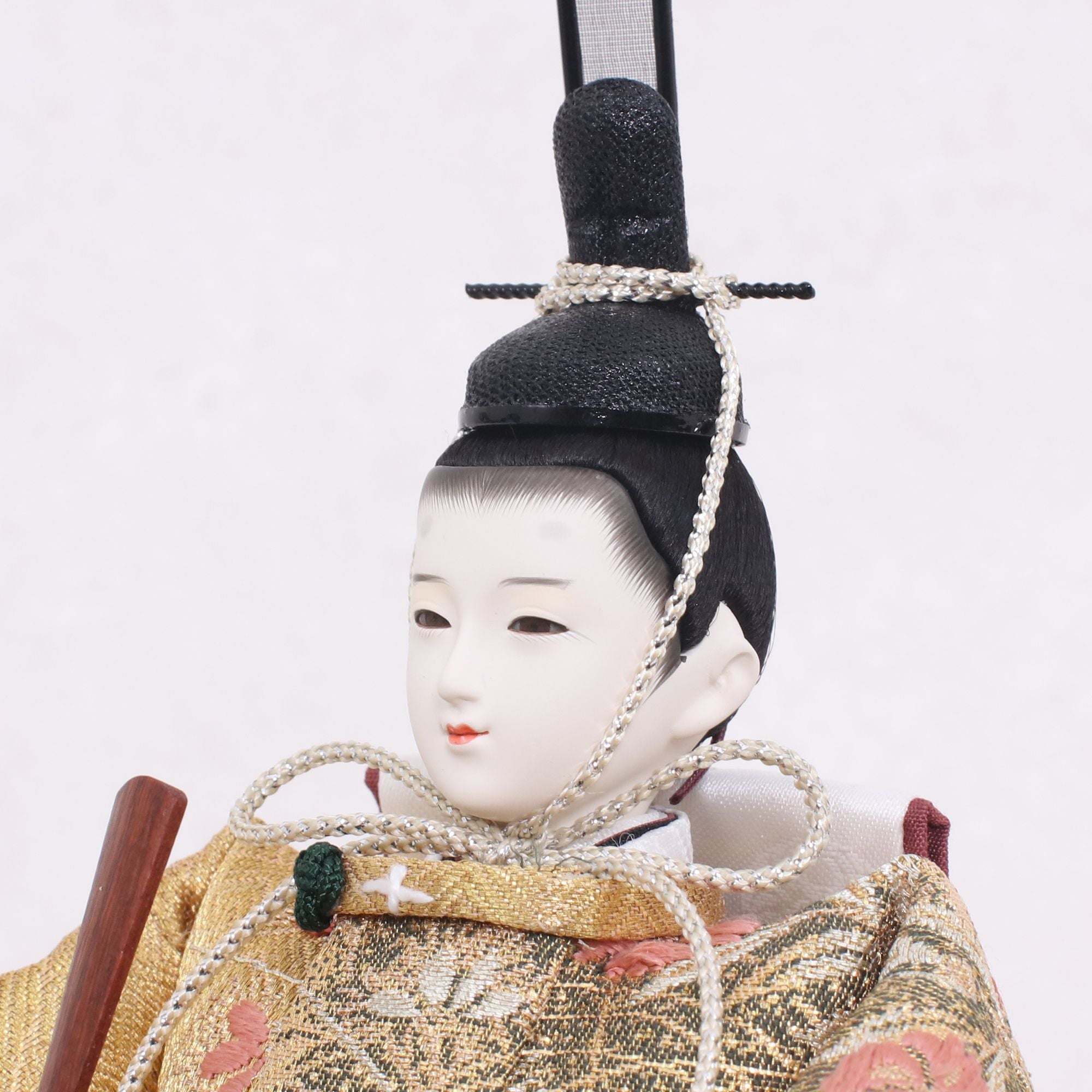 国産の分(せん)は、美しい木目と温もりある質感が魅力の天然木です。耐久性に優れ、経年とともに味わいを醸し出します。台座や屏風などに使用することで、自然素材ならではの落ち着いた風合いと上質感を演出し、雛人形全体をより品格ある印象に仕上げます。